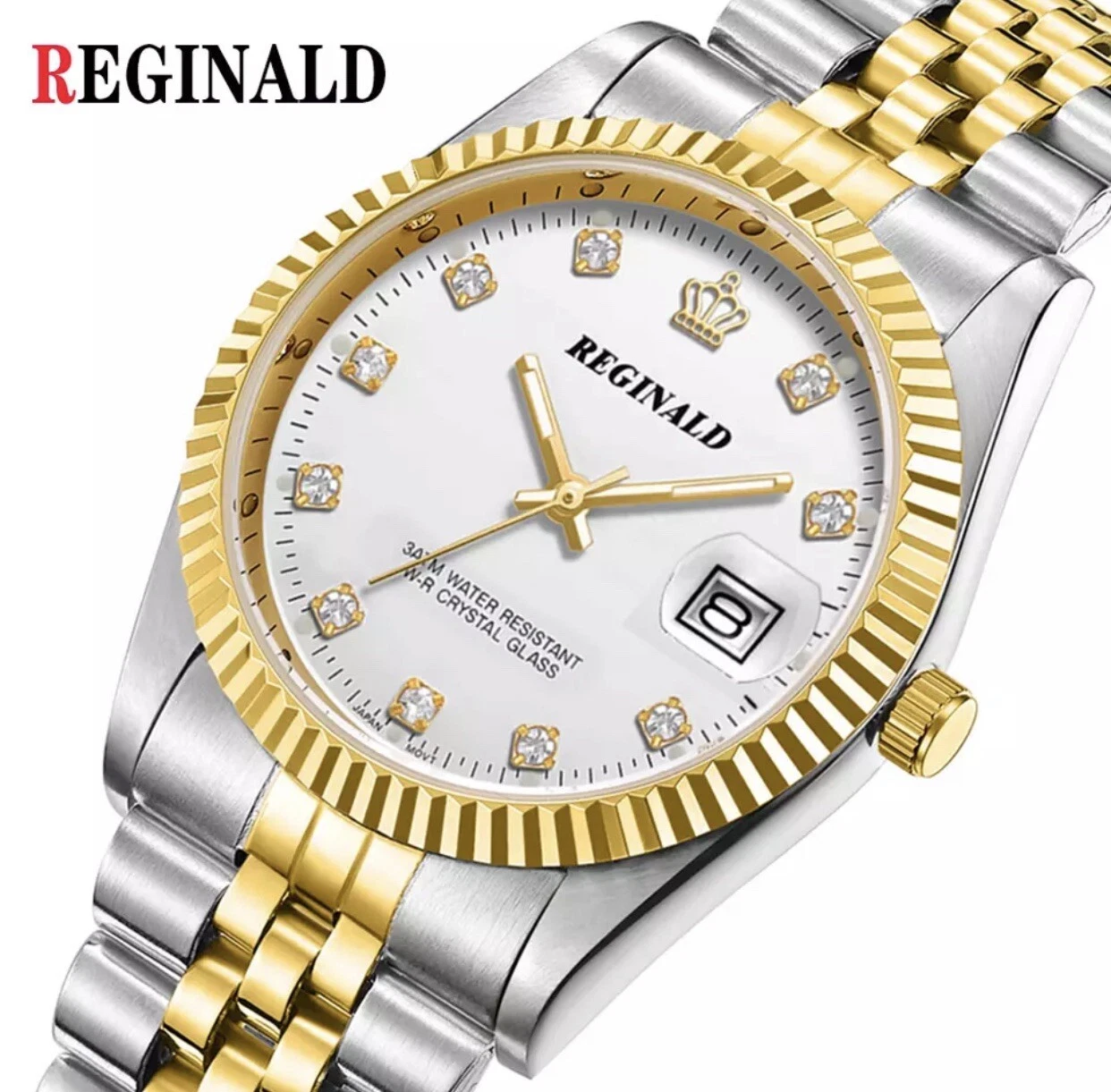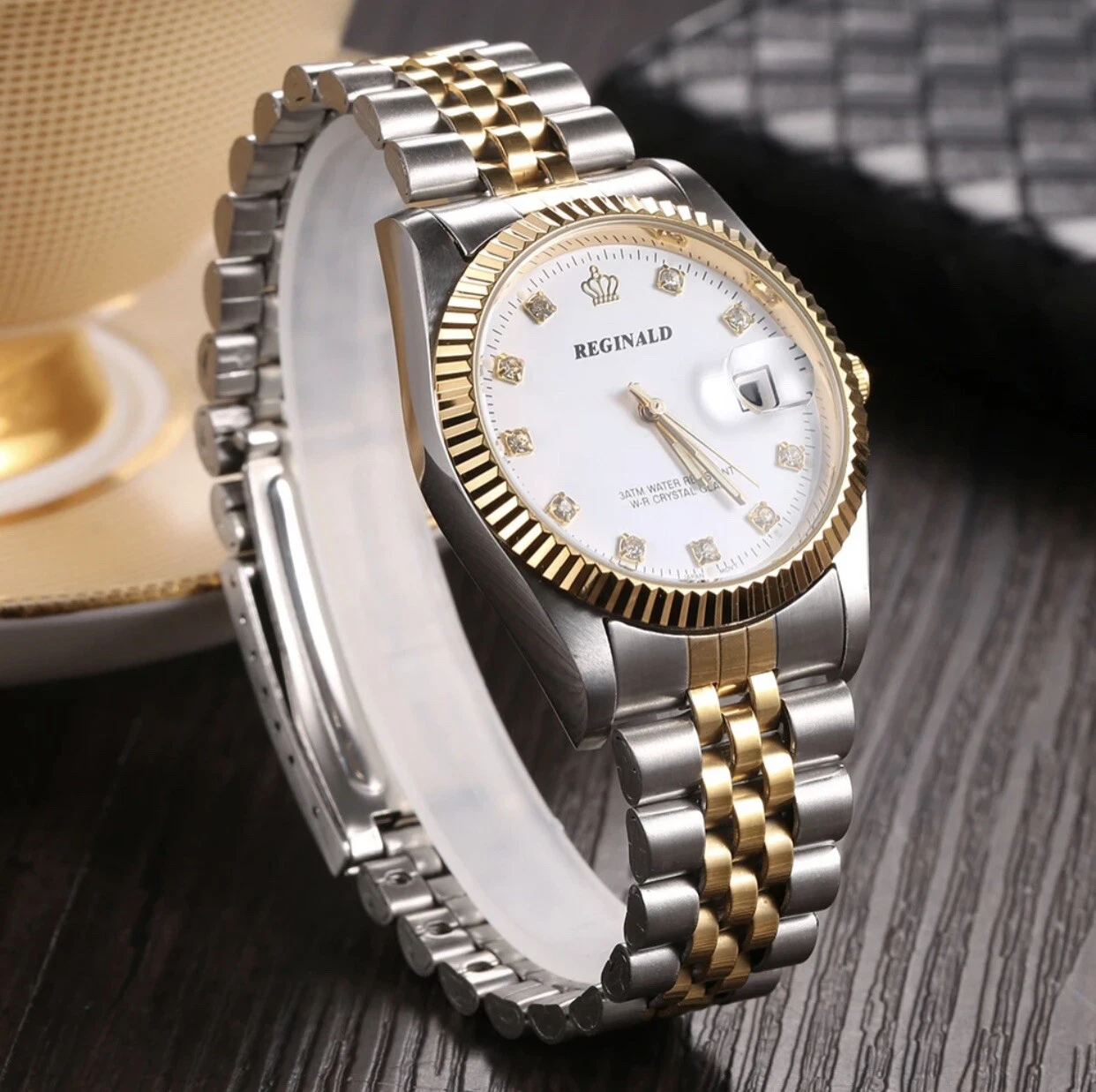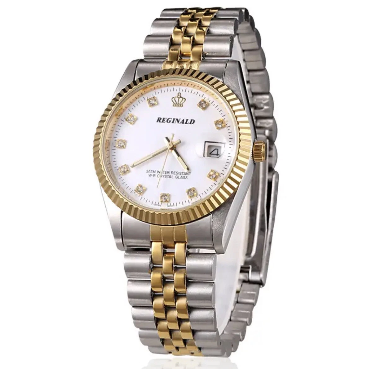 Reginald Mens Wrist Watch Silver Gold Pearl White Analog Quartz New Battery. New