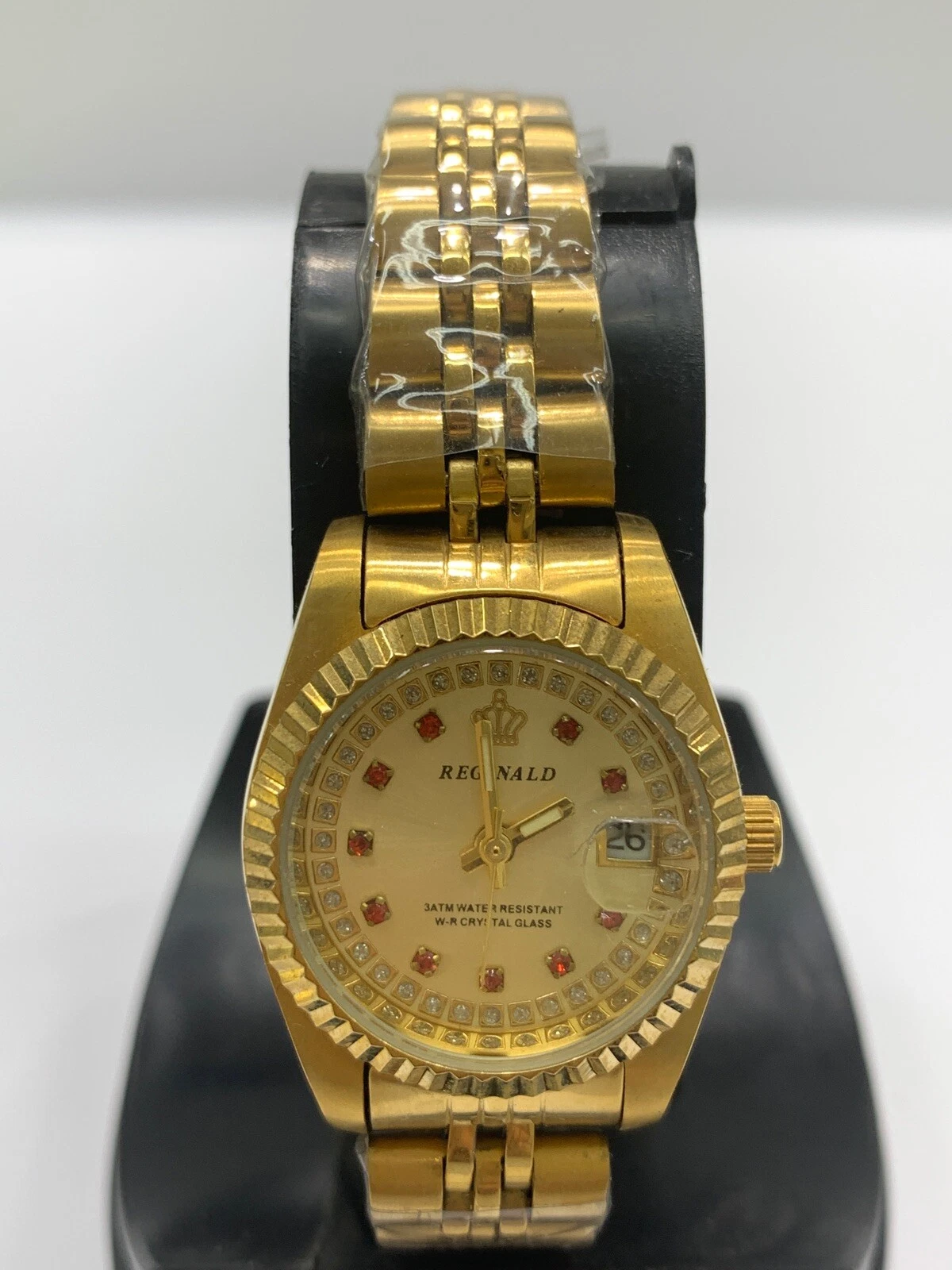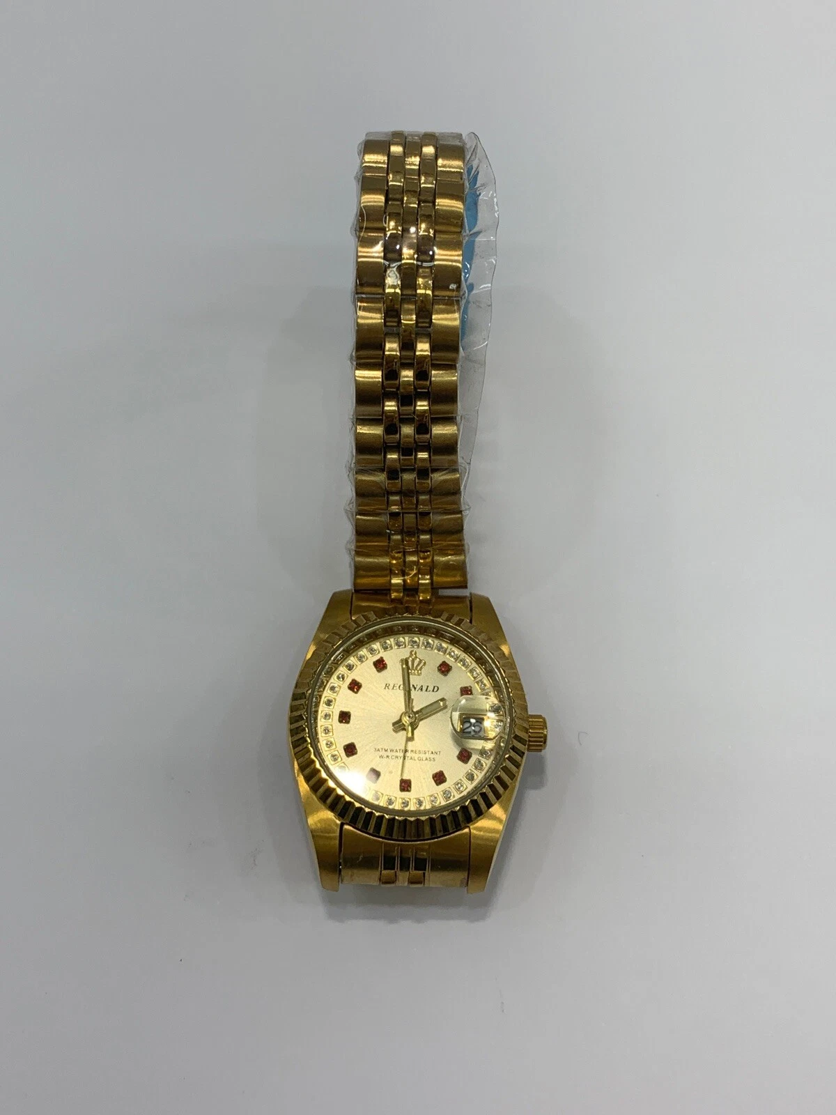 Reginald Ladies Wrist Watch Red And Gold Analog Date Quartz New Battery. New