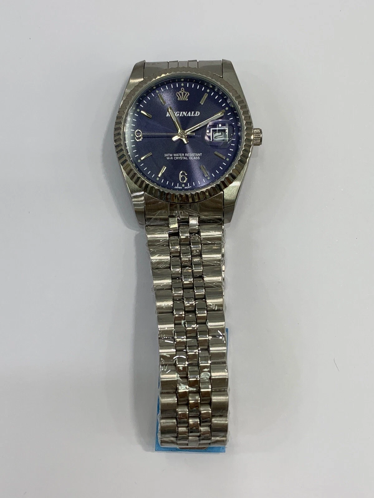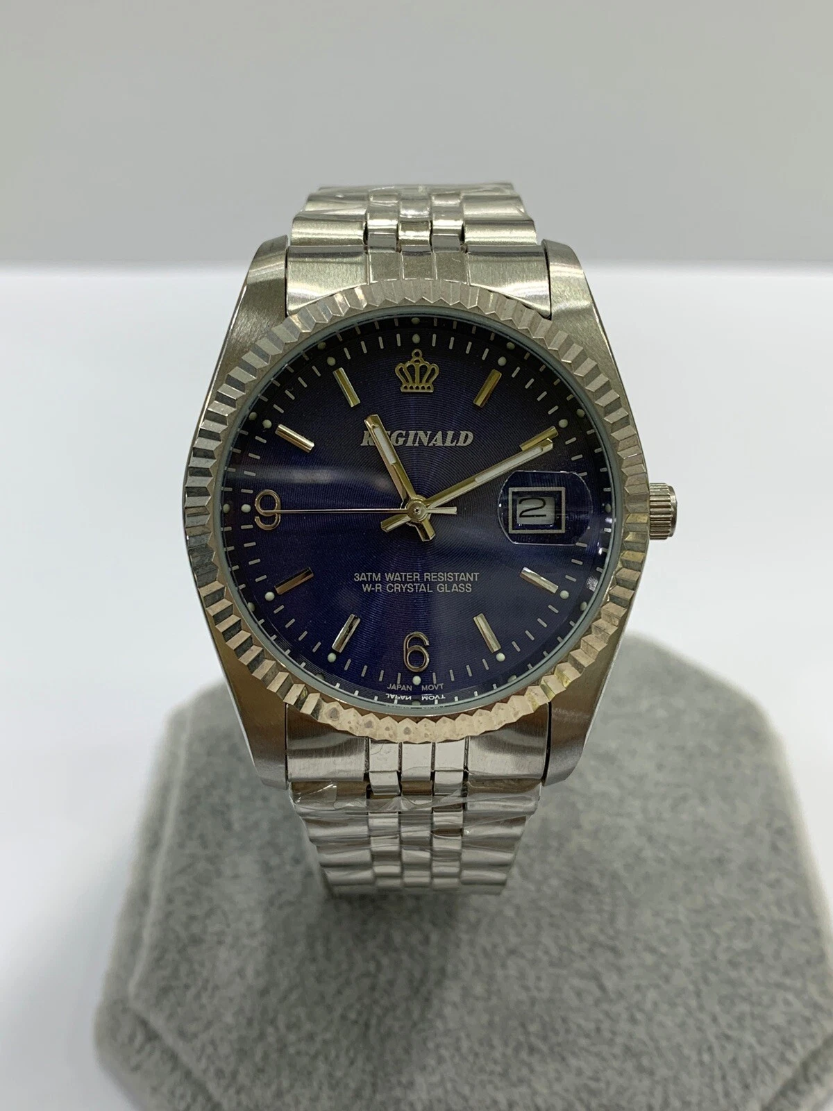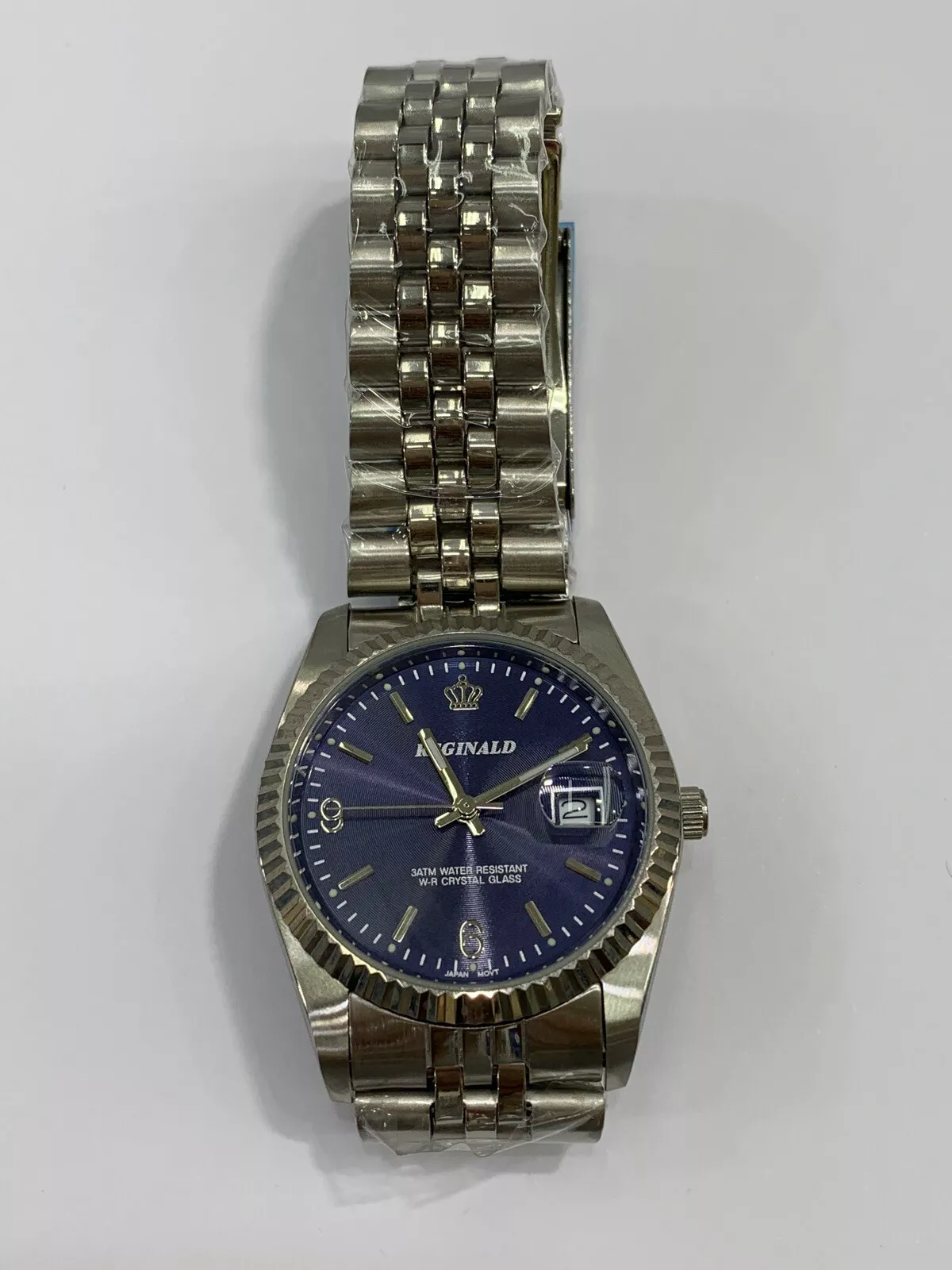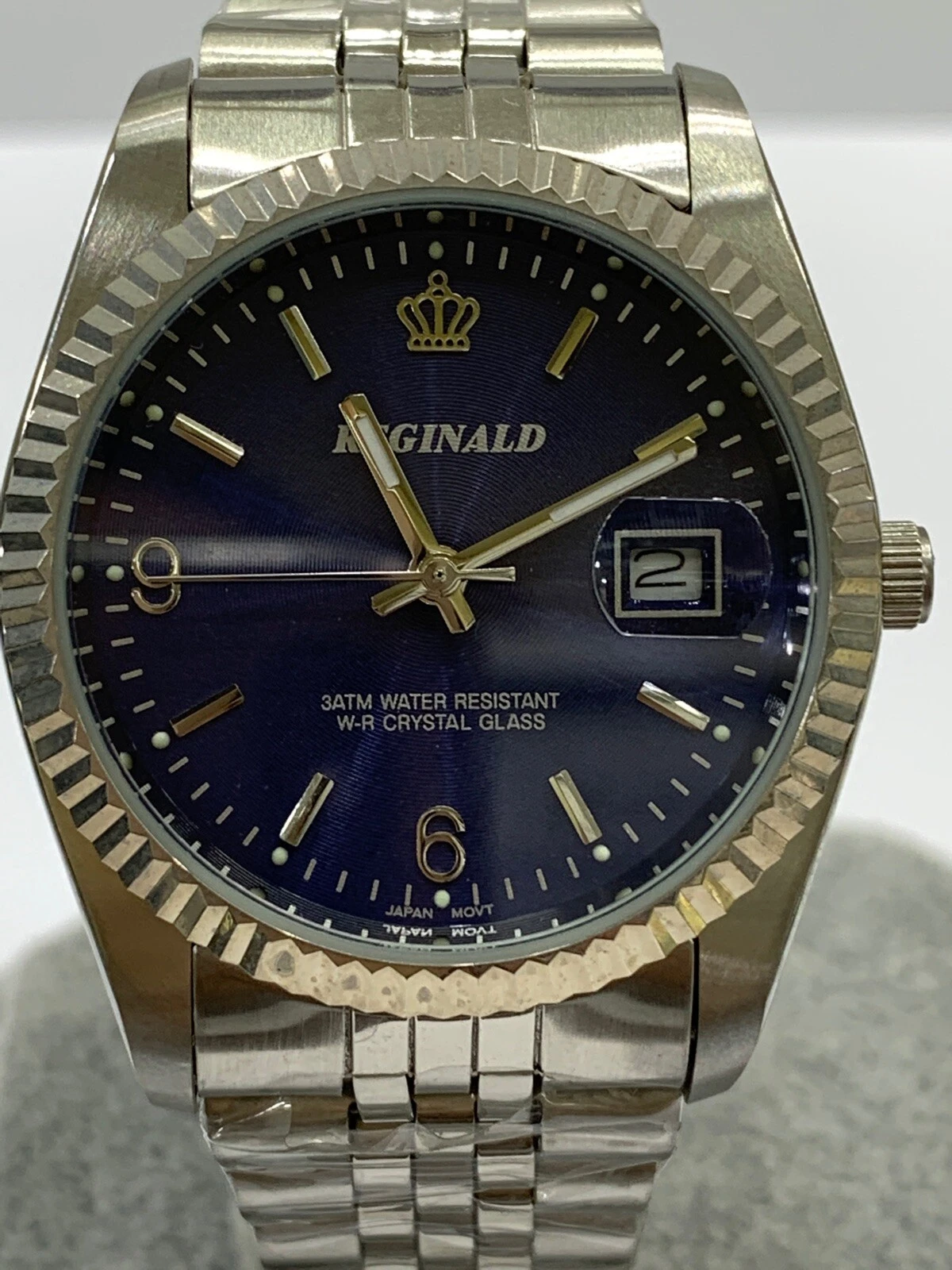 Reginald Mens Wrist Watch Silver Navy Blue Analog Date Quartz New Battery. New