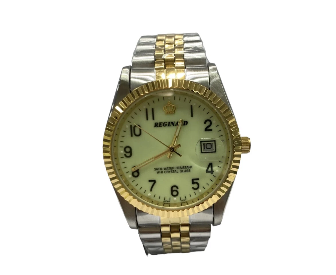 Reginald Mens Wrist Watch Silver Gold Black Glow Analog Quartz New Battery. New*