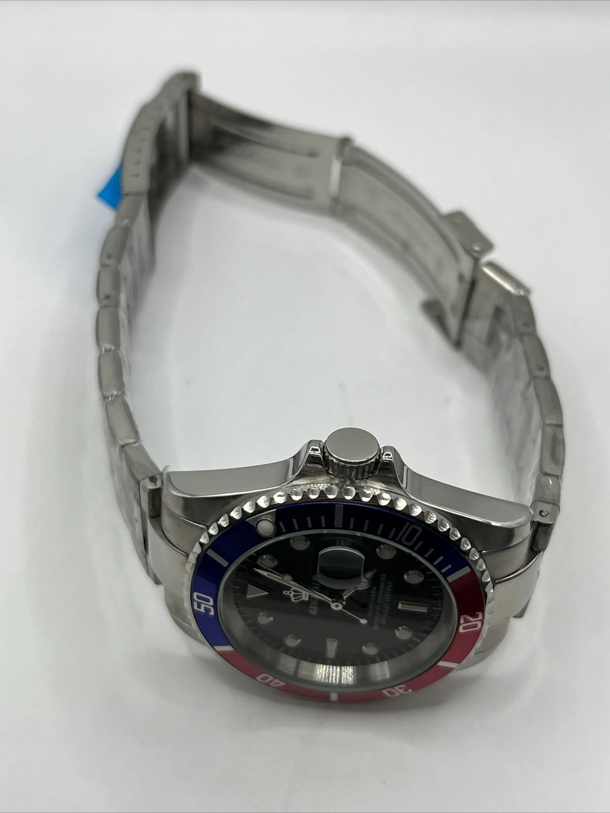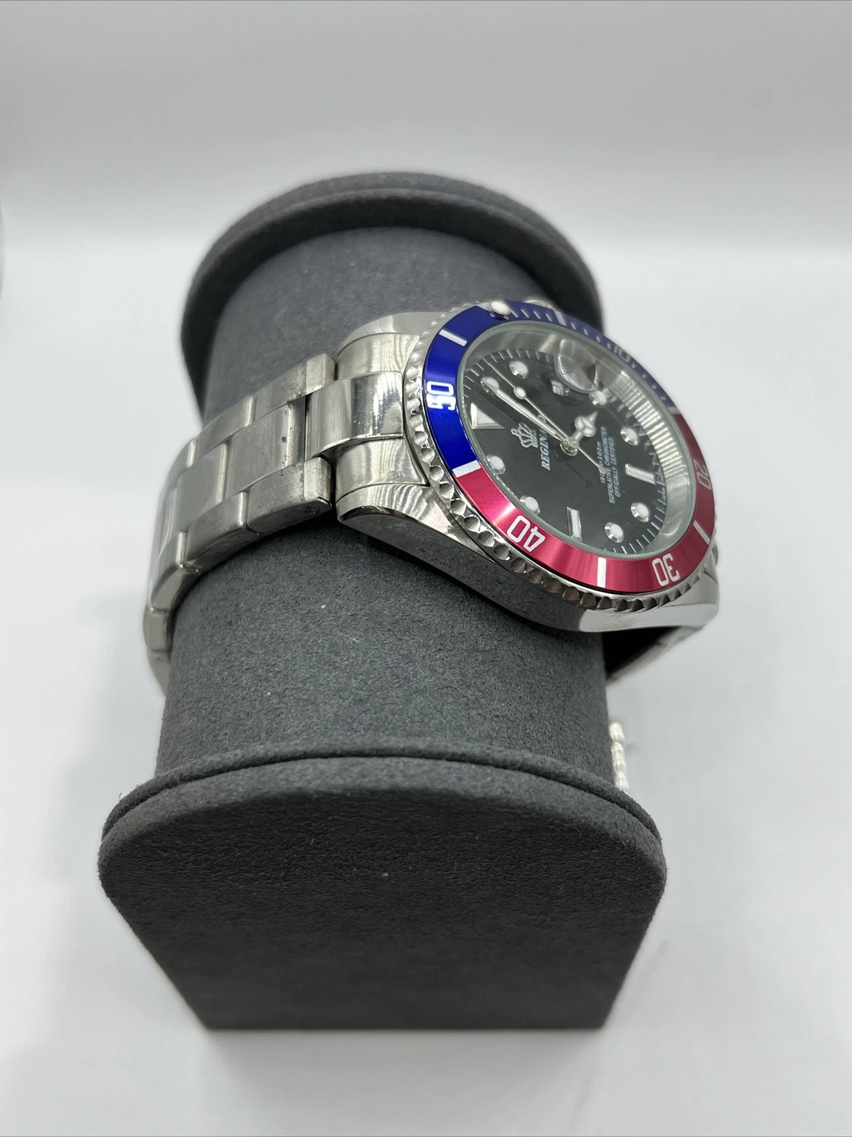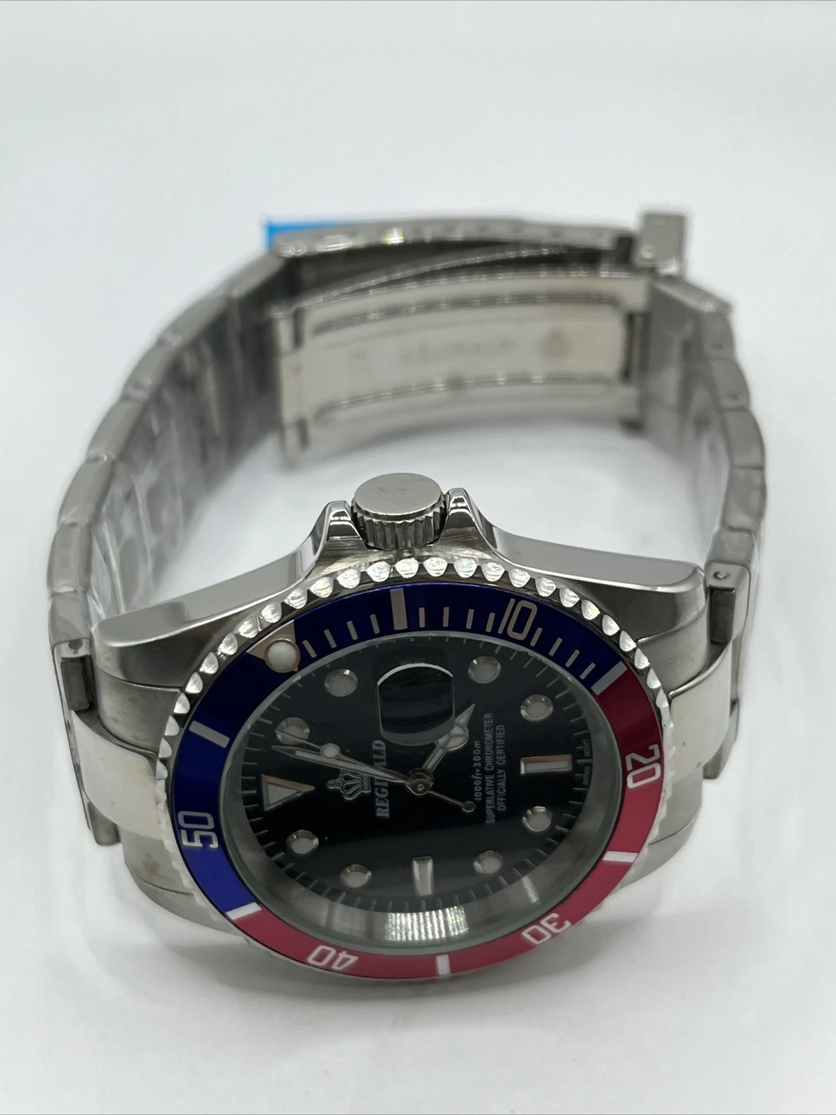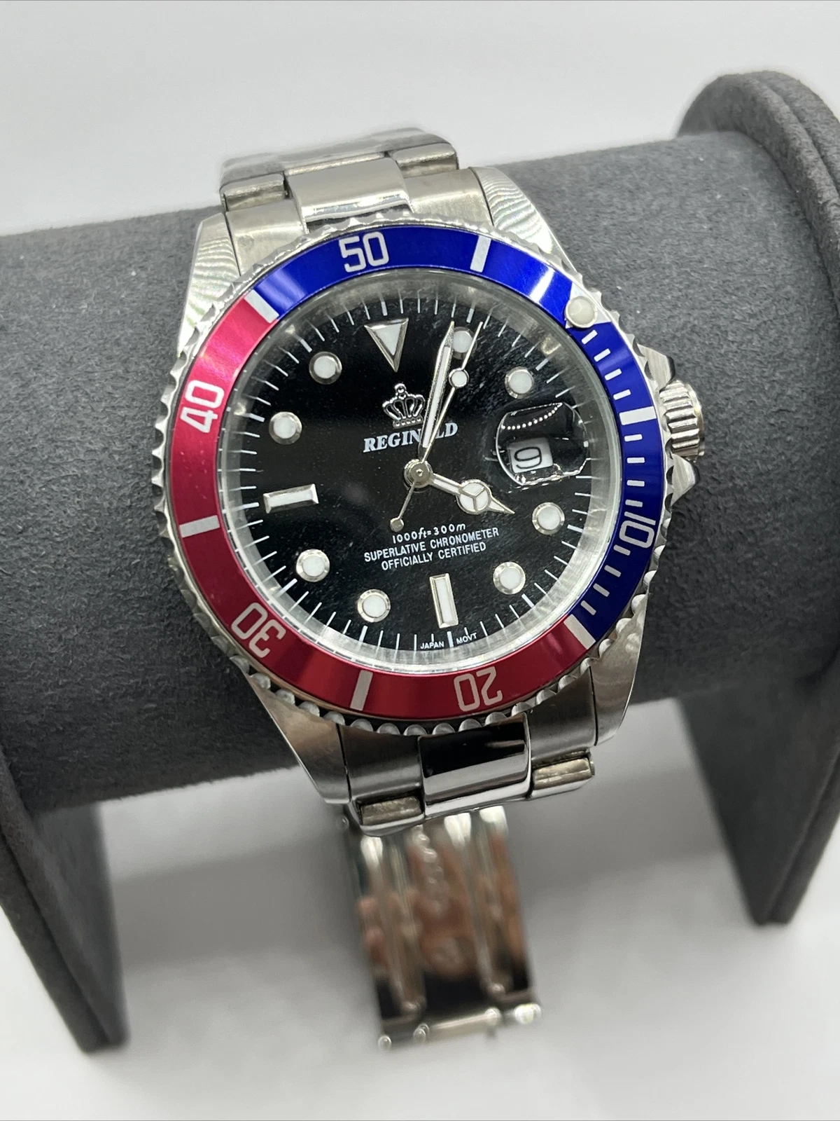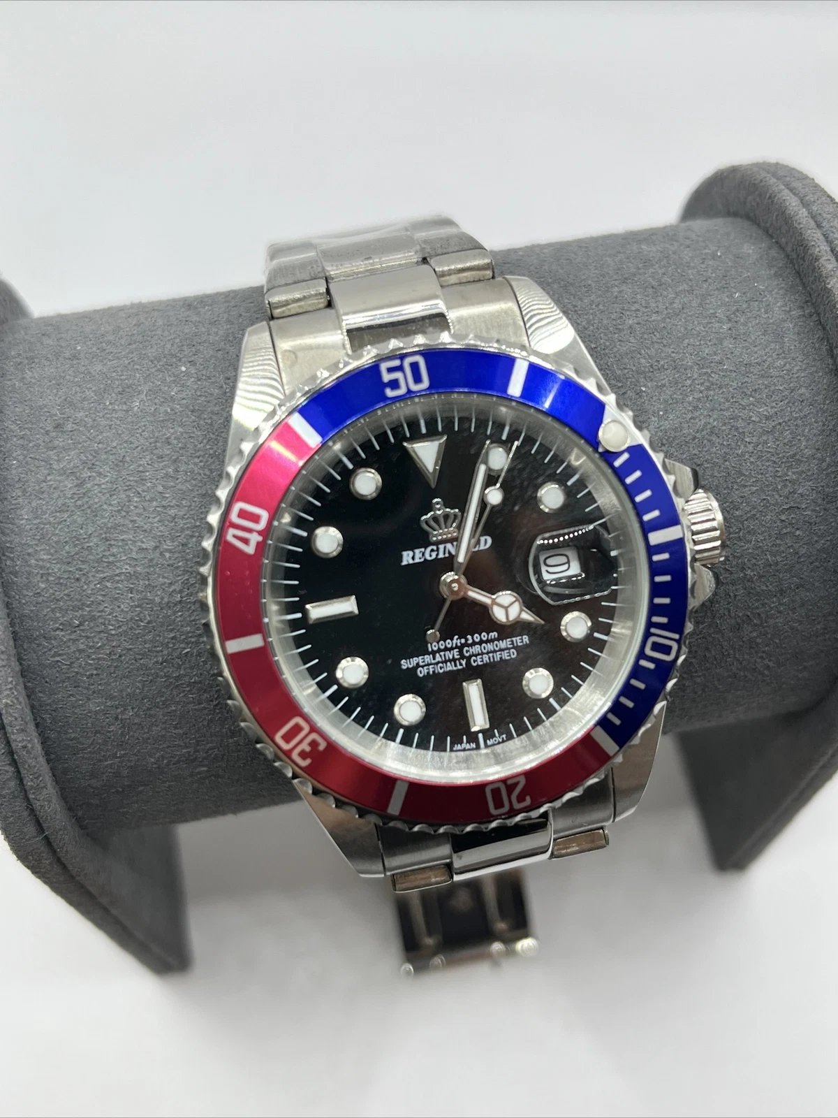 Reginald Mens Wrist Watch Silver Black Navy Red Analog Quartz New Battery. New