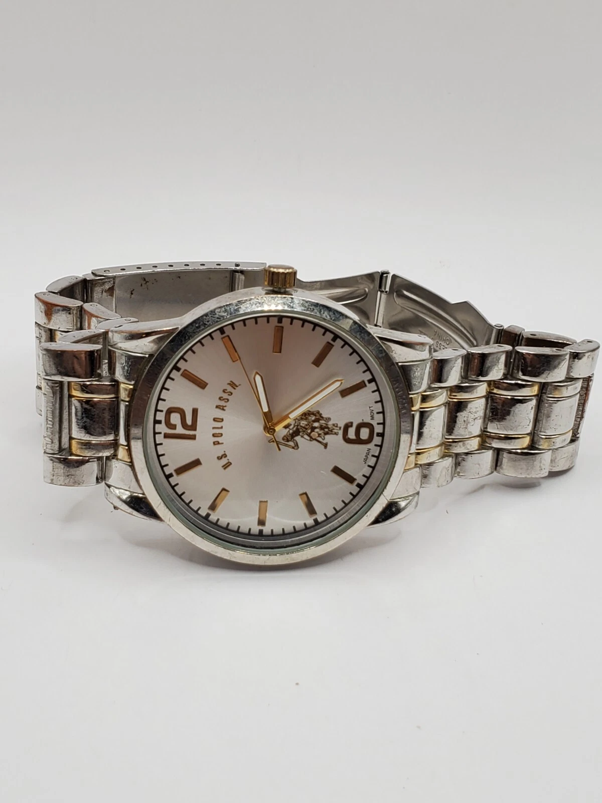 US Polo Assoc Men's Fashion Quartz Watch 42mm Round Silver Tone Metal Band