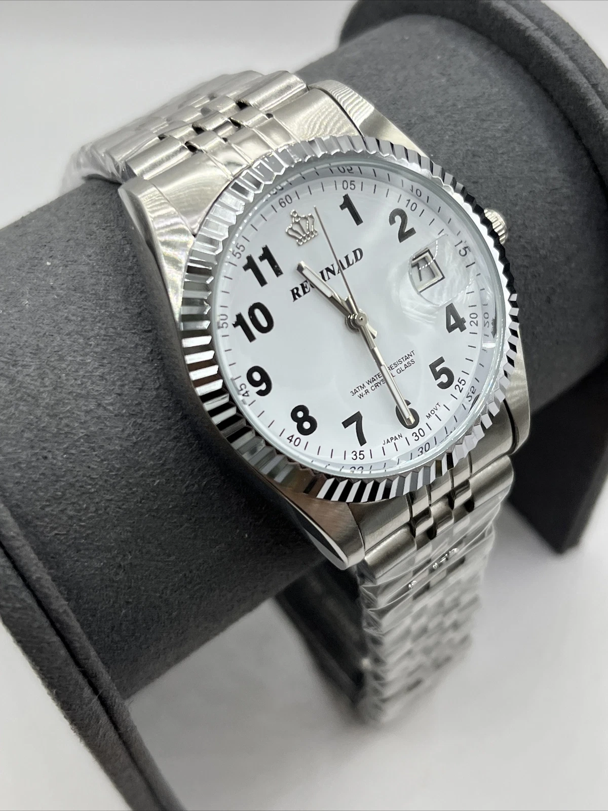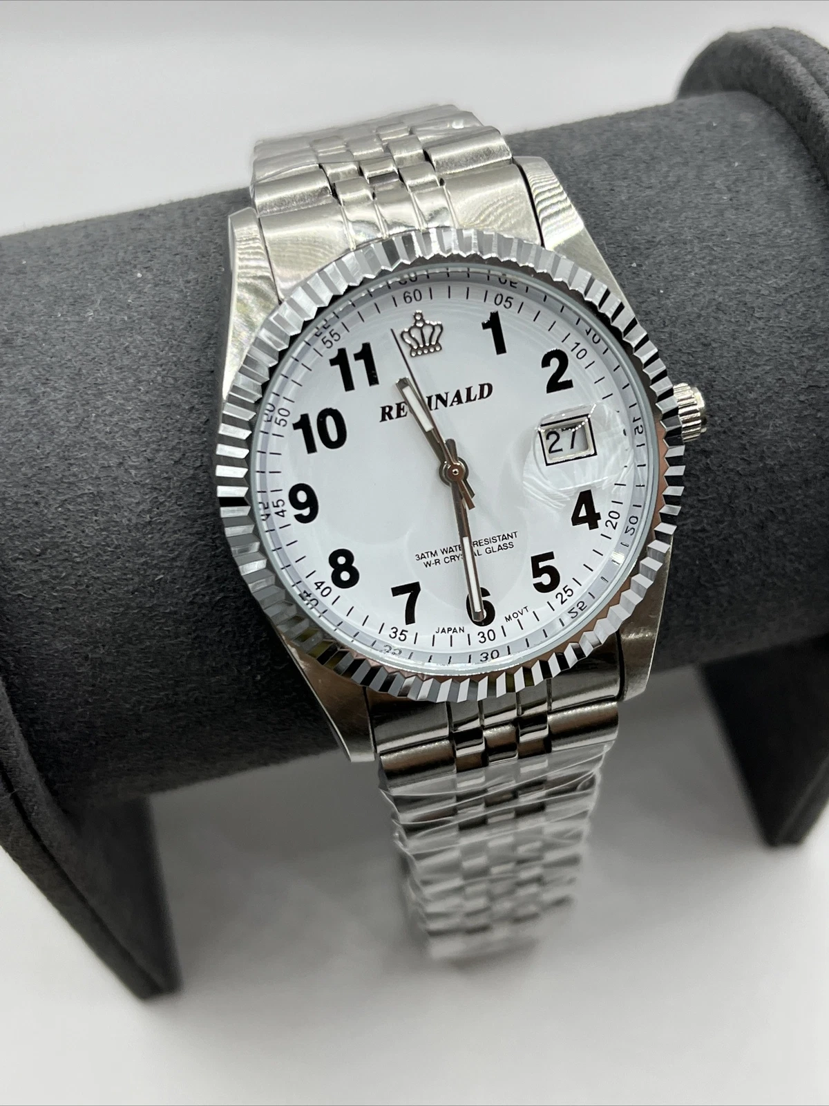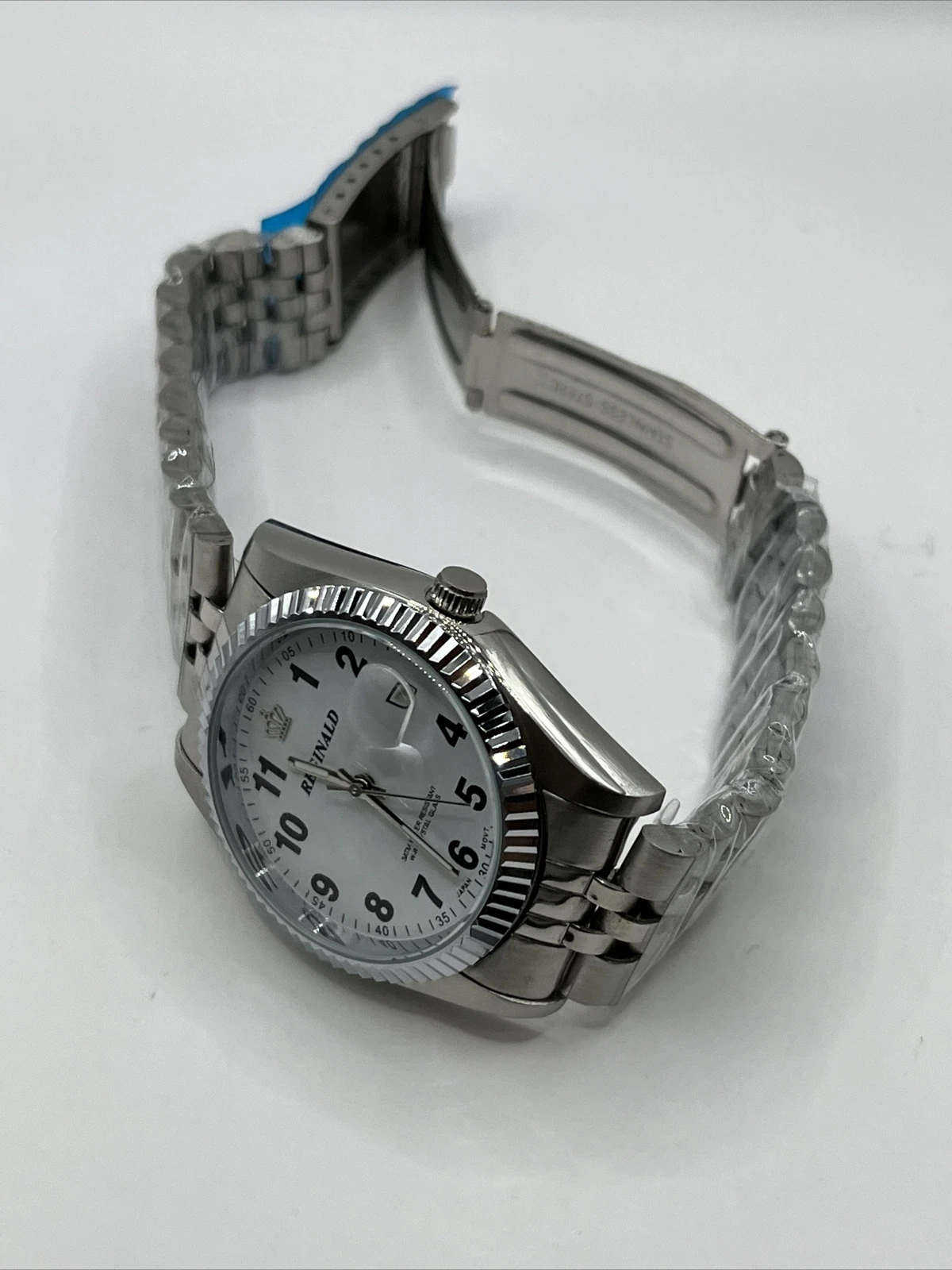Reginald Mens Wrist Watch Silver White Black Analog Date Quartz. New