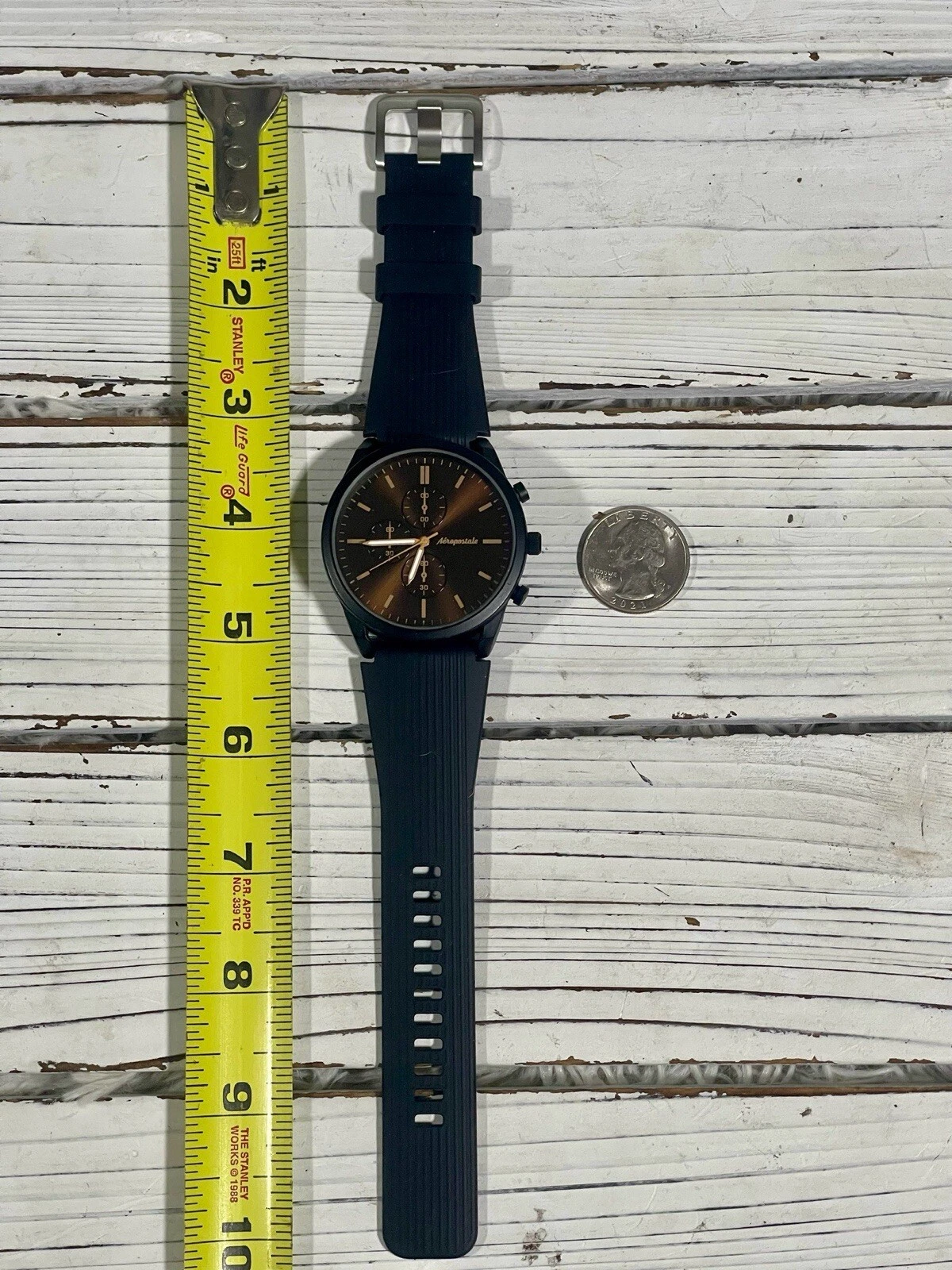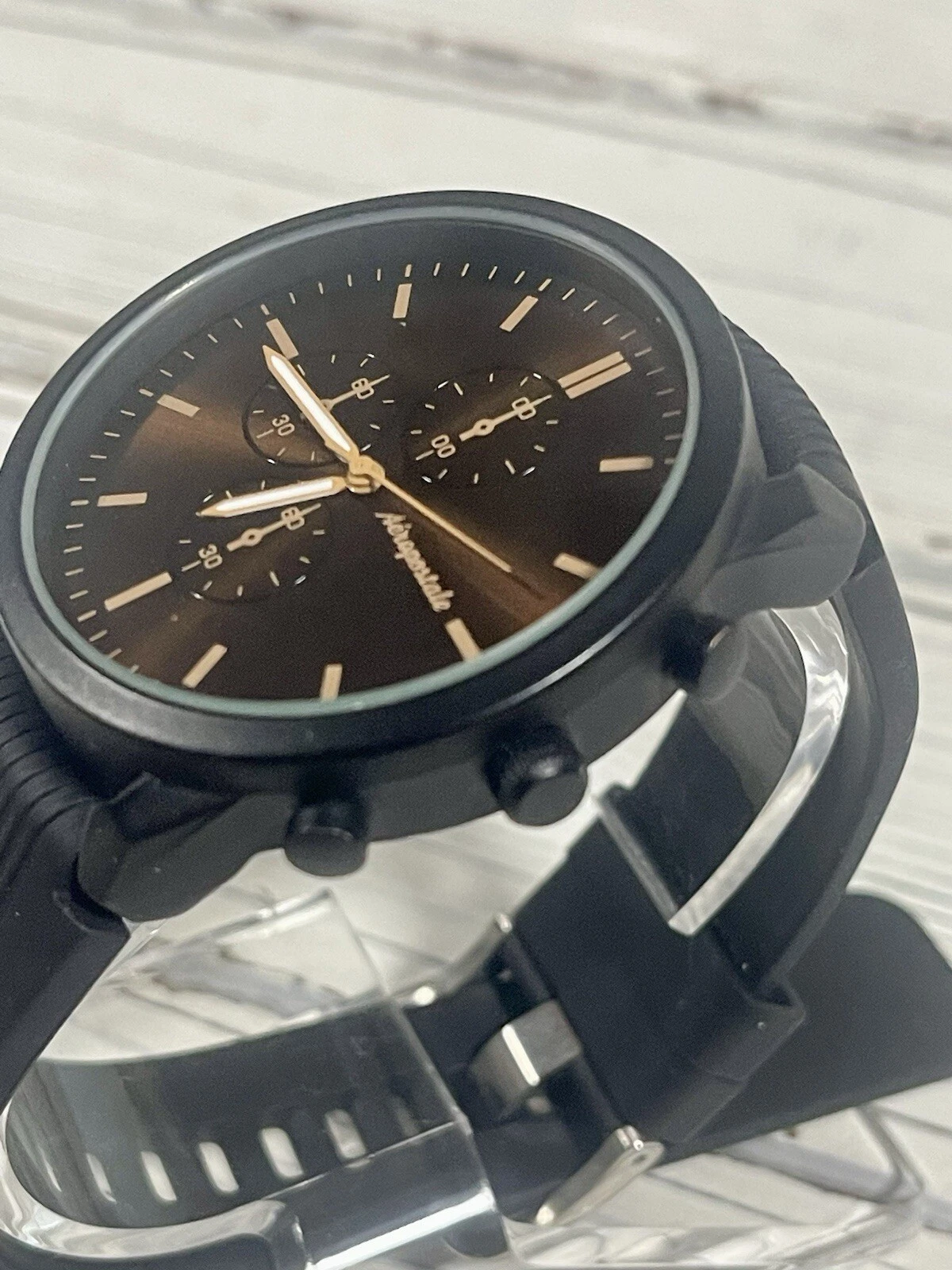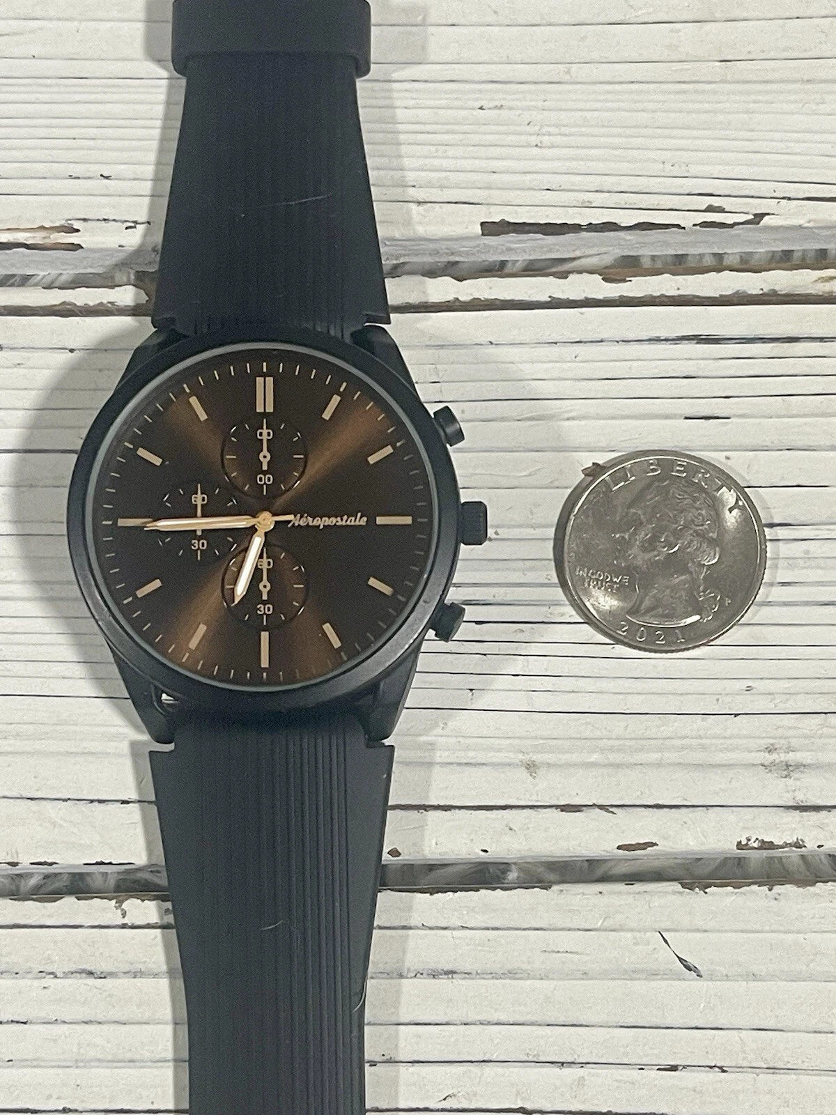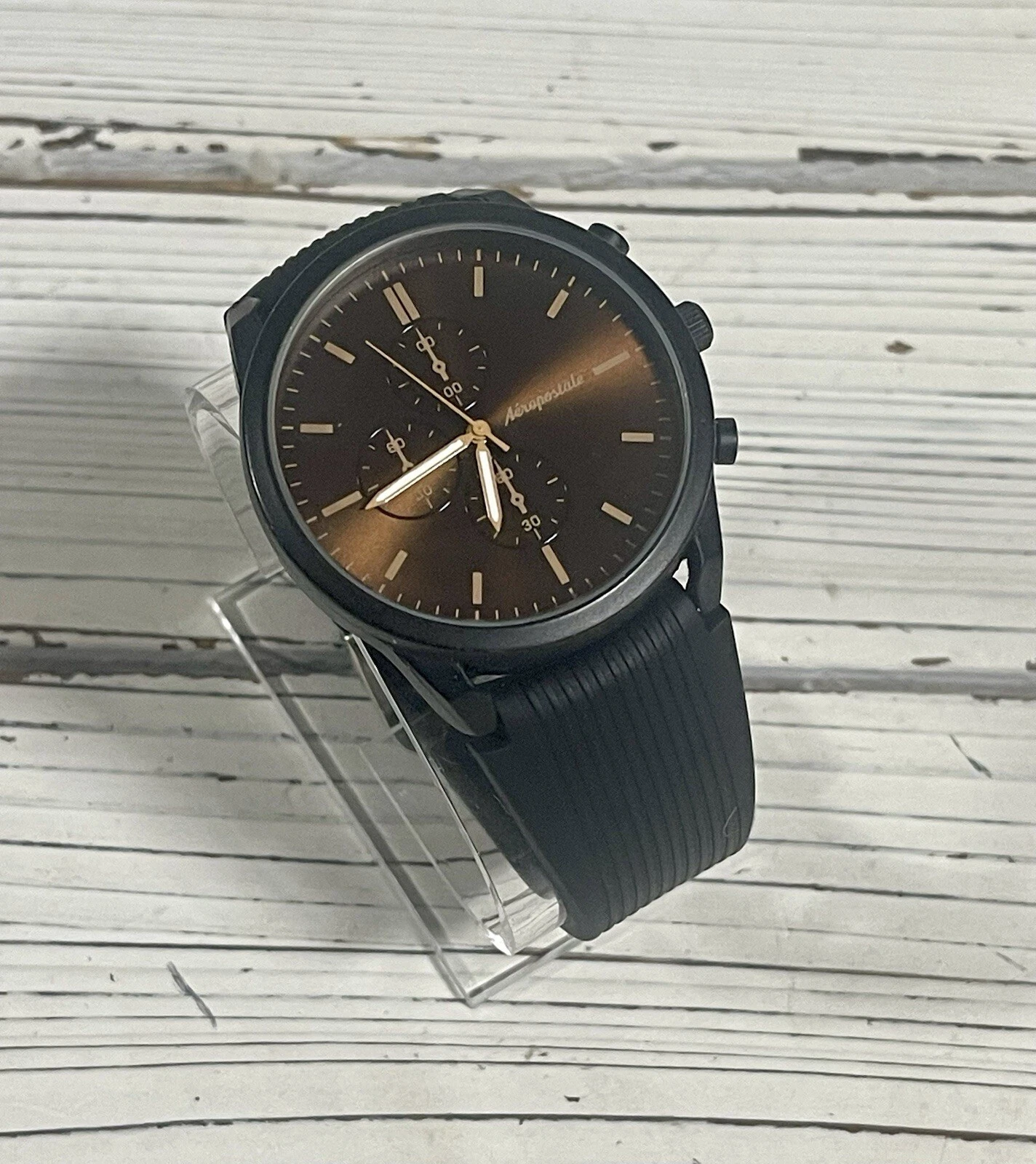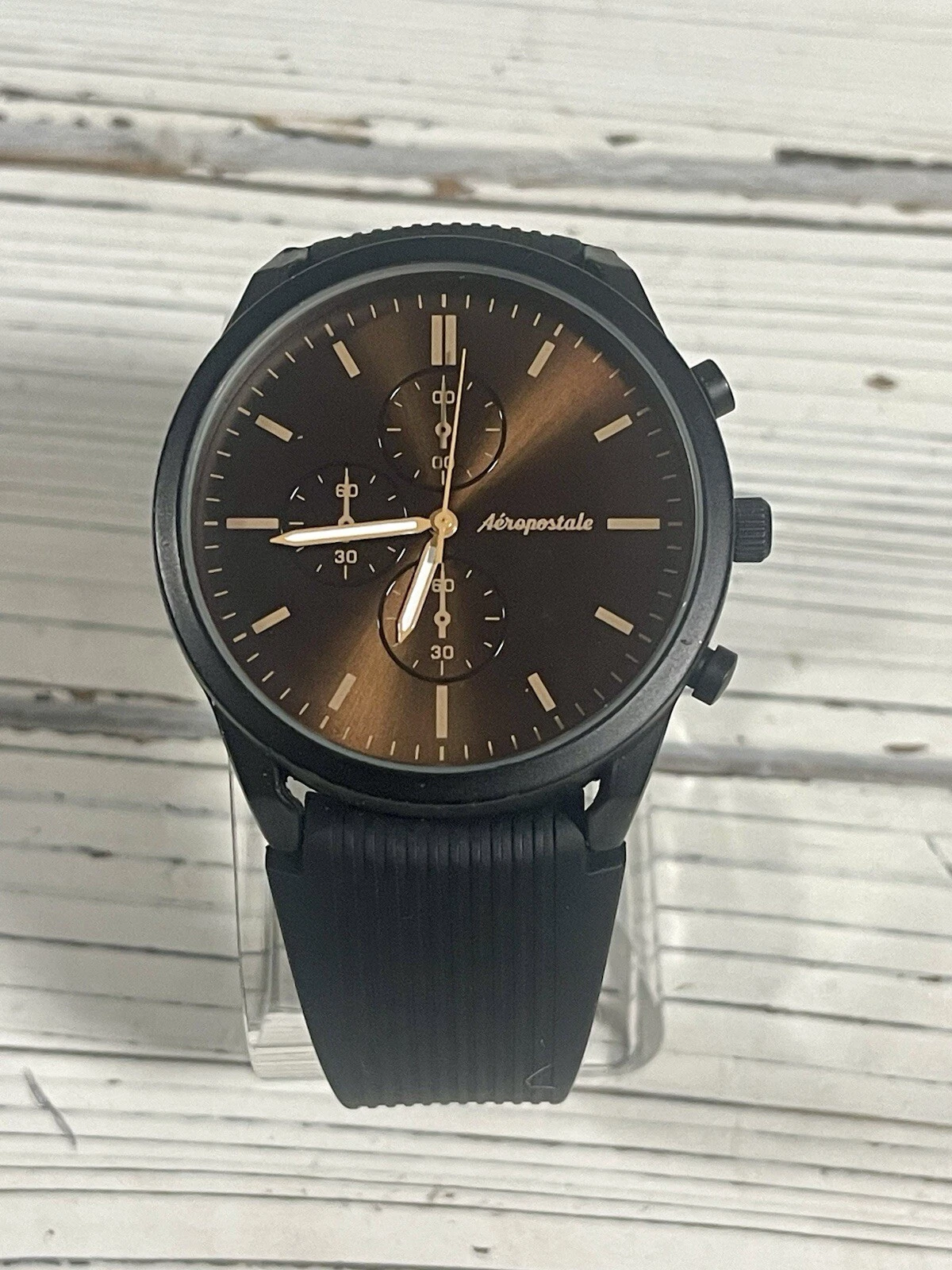 NEW BATTERY Aeropostale Luxury Watch Metallic Brown Chronograph Dial Silicone