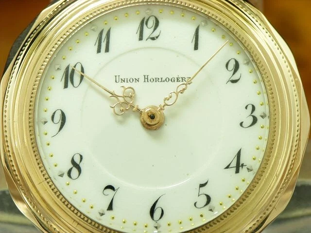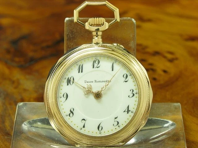 Union Horlogere 8kt 333 Gold Open Face Pocket Watch/Diameter 30,0mm