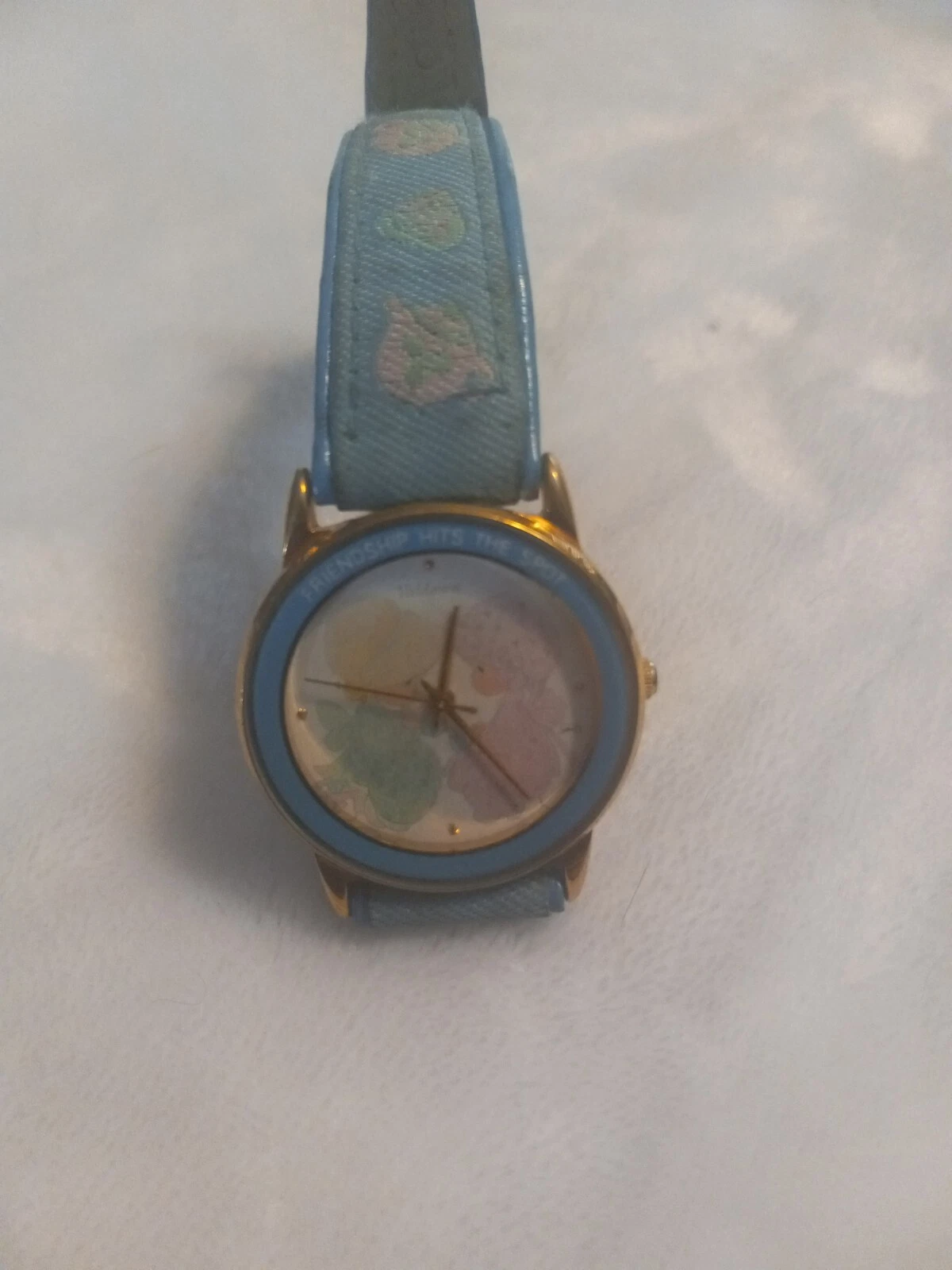 Vintage Ladies PRECIOUS MOMENTS Friendship Hits the Spot Blue/Gold Tone Watch