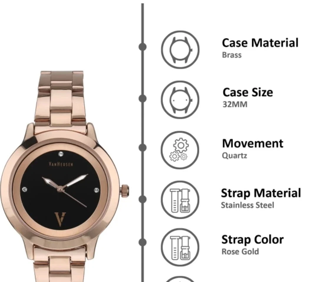 Analog Watch For Women Rose Gold & Black Casual VAN HEUSEN Wrist Watch