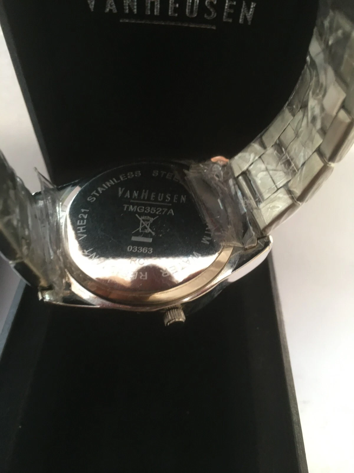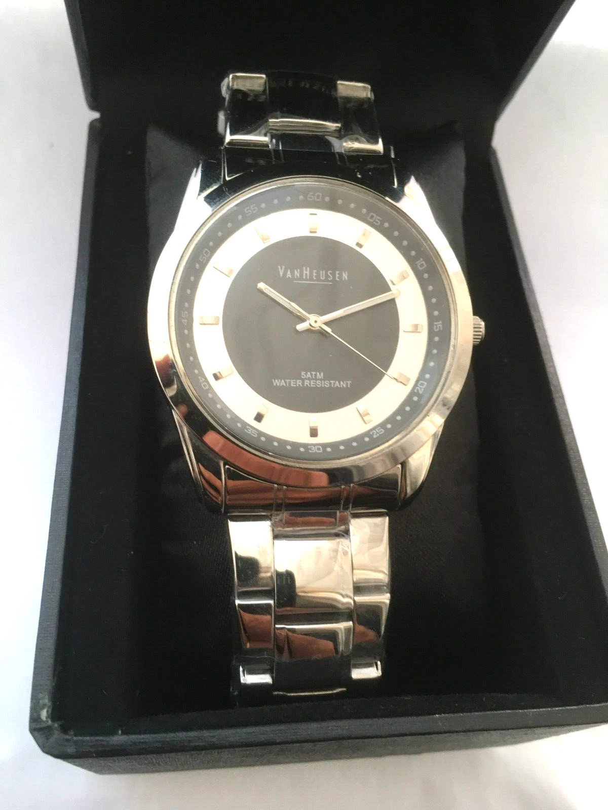 Van Heusen Mens 5 ATM WR Quartz Bracelet Watch & Box New TMG3527A