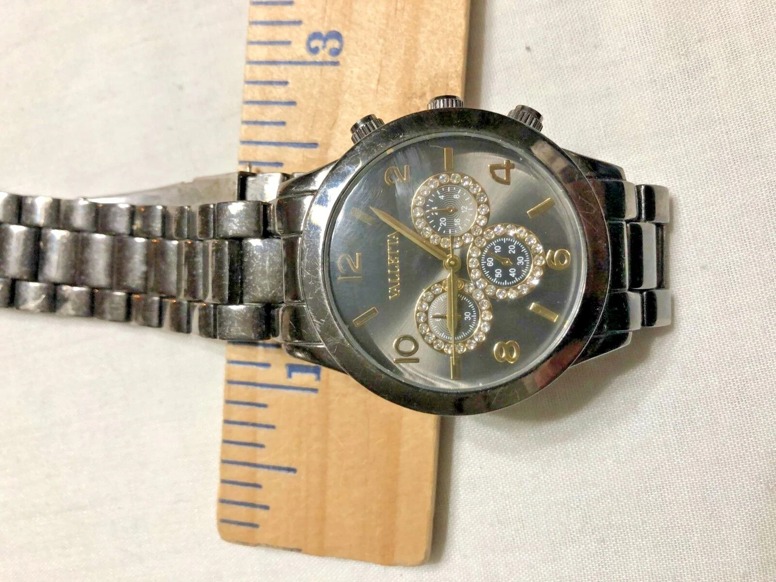 VALLETTA LADIES MENS BRONZE TONE LINK CHRONOGRAPH WATCH  -battery is new