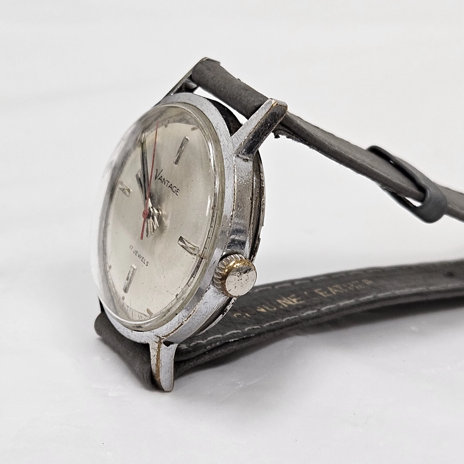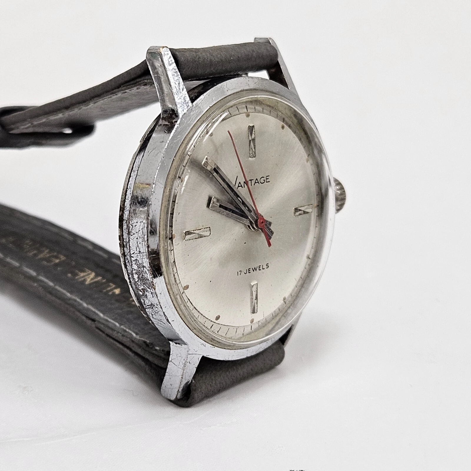 Vantage 17 Jewels Swiss Made Mechanical Manual Wind Mens Wrist Watch Silver Tone