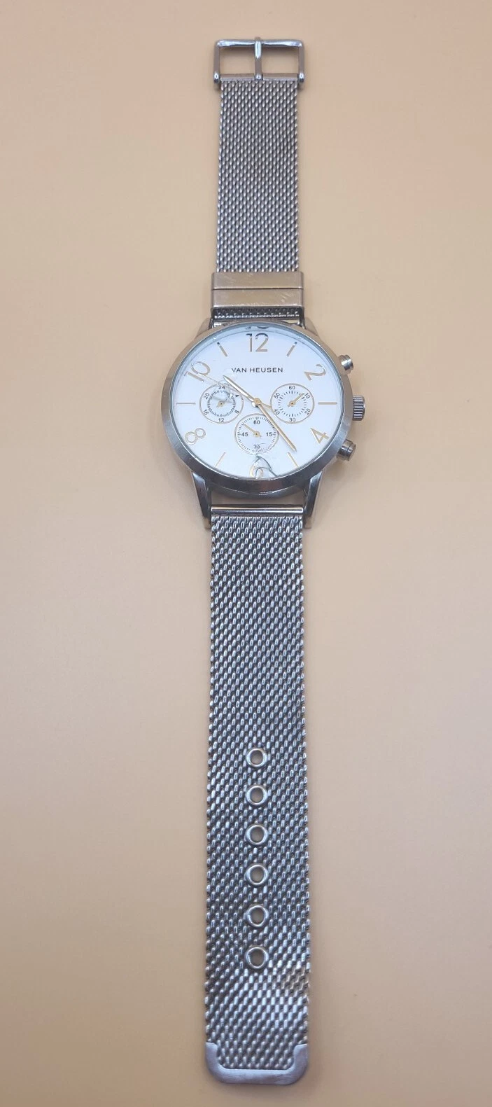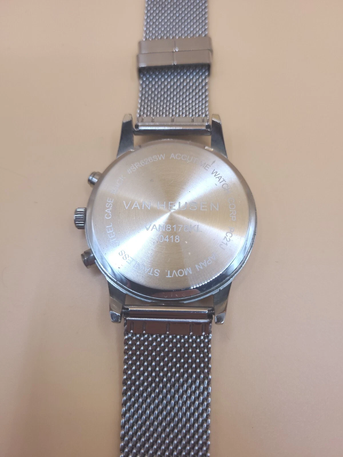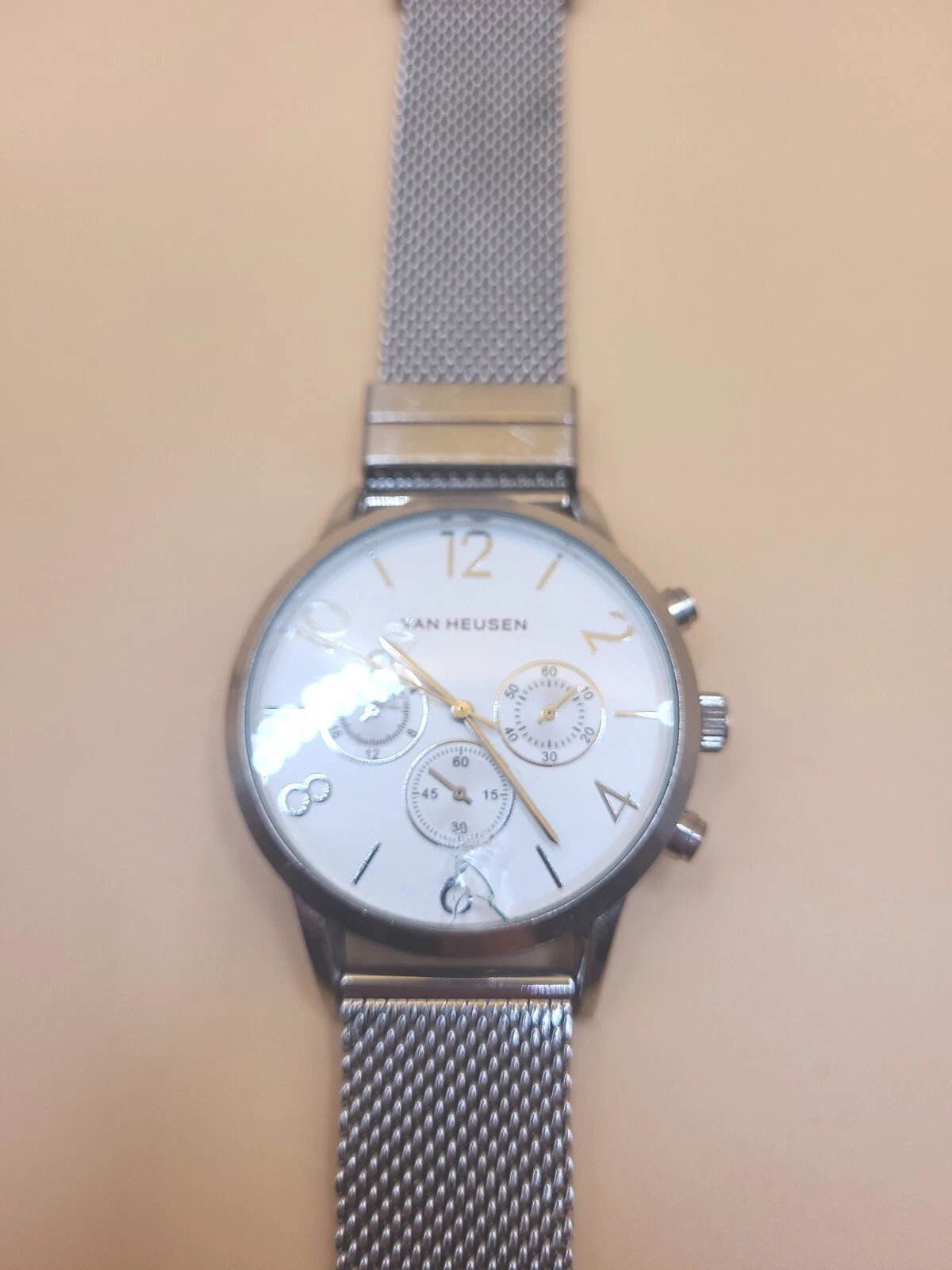 Van Heusen Silver Tone Dial Round Case Stainless Steel UNTESTED PARTS OR REPAIR