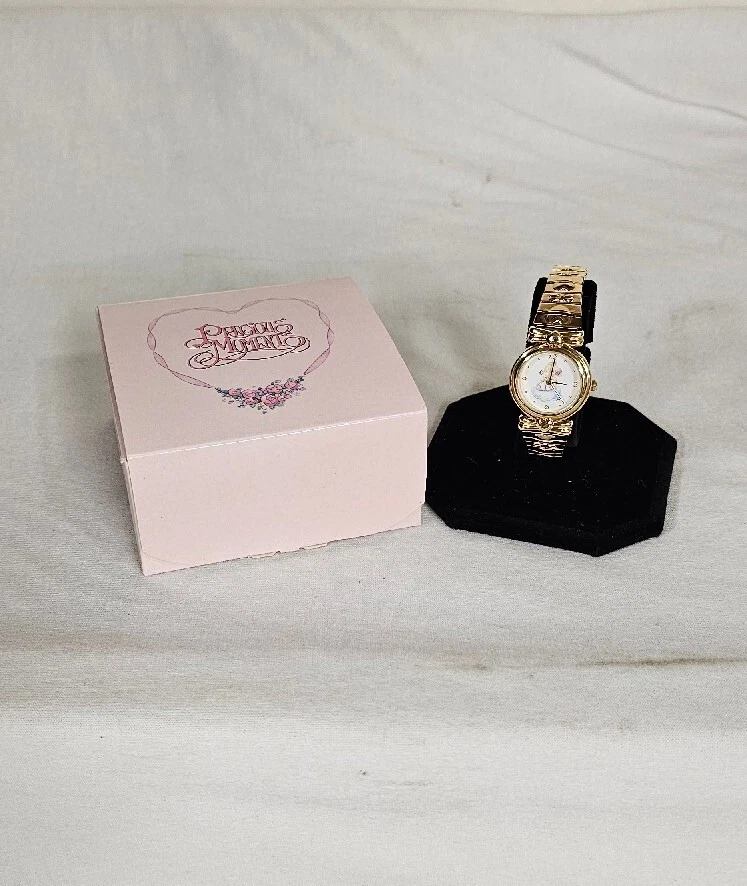 ⌚2001 Avon Precious Moments Gold Tone Watch Valdawn "Fluttering By To Say Hi"