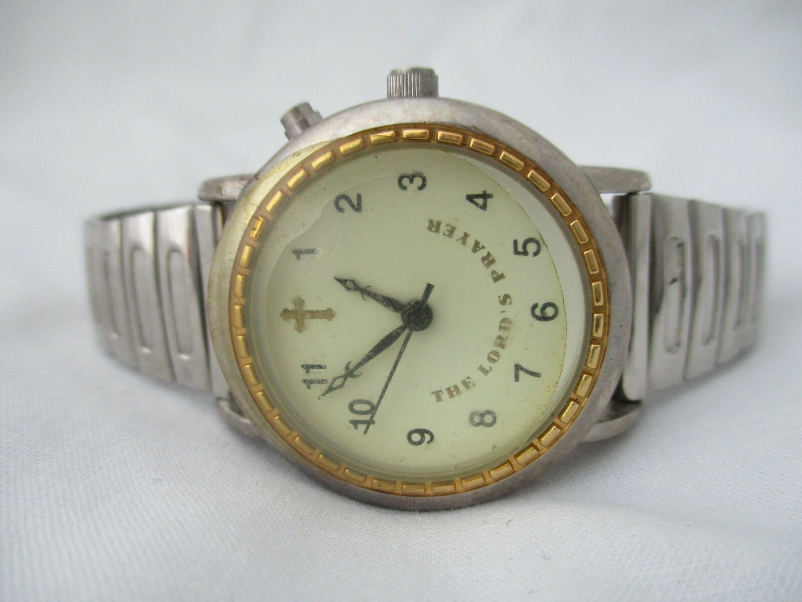 Valdawn The Lord's Prayer Analog Wristwatch Silver Tone Expansion Band