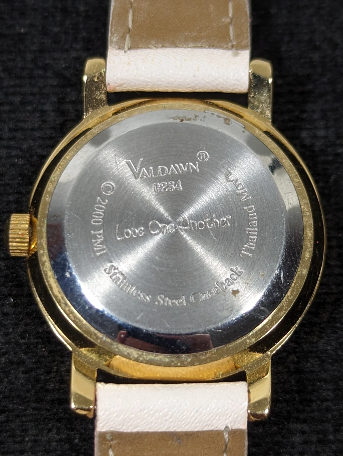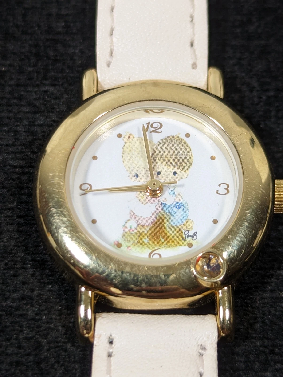 Precious Moments Valdawn Love One Another Gold Tone Case White Band Watch
