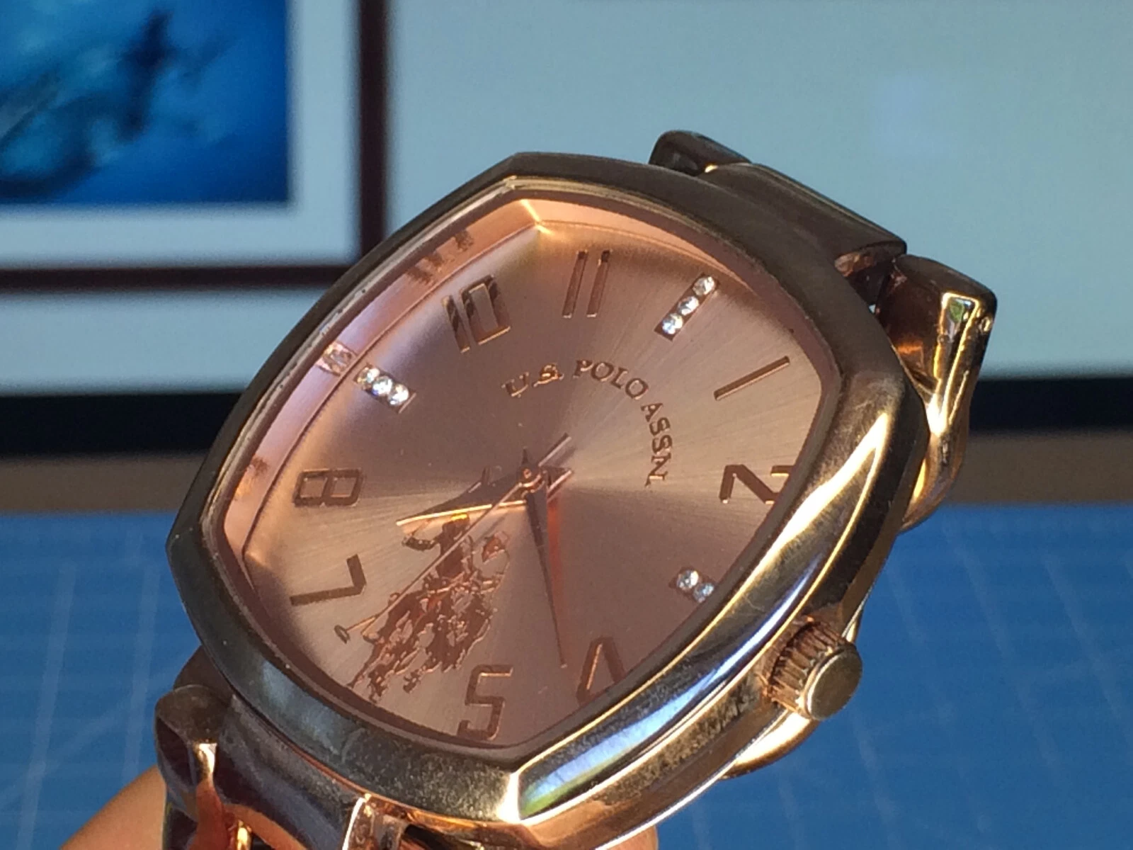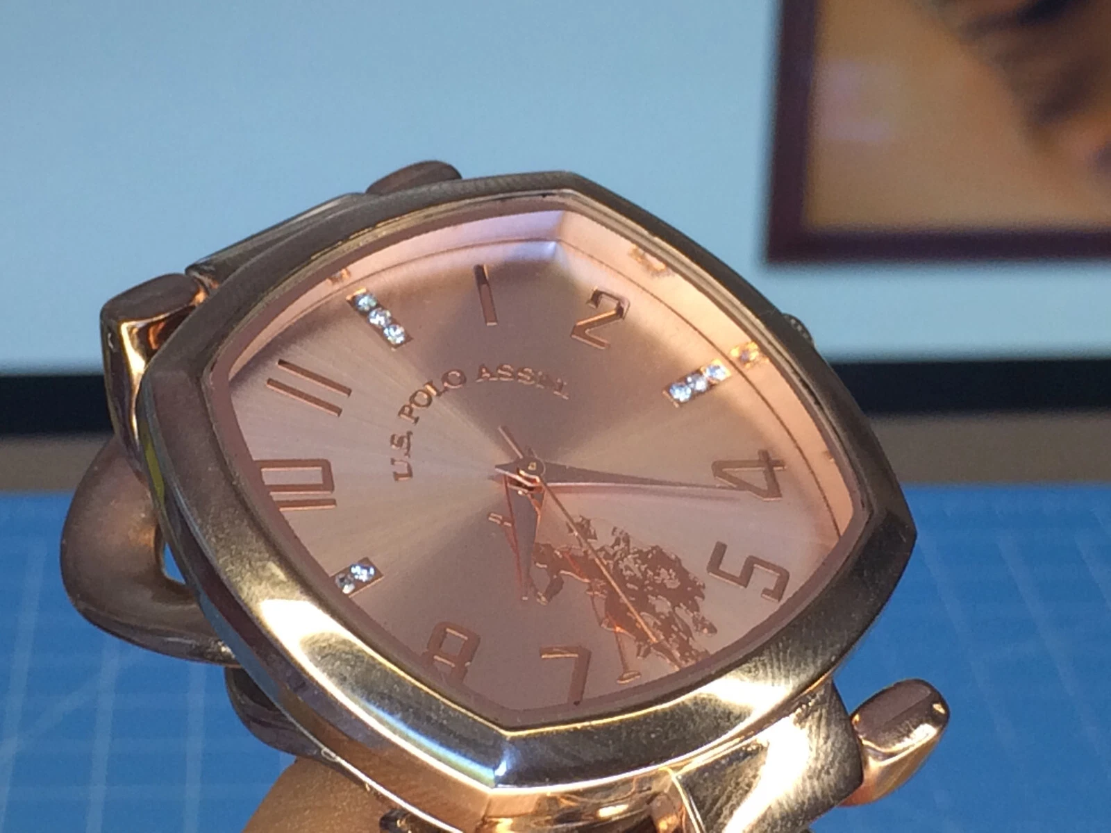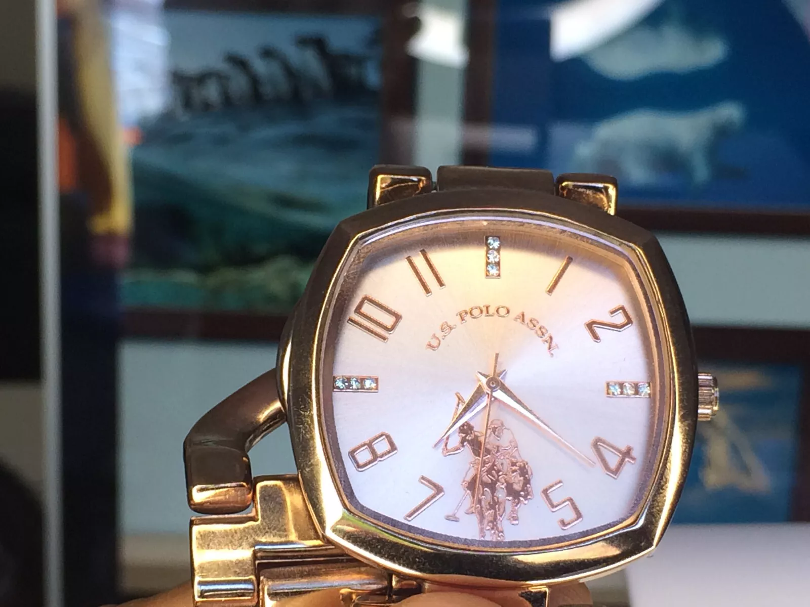 US Polo Assn. Men's Gold-Plated Watch with Pink Bezel