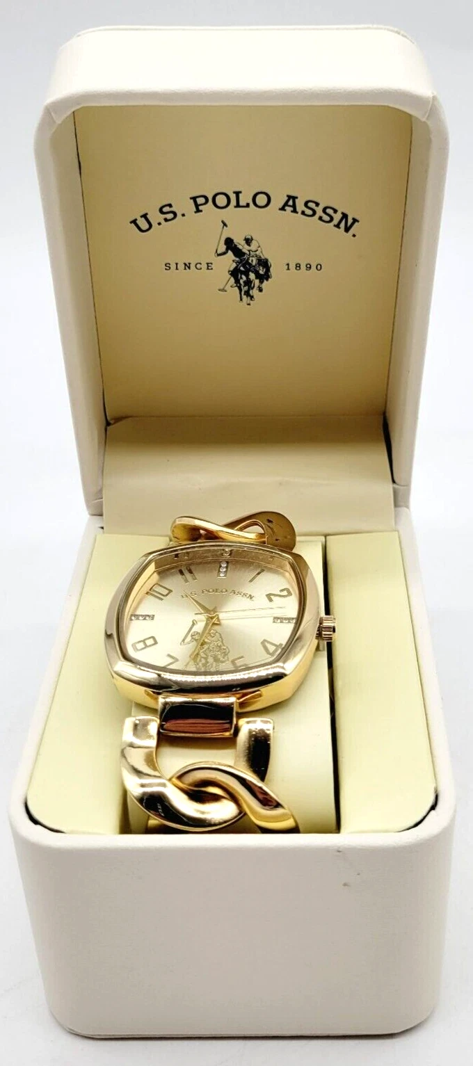 US Polo Association Women's Gold Tone Chait Strap Analog Wrist Watch
