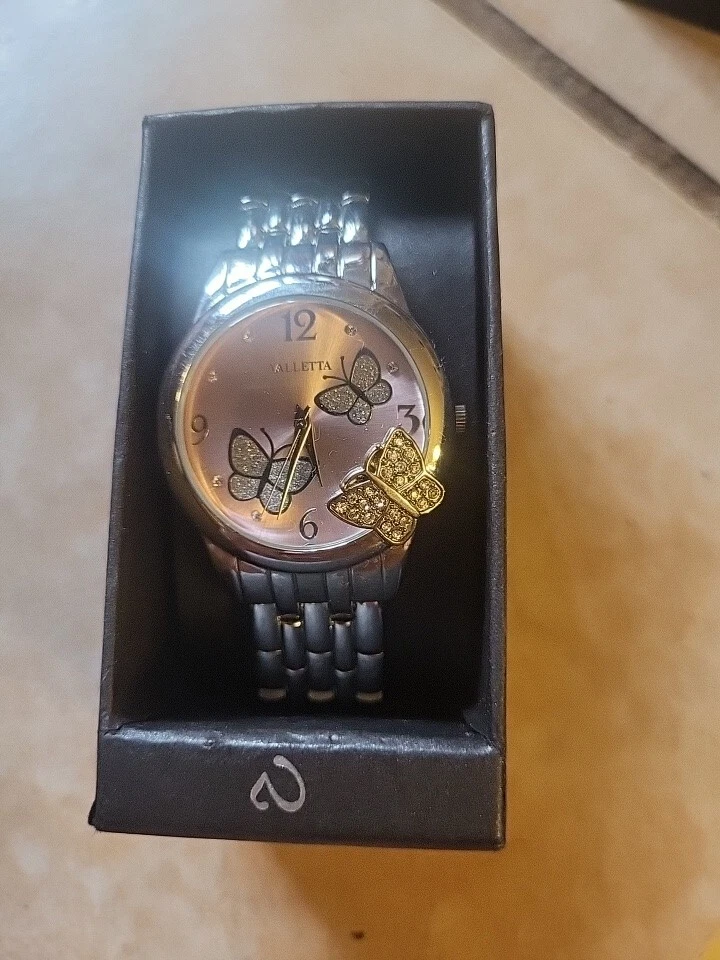 NEW LARGE PRETTY LADIES BUTTERFLY PINK CHARM WATCH NEW BATTERY STAINLESS W/ BOX