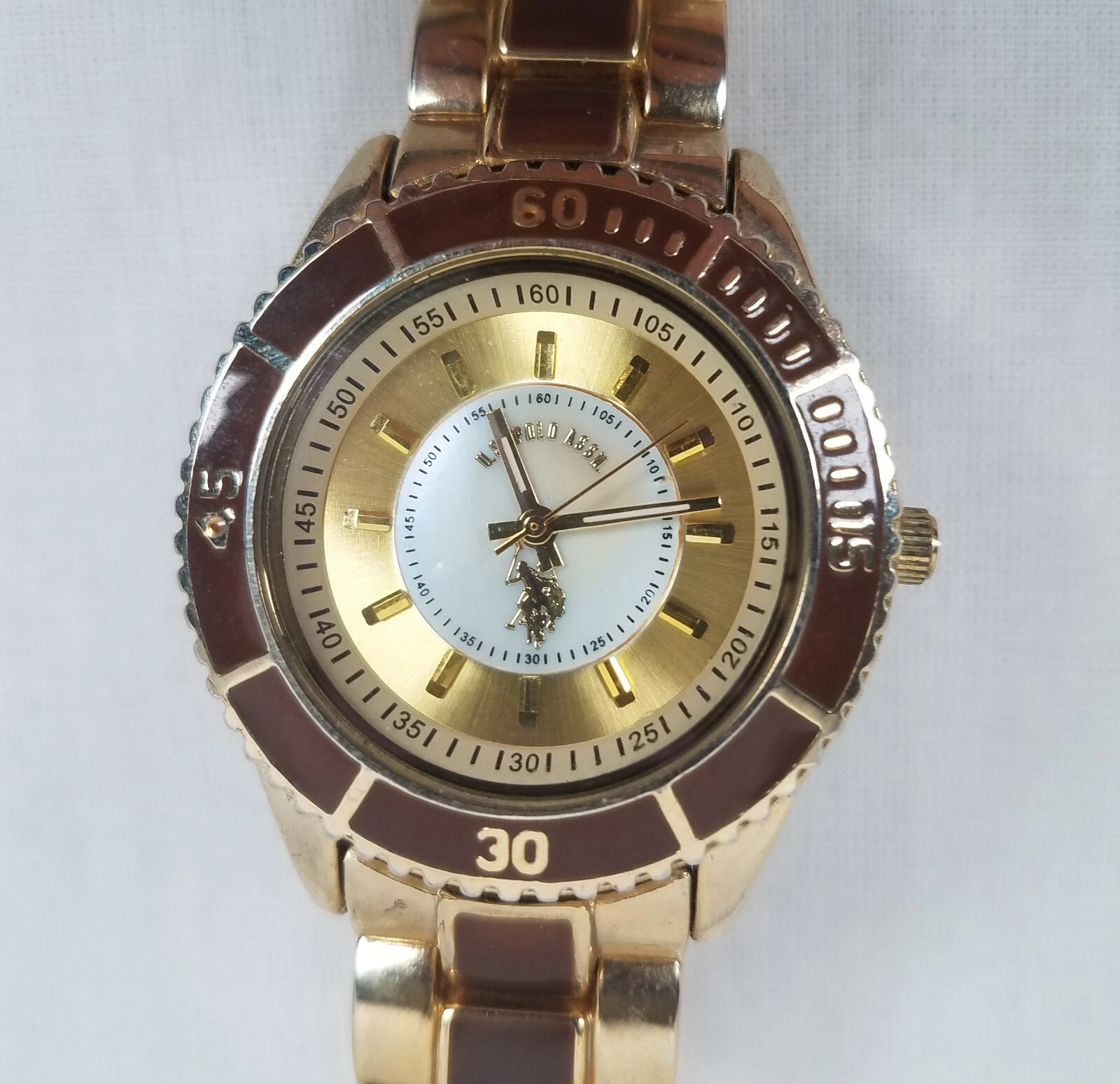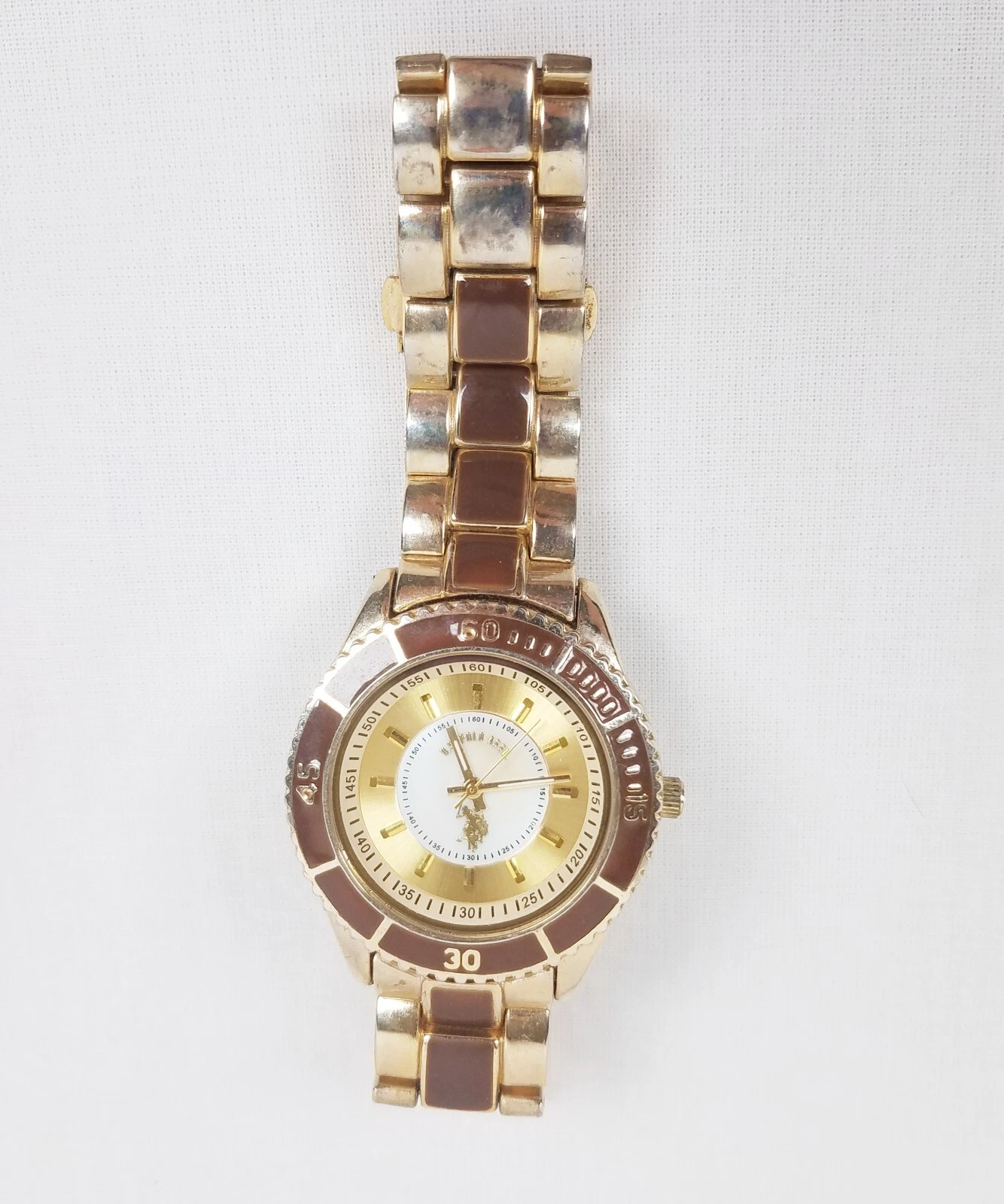Mens US Polo Assn Watch New Battery USC 40008 Gold Brown