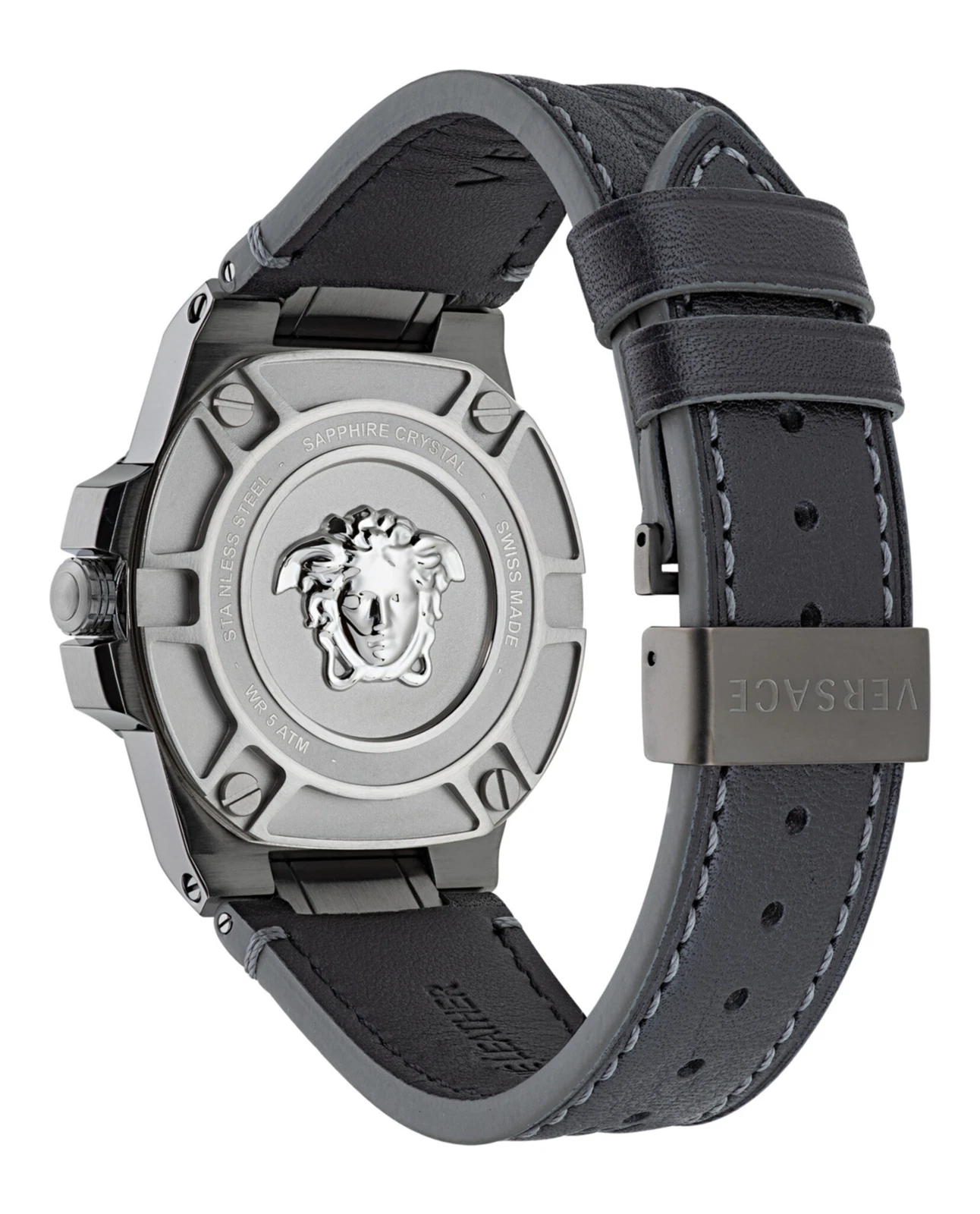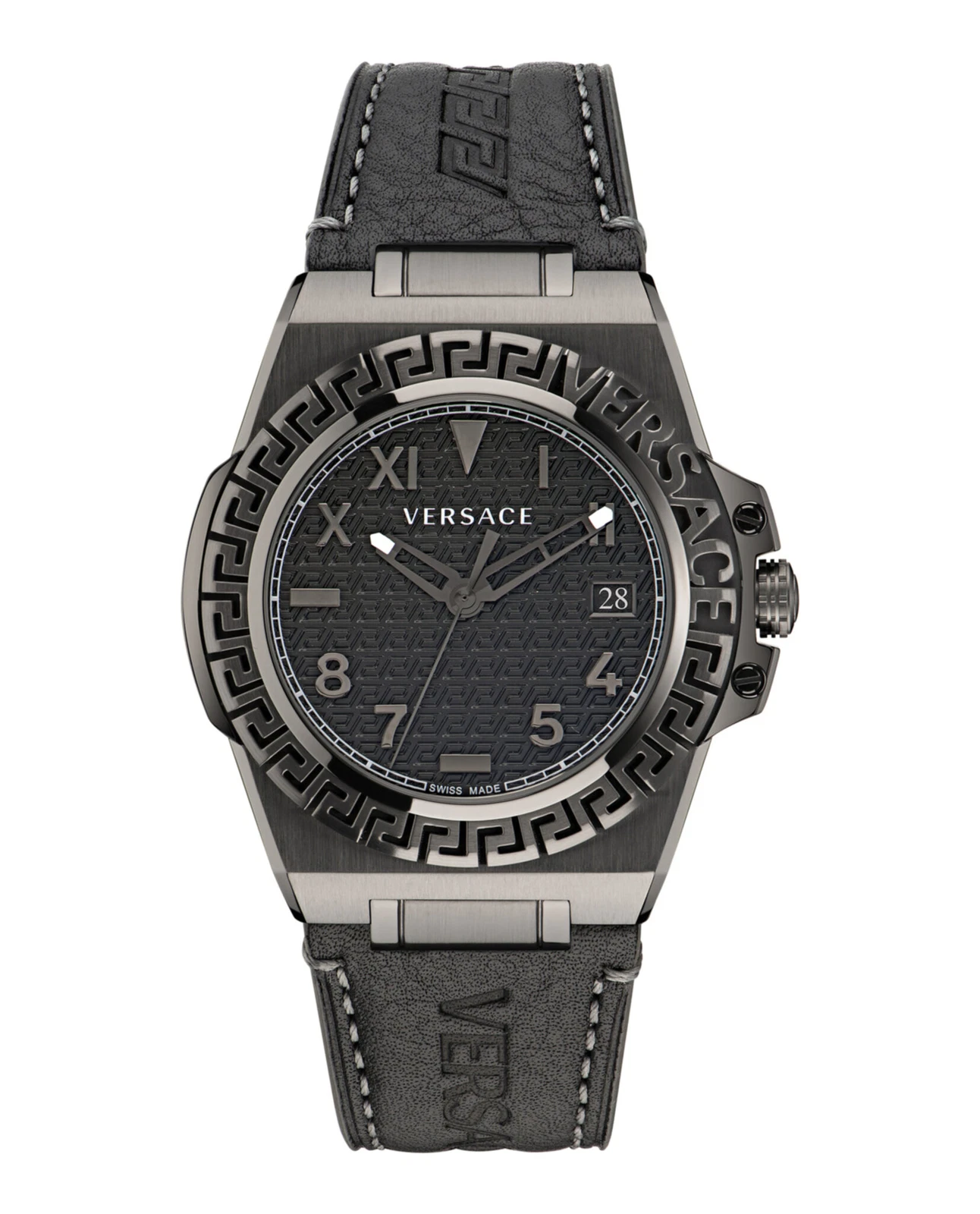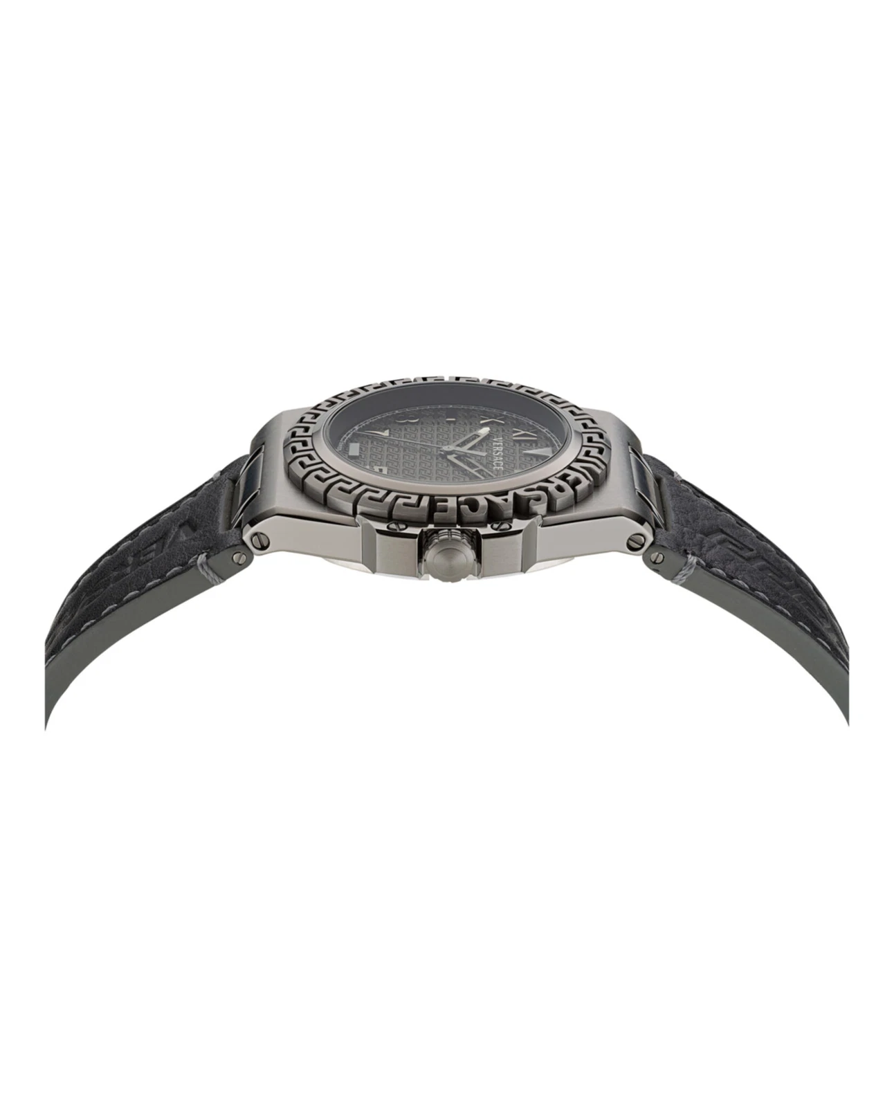 Versace Mens IP Gunmetal 44 mm Greca Reaction Strap Watch VE3I00322