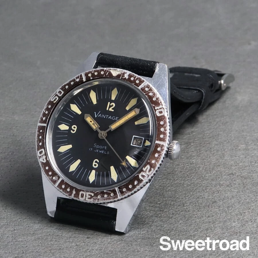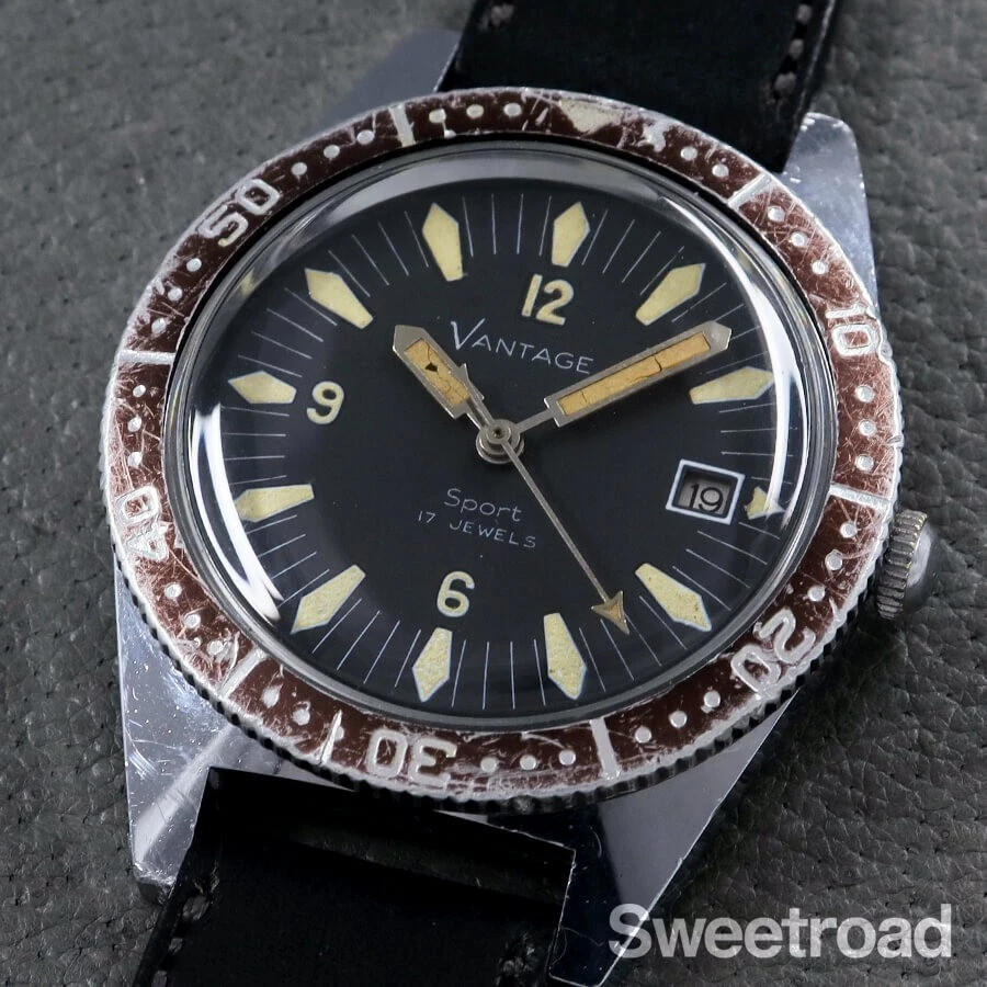 Vantage Sports Skin Diver Hamilton 1960s Cal.179A Manual 38mm Leather Men's