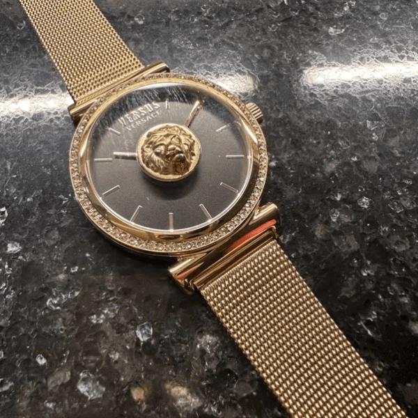 NWT VERSUS VERSACE Brick Lane Gold Mesh 34MM Stainless Steel Bracelet Watch