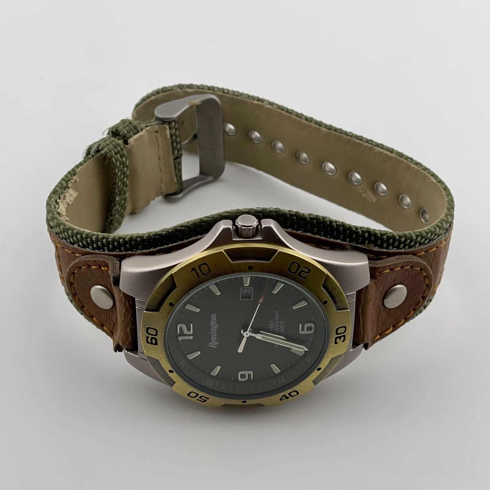 Remington Watch Mens Date 43mm Two Tone Case Nylon Bund Strap Quartz