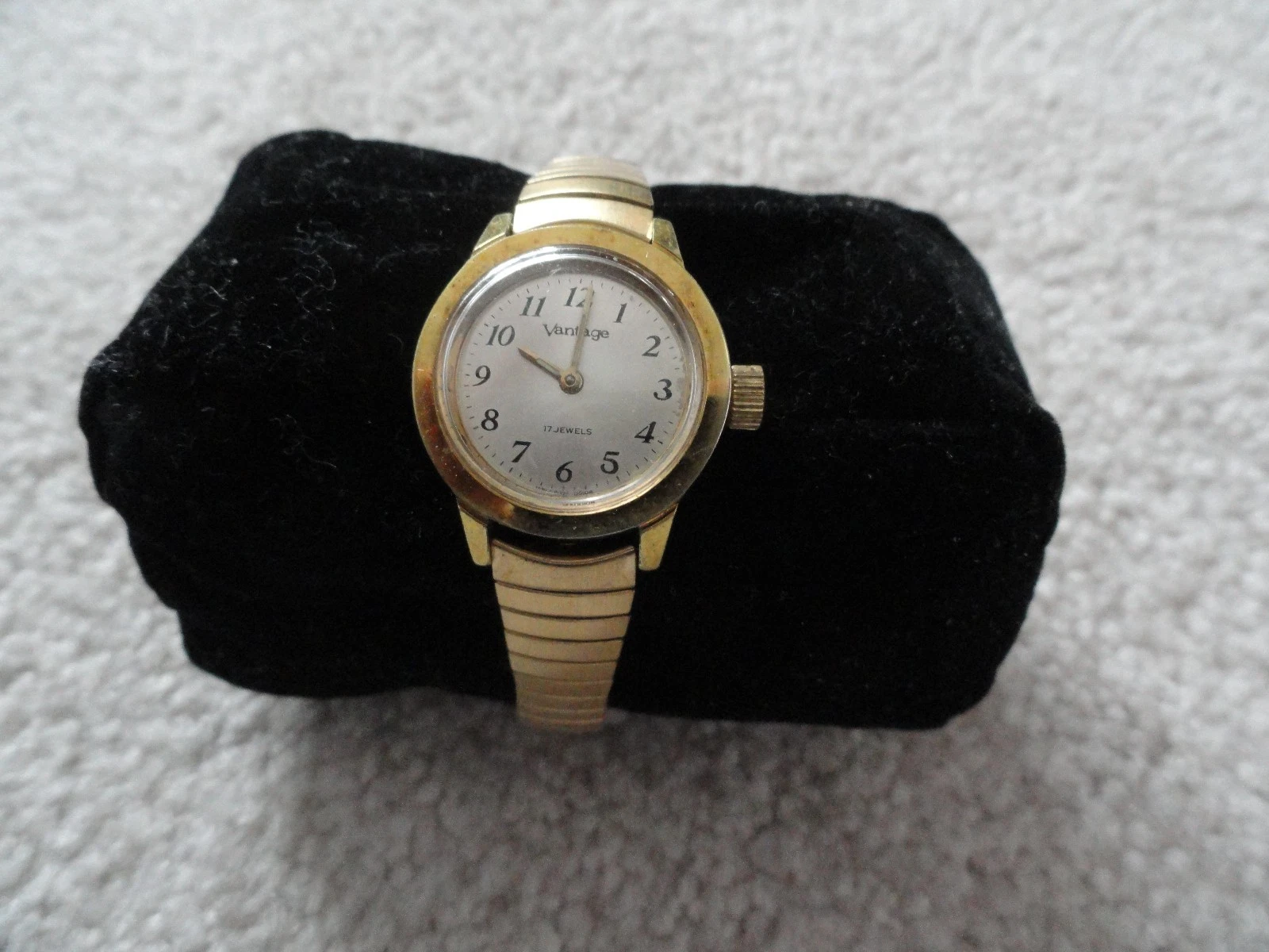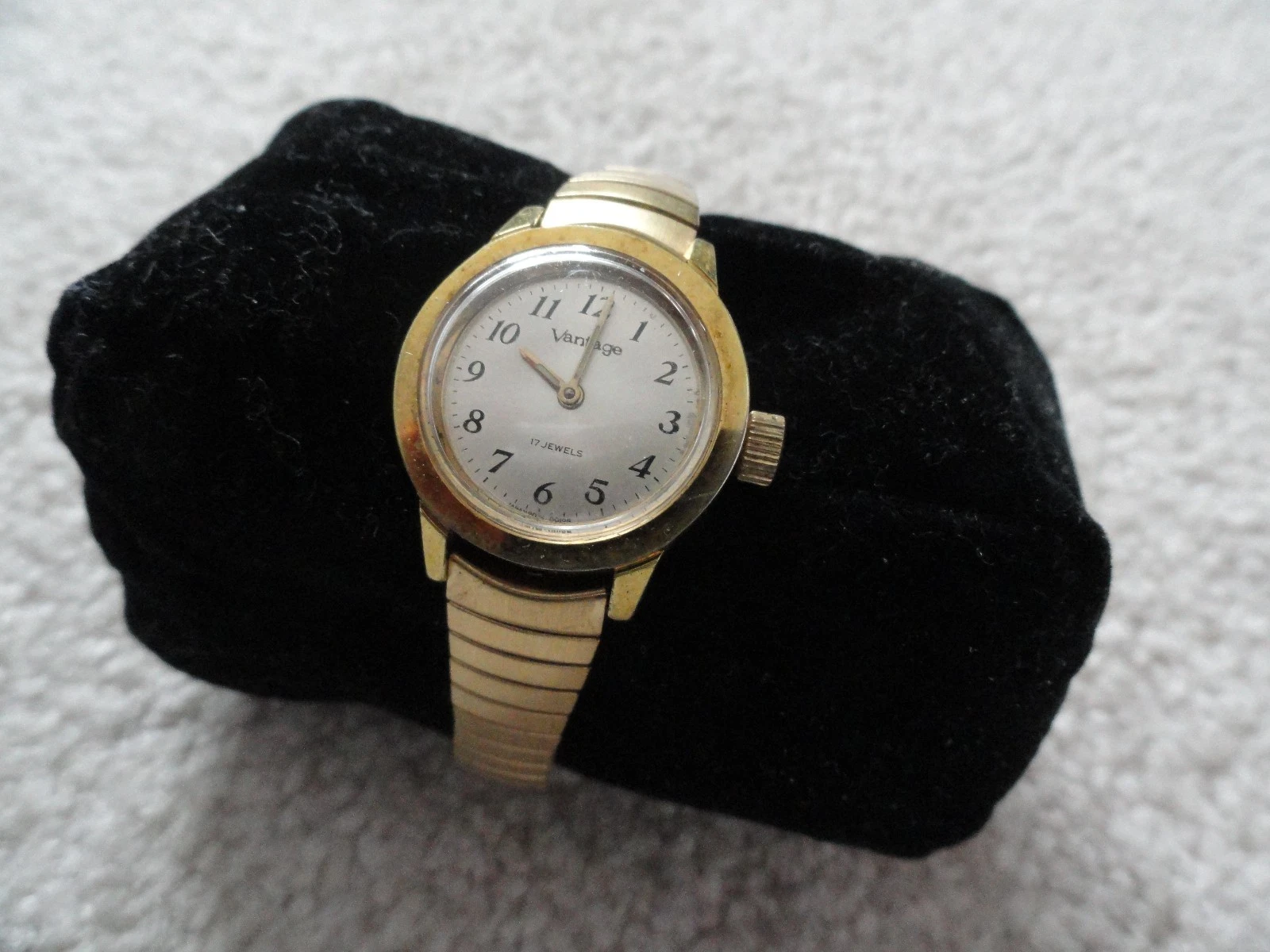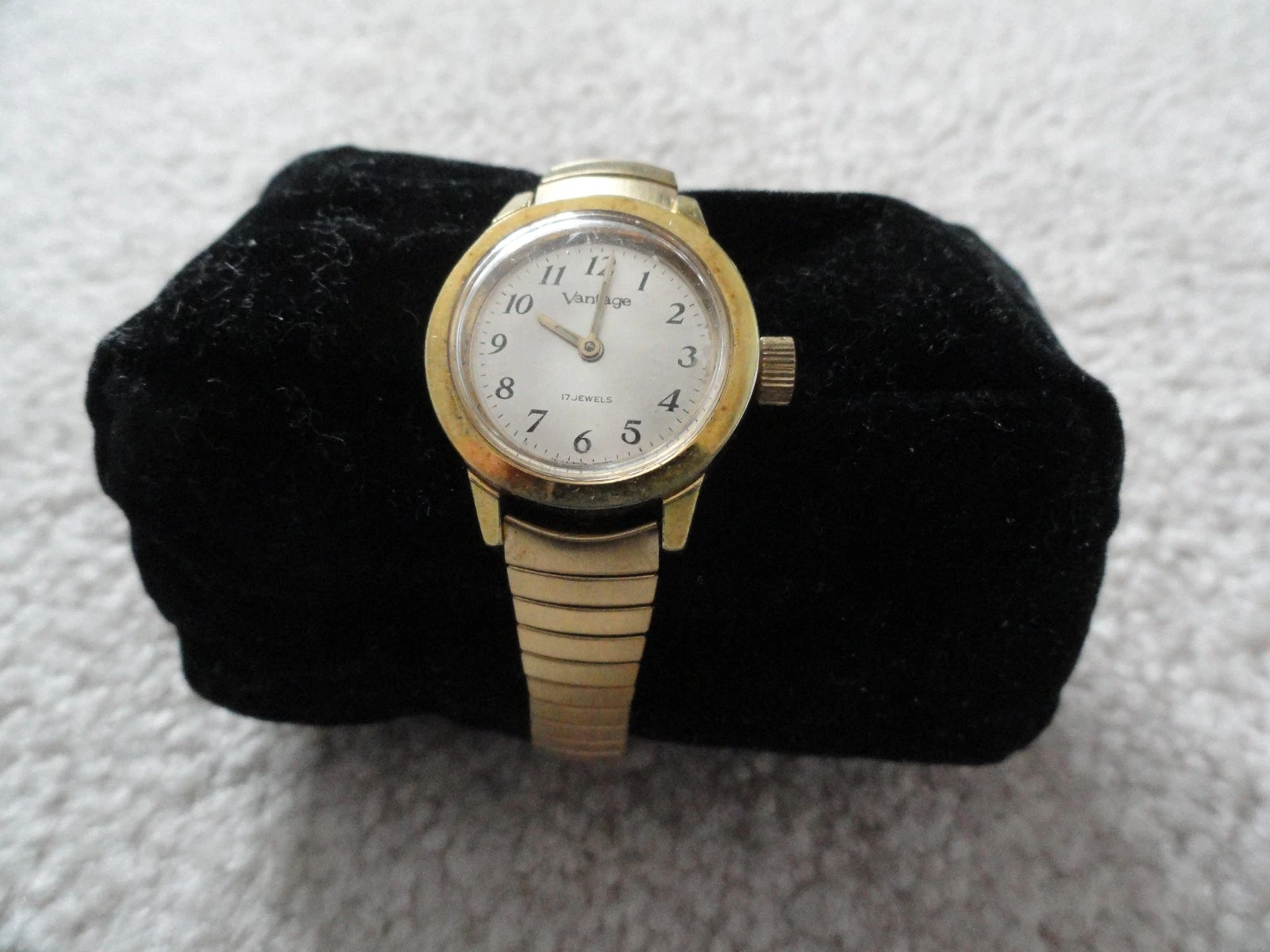 Vantage 17 Jewels Vintage Wind Up Ladies Watch with a Stretch Band
