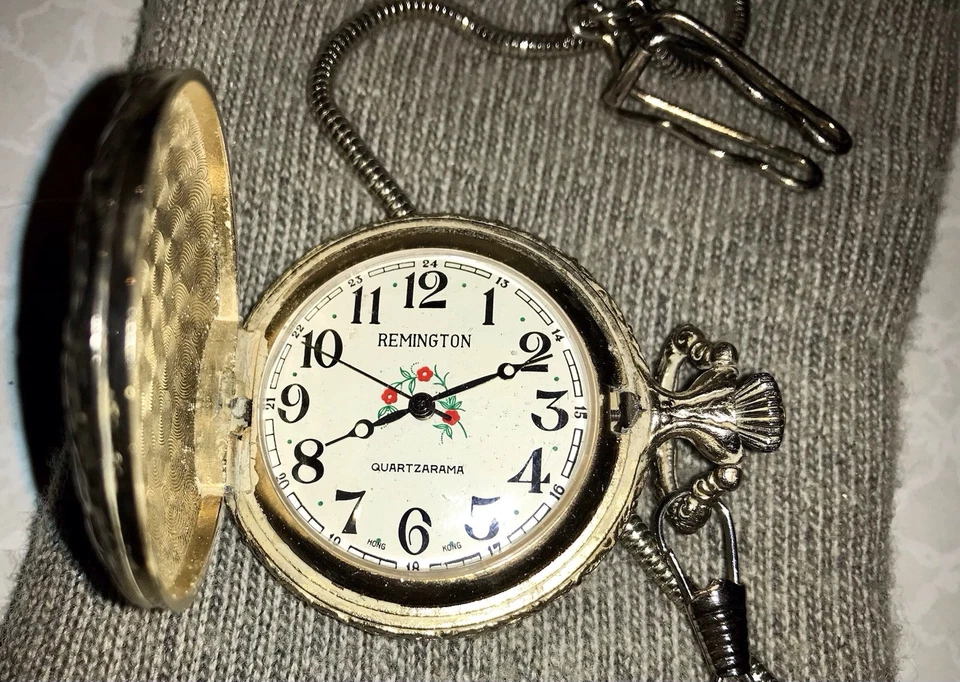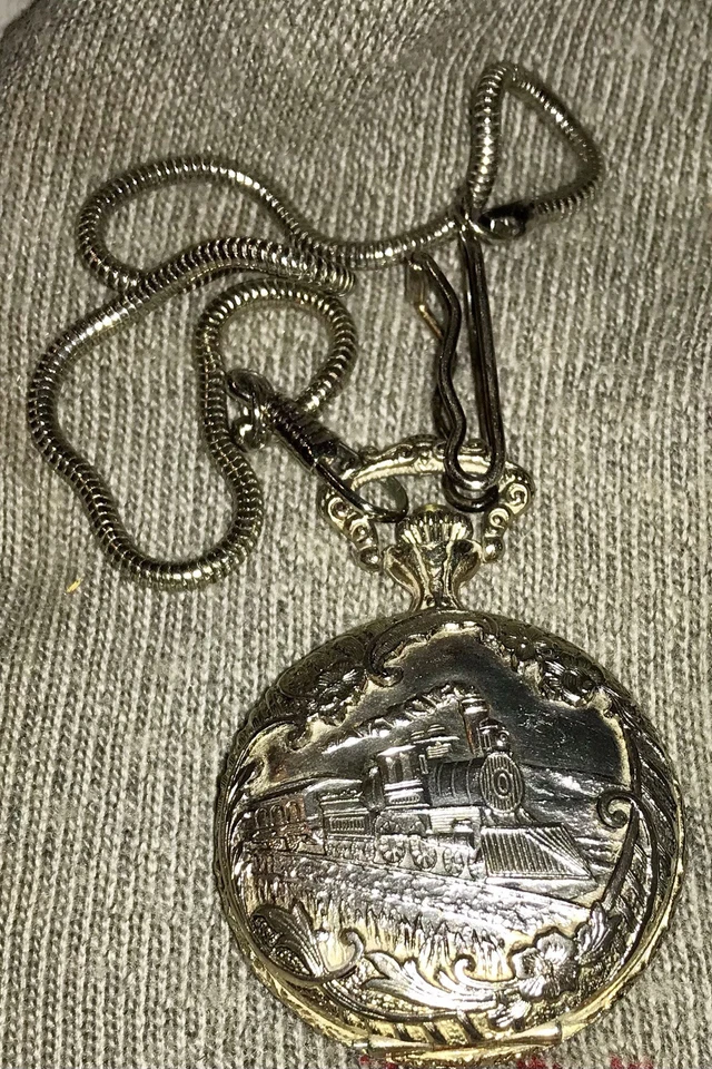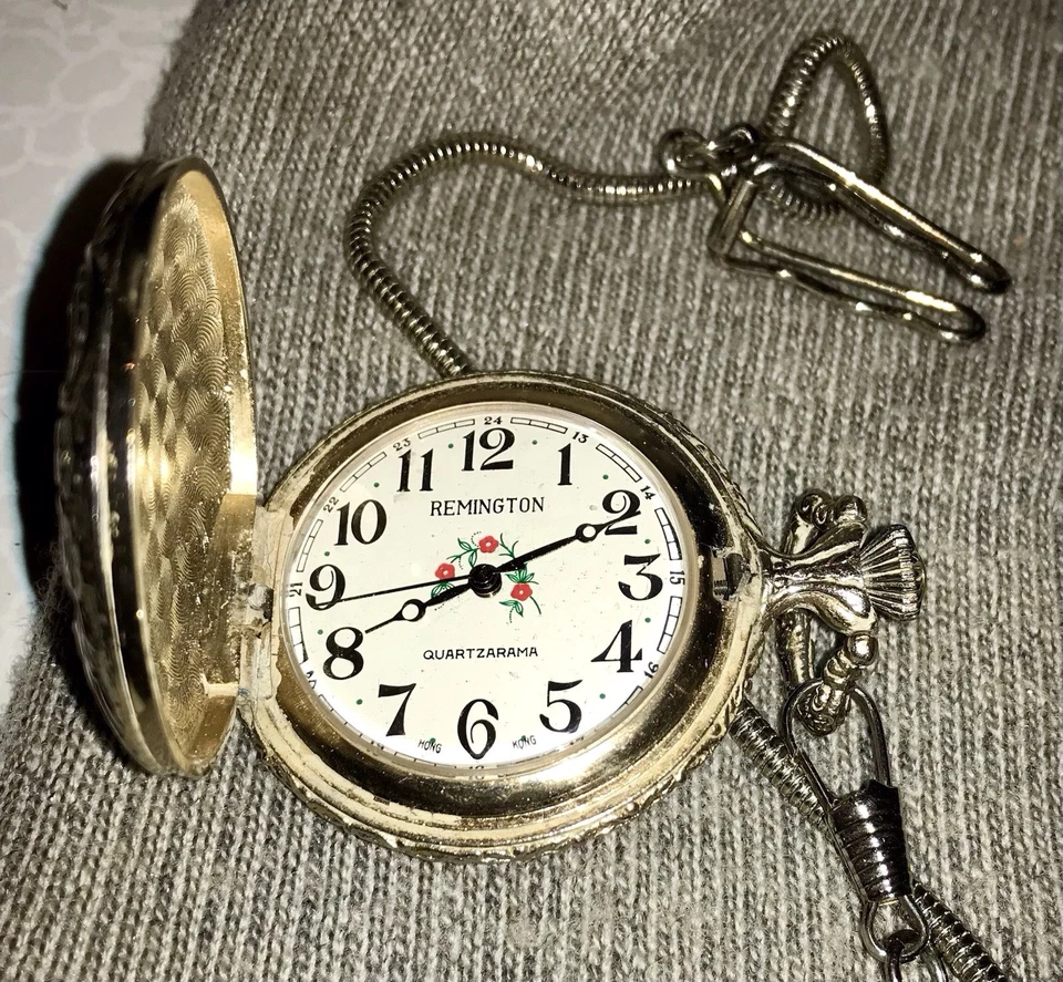 Vintage Remington Quartzarama Pocket Watch Locomotive WindUp Runs Sporadically