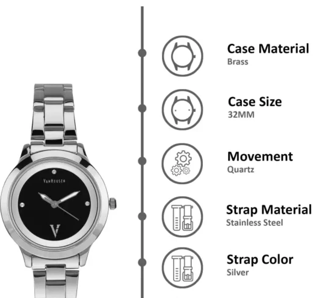 Analog Watch For Women Silver & Black Casual VAN HEUSEN Wrist Watch
