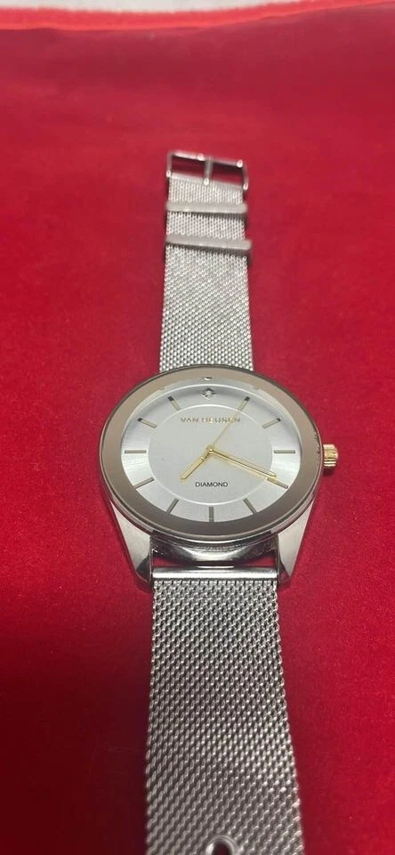 Van Heusen Silver Tone 44mm Men's Quartz Watch Steel Mesh Bracelet VAN8944RO