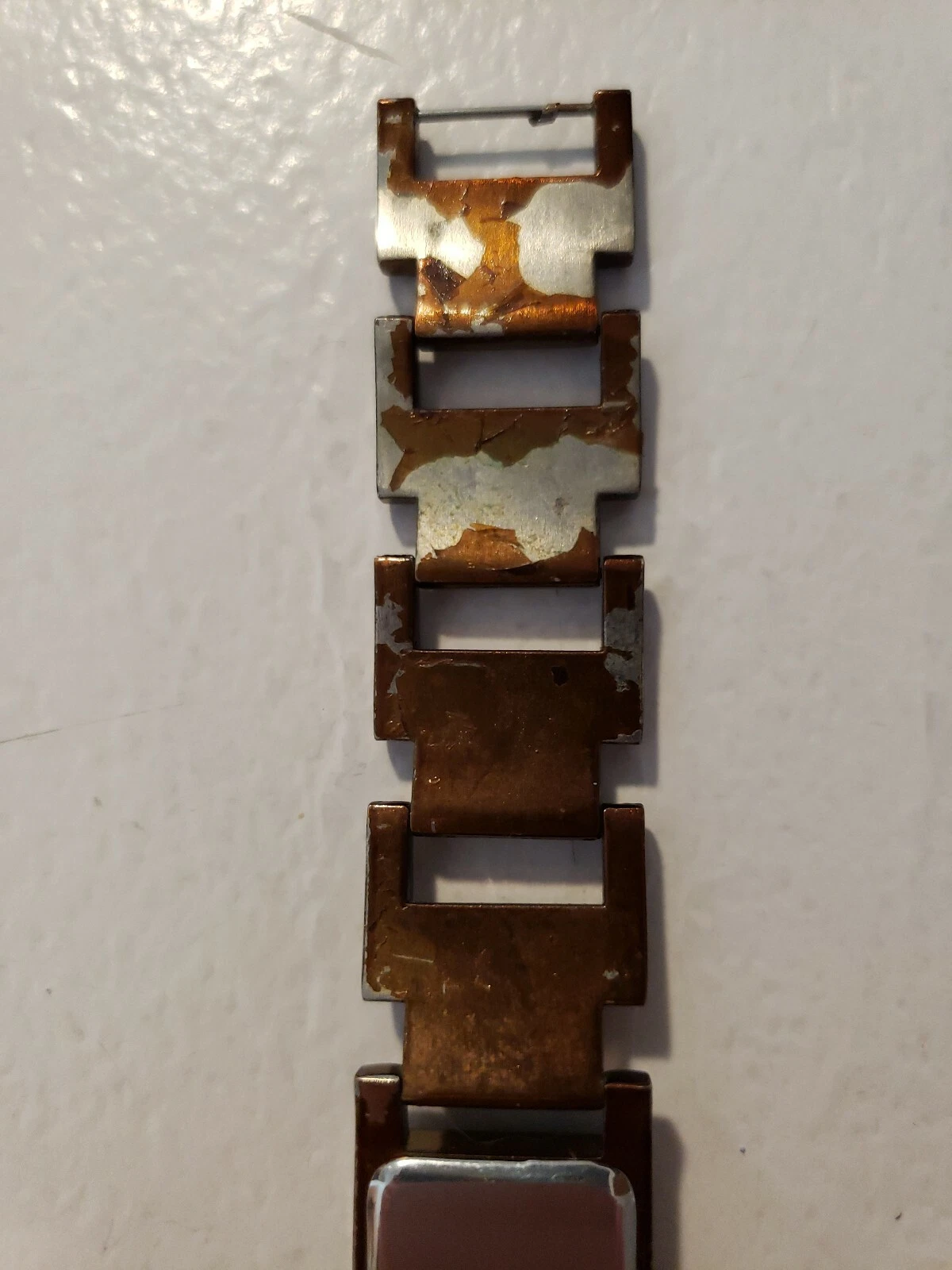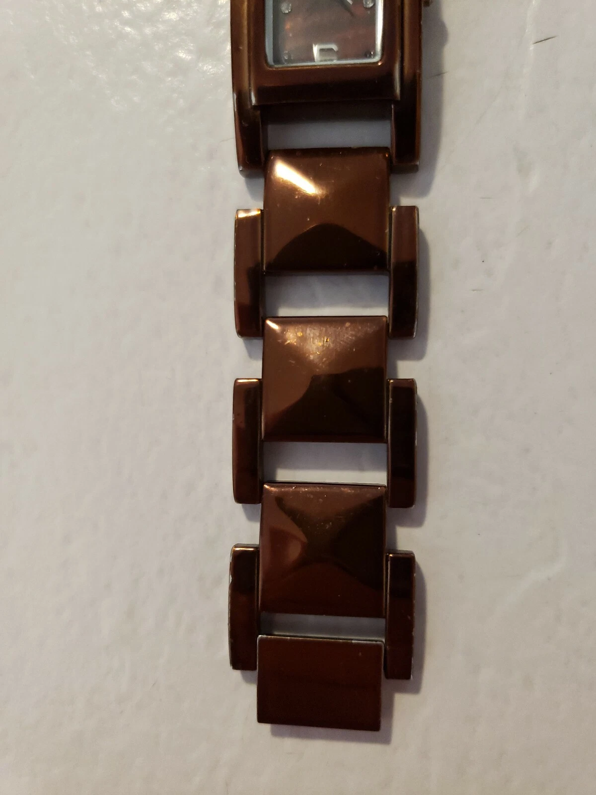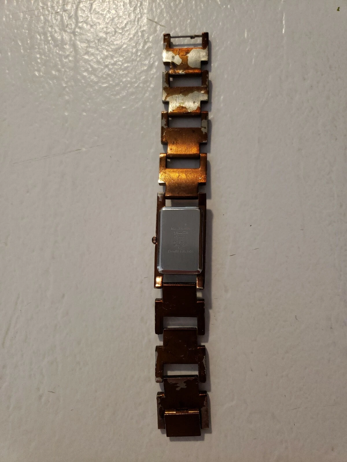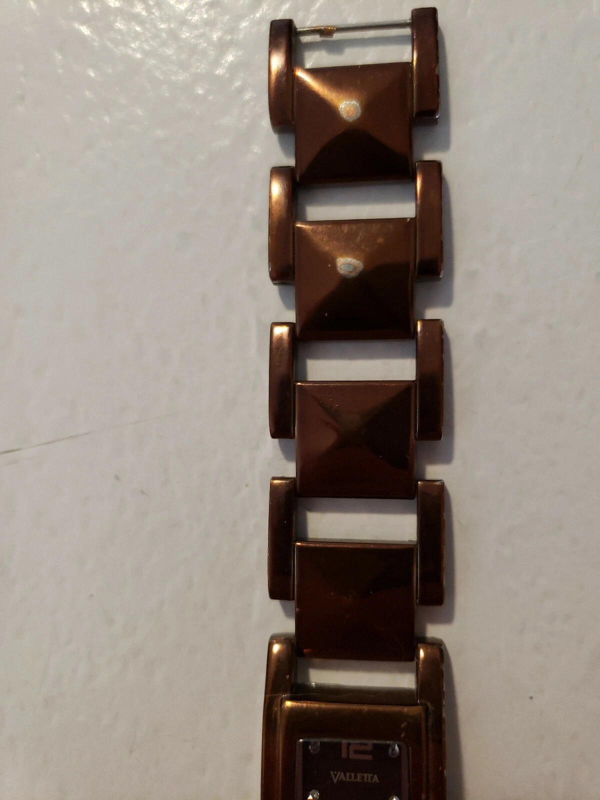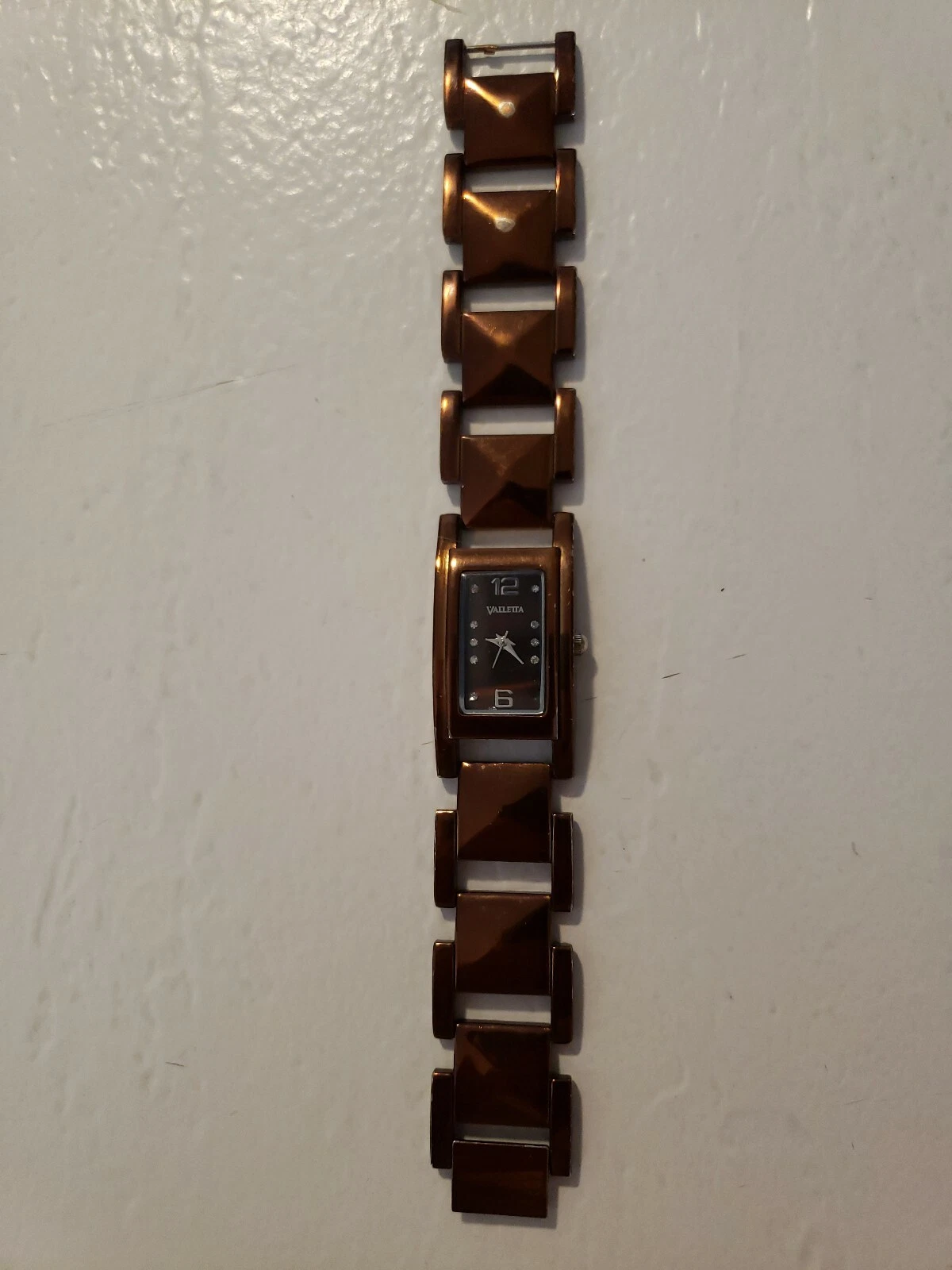 VALLETTA Analog Watch w/Coppertone Case, Gems & Link Bracelet Band, NEW BATTERY