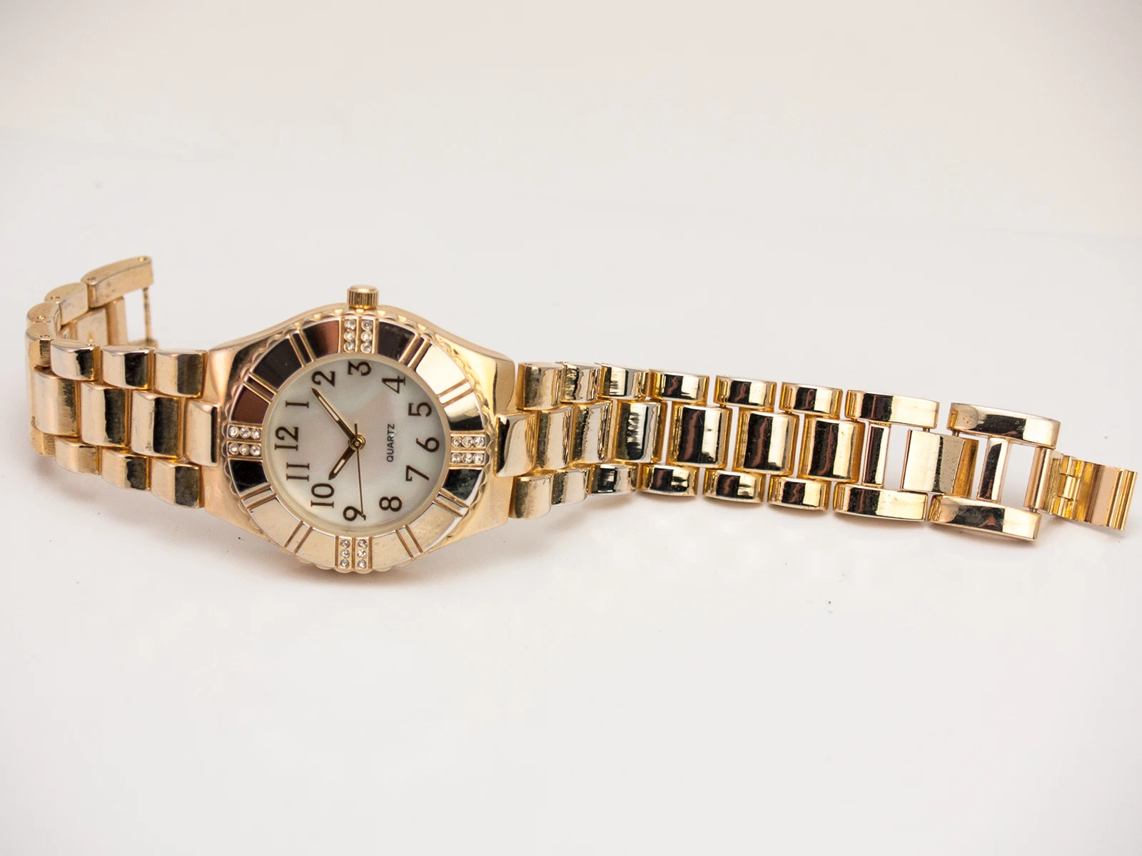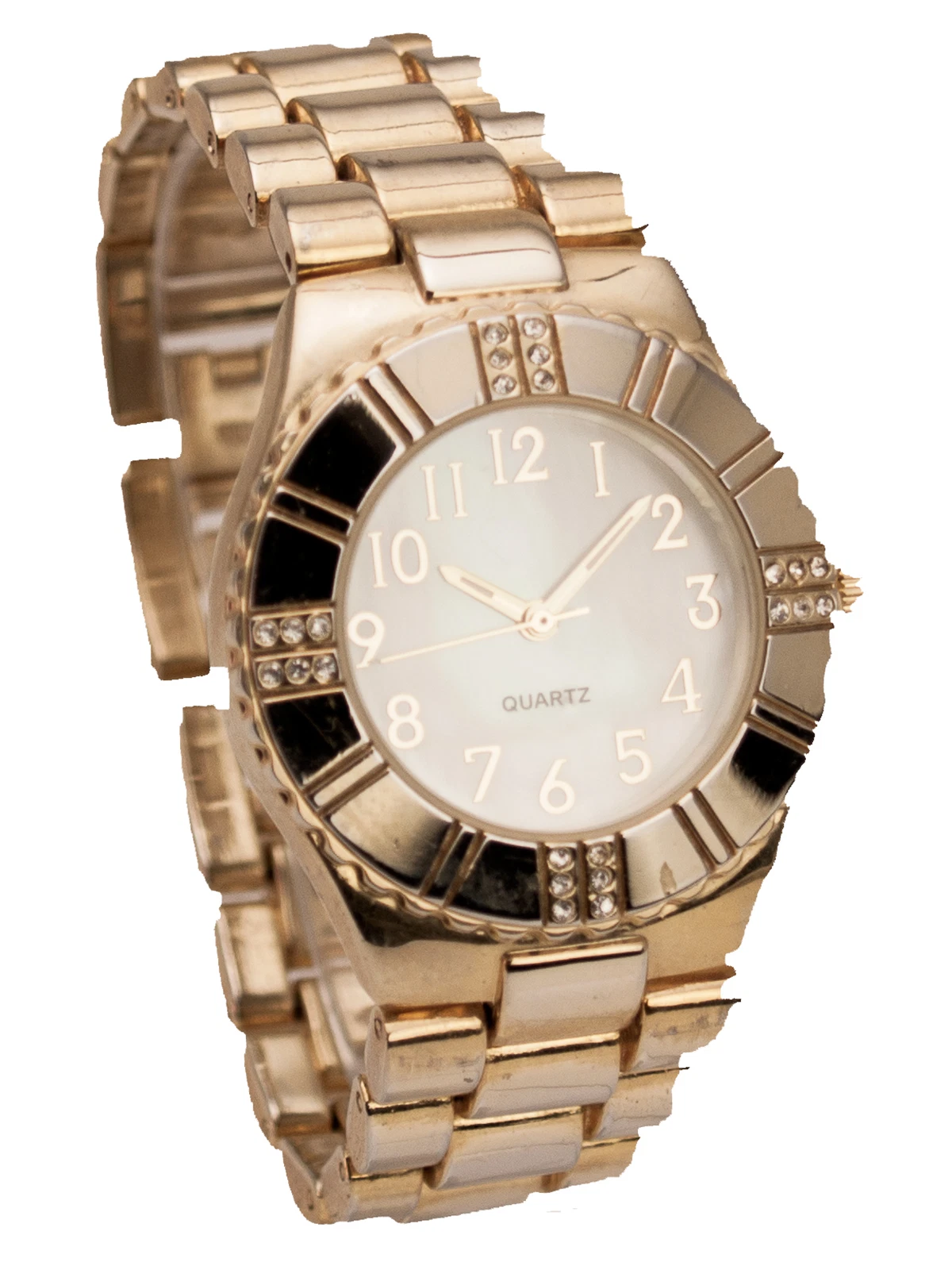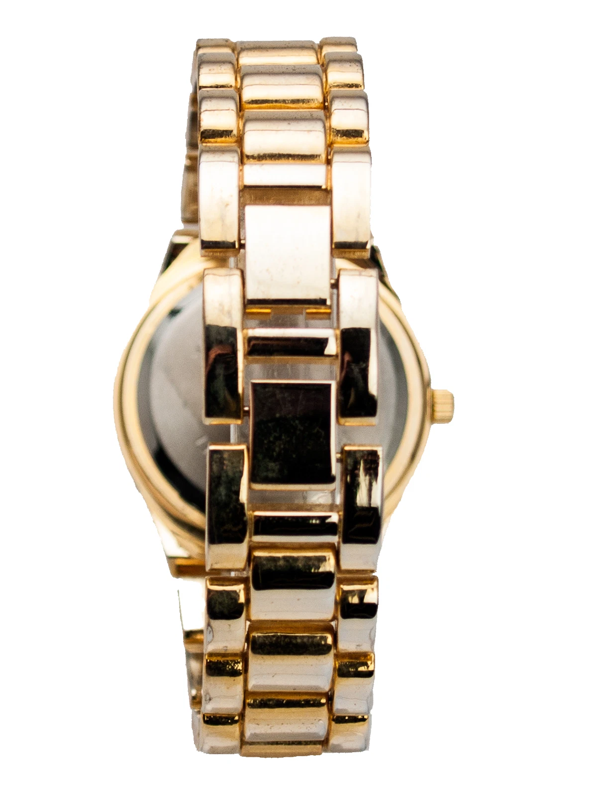 WOMEN'S GOLD FINISH ROUND CASE ADJUSTABLE LINKS ANALOG QUARTZ WATCH