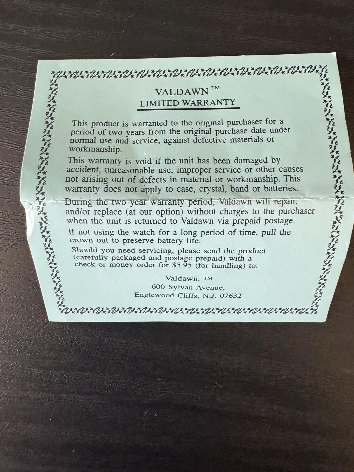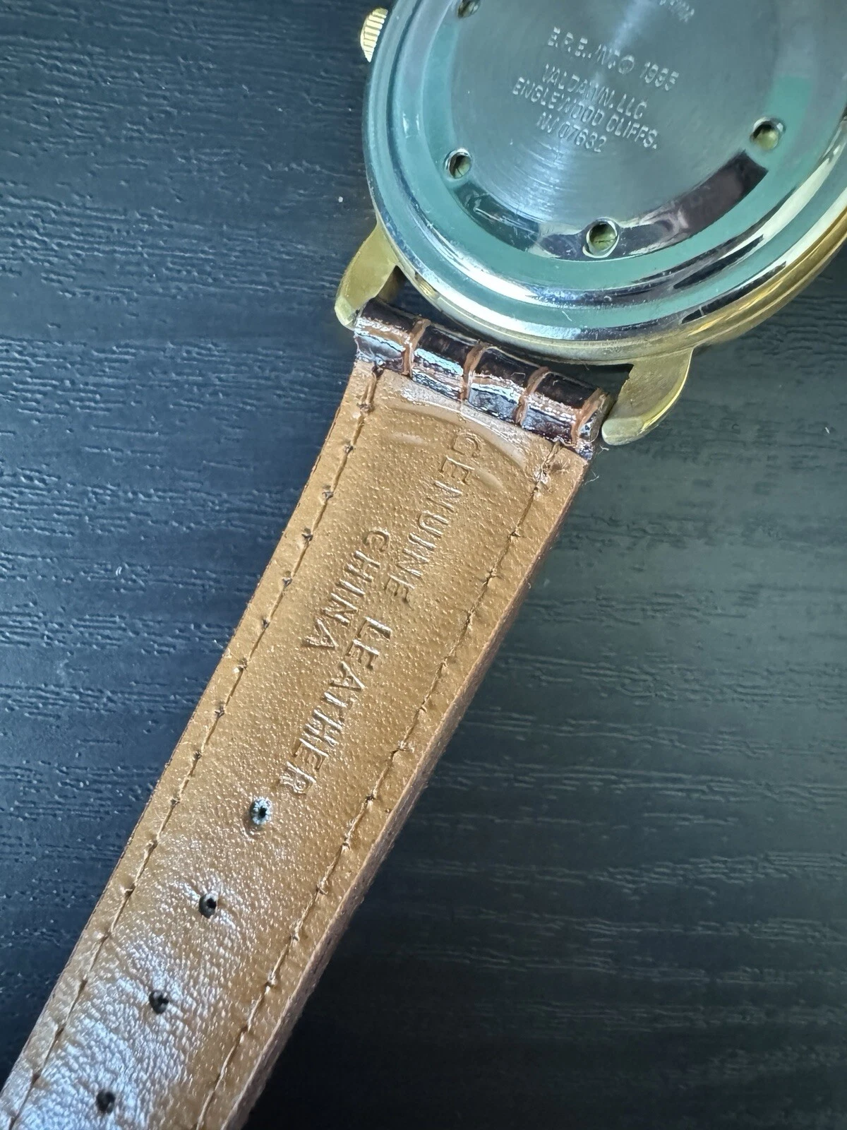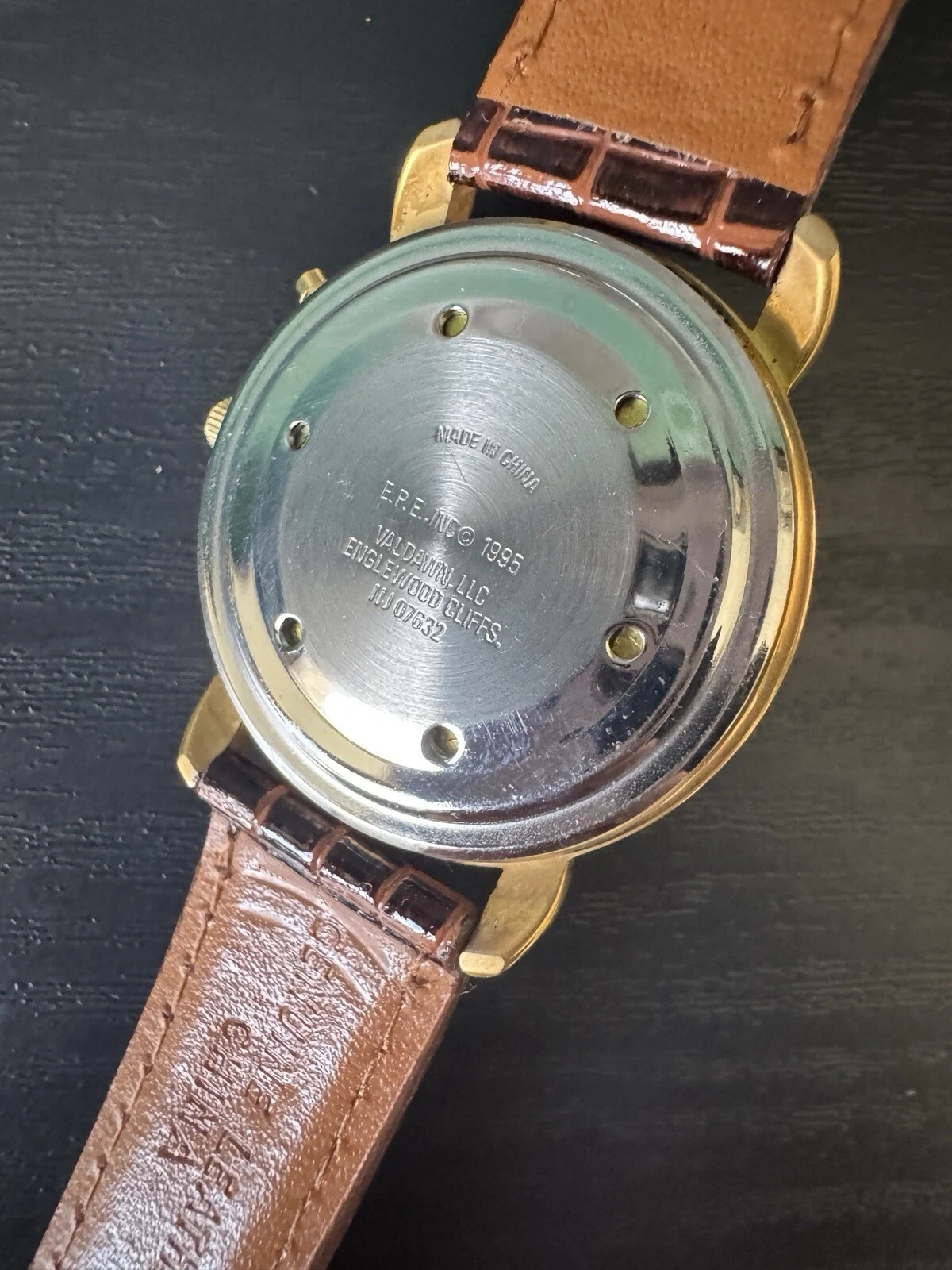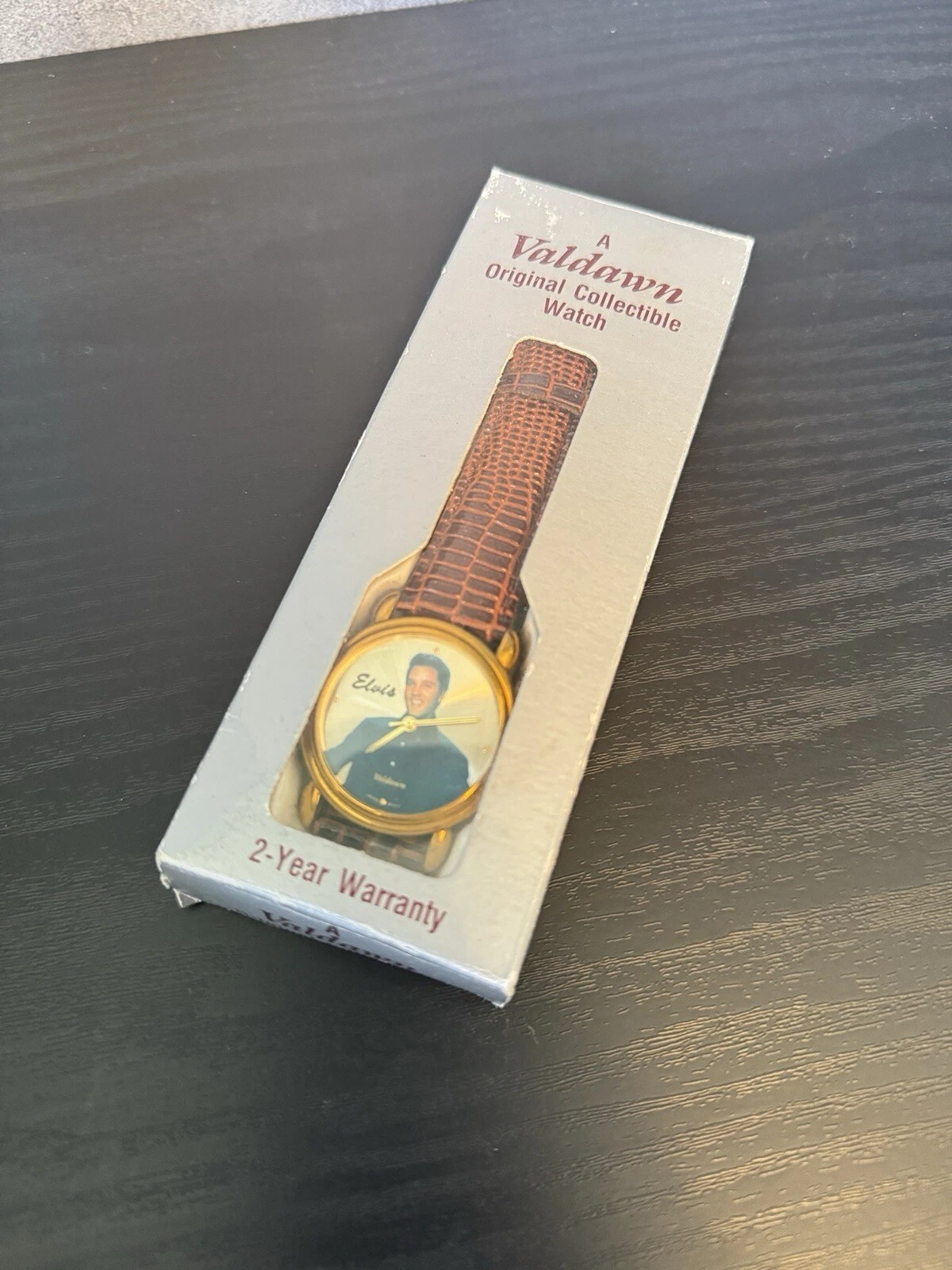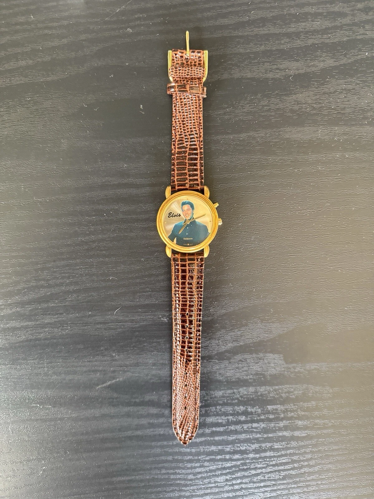 Valdawn ELVIS PRESLEY Dial Watch w/Guitar Seconds hand 1995 Brown lizard Leather