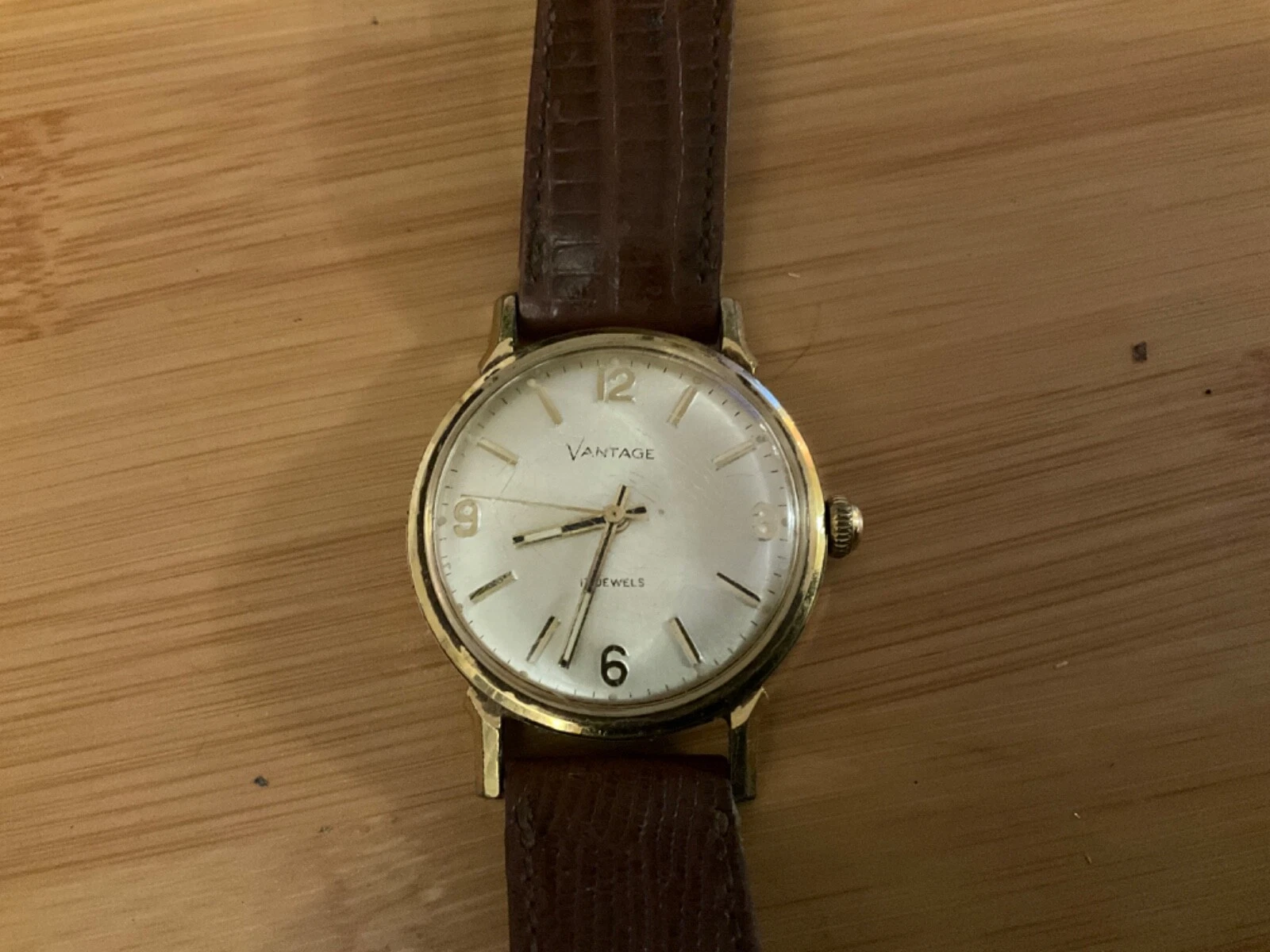 Vtg Vantage by Hamilton Watch Men G silver Tone 17 Jewels Leather Running