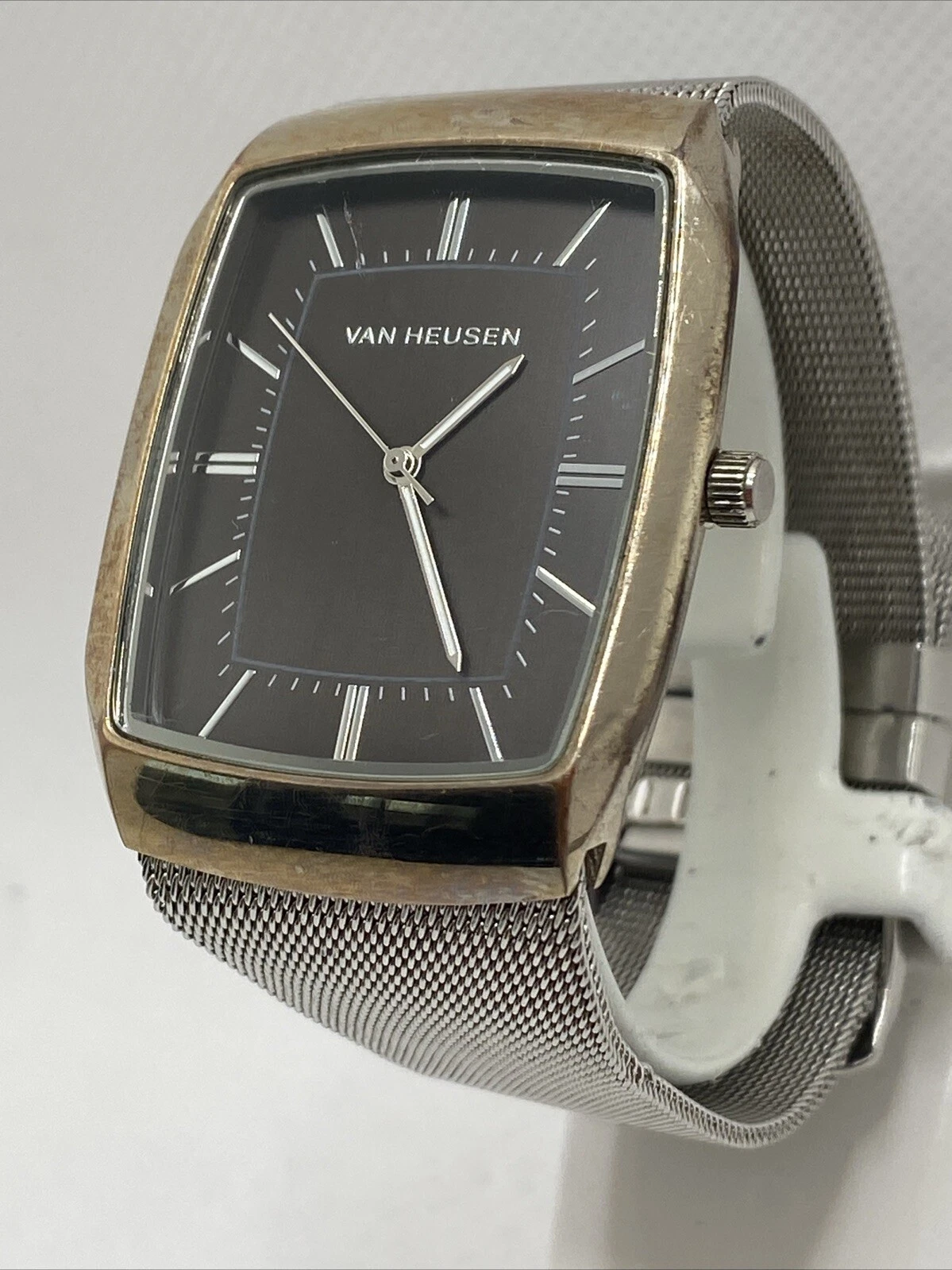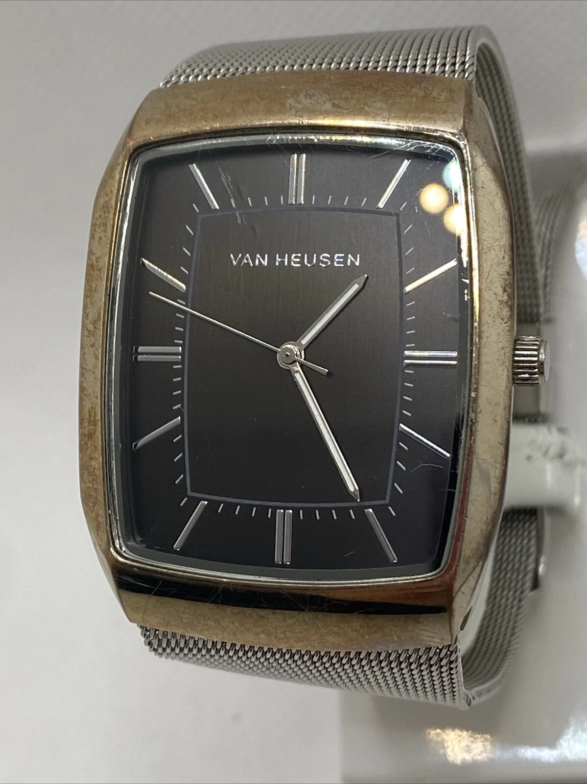 Van Heusen Men's Silver Watch Mens Fashion Watch Works New Battery!