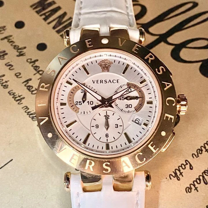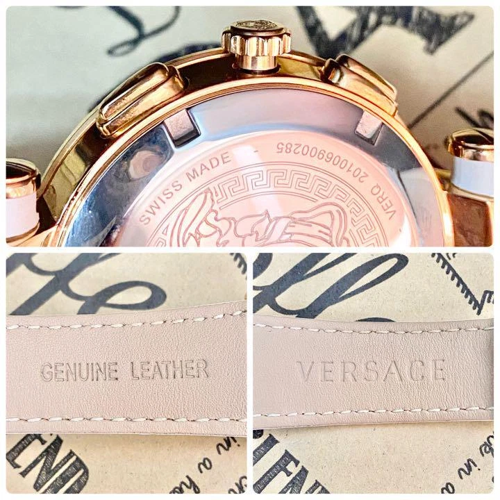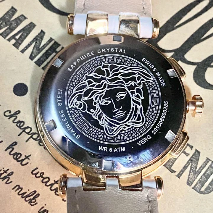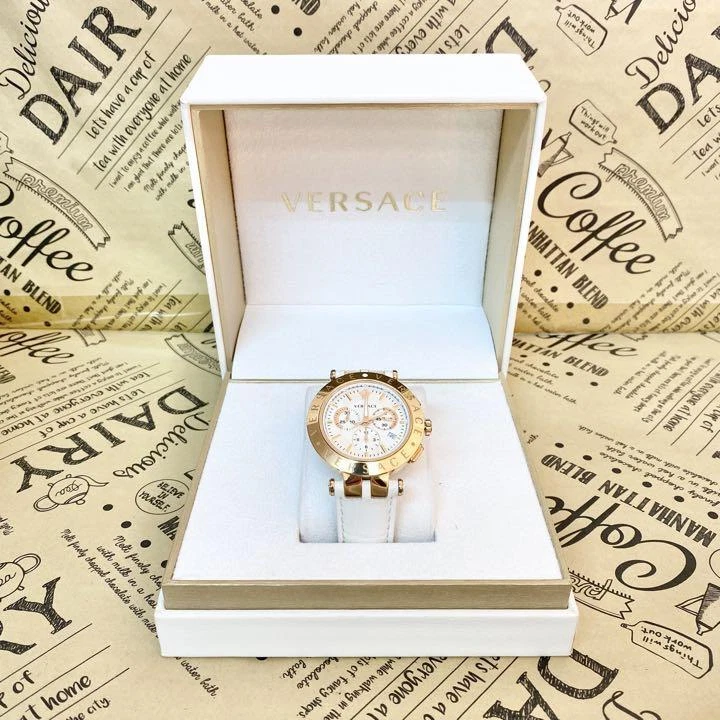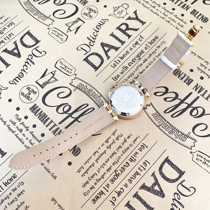 Versace Watch Verq-00200 Gold White Leather H689