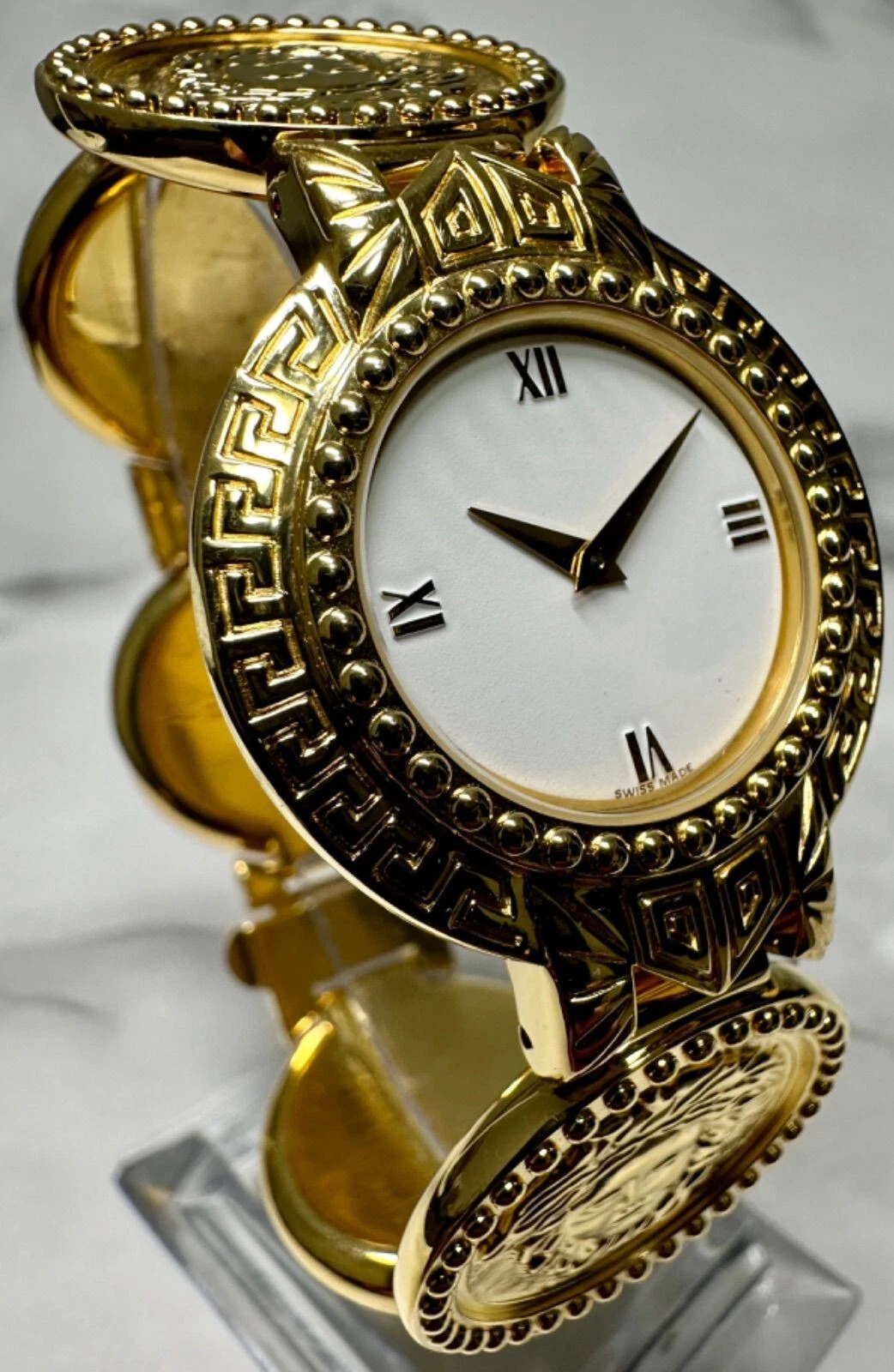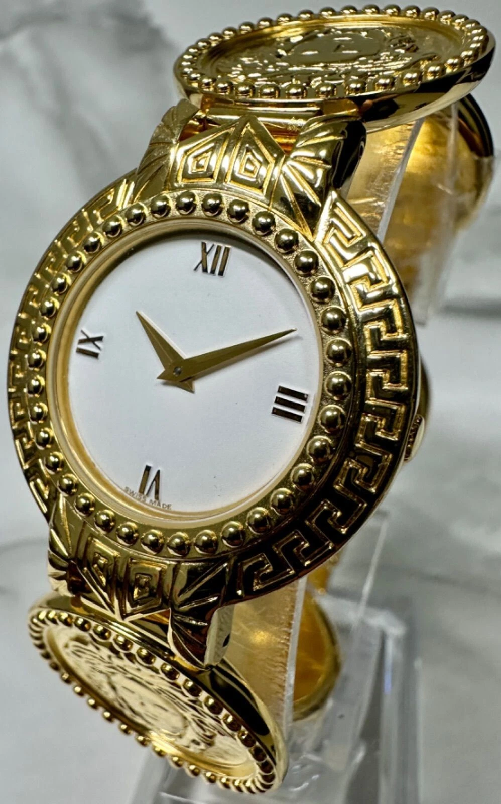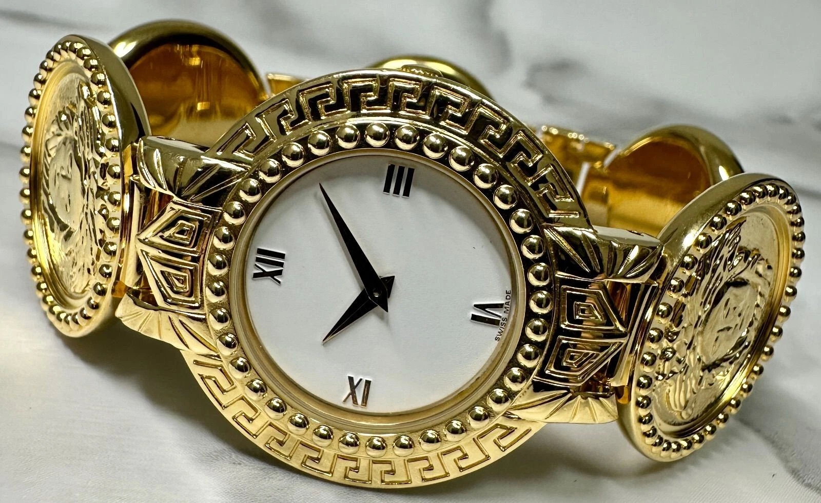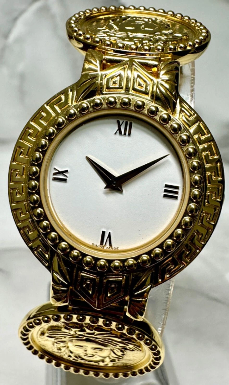 Authentic Gianni Versace Vintage Womens Wristwatch White GP
