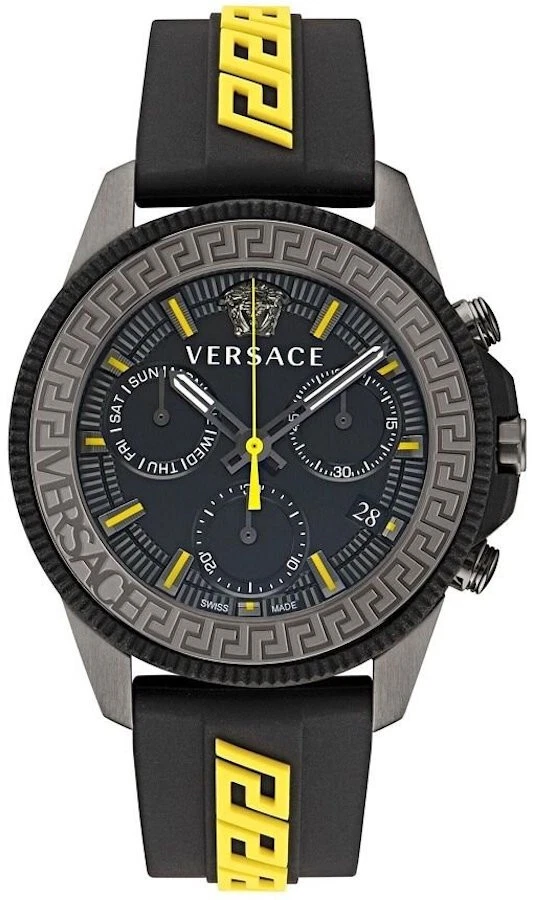 Versace Mens IP Gunmetal 45 mm Greca Action Chrono Strap Watch VE3J00322
