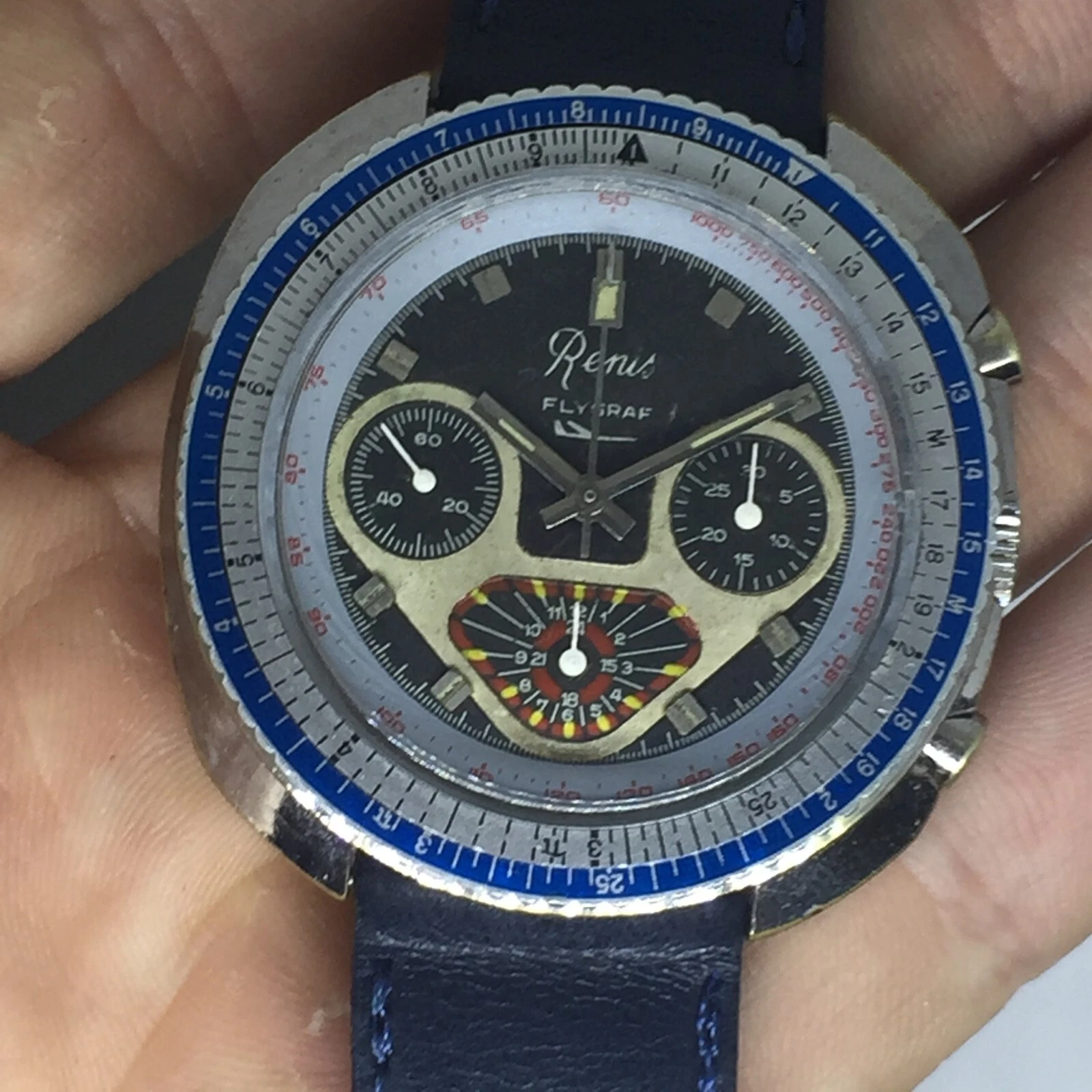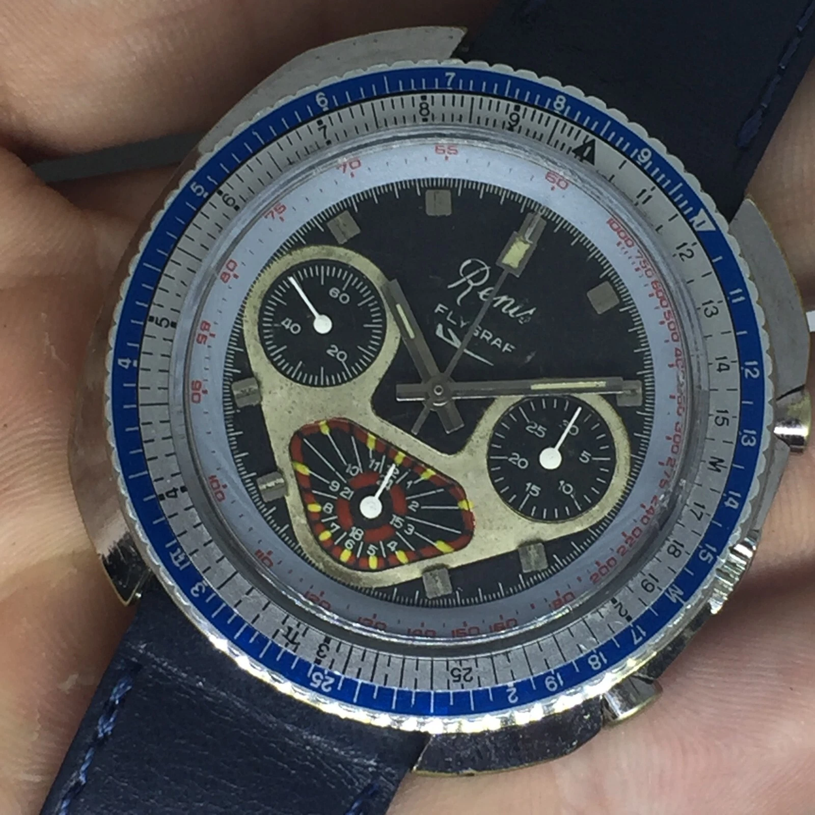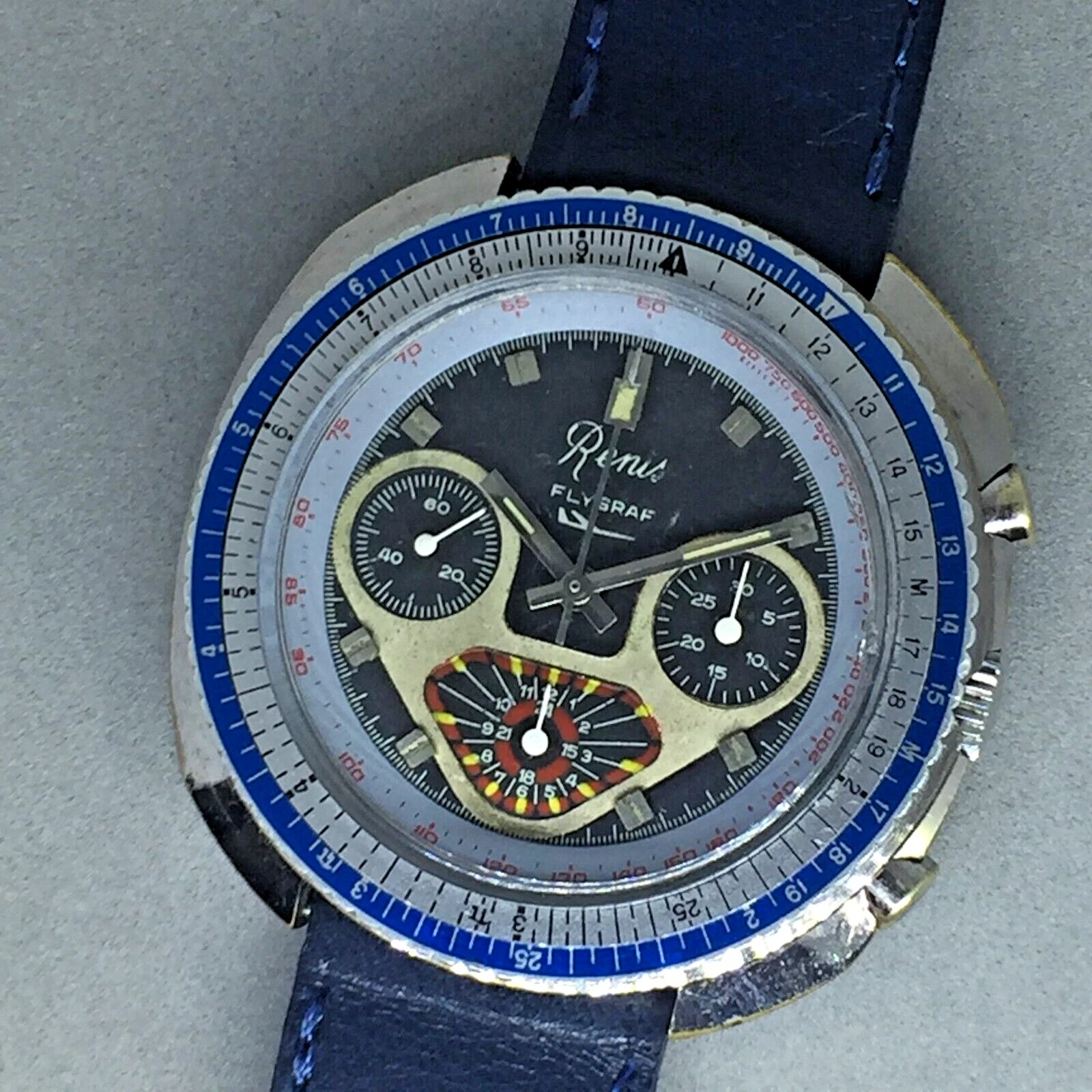 RARE VINTAGE RENIS FLYGRAF CHRONOGRAPH VALJOUX 7736 MANUAL WIND MOVEMENT