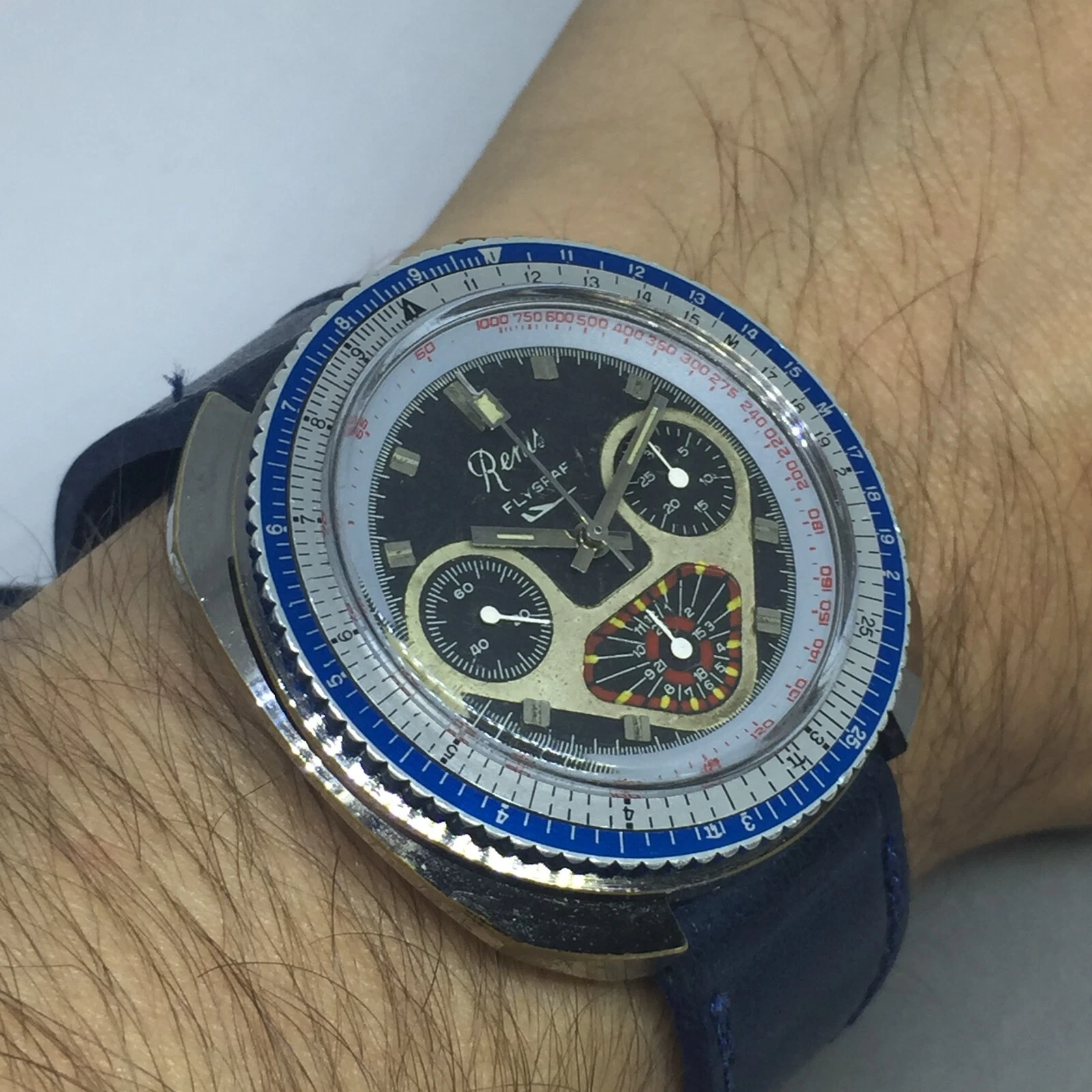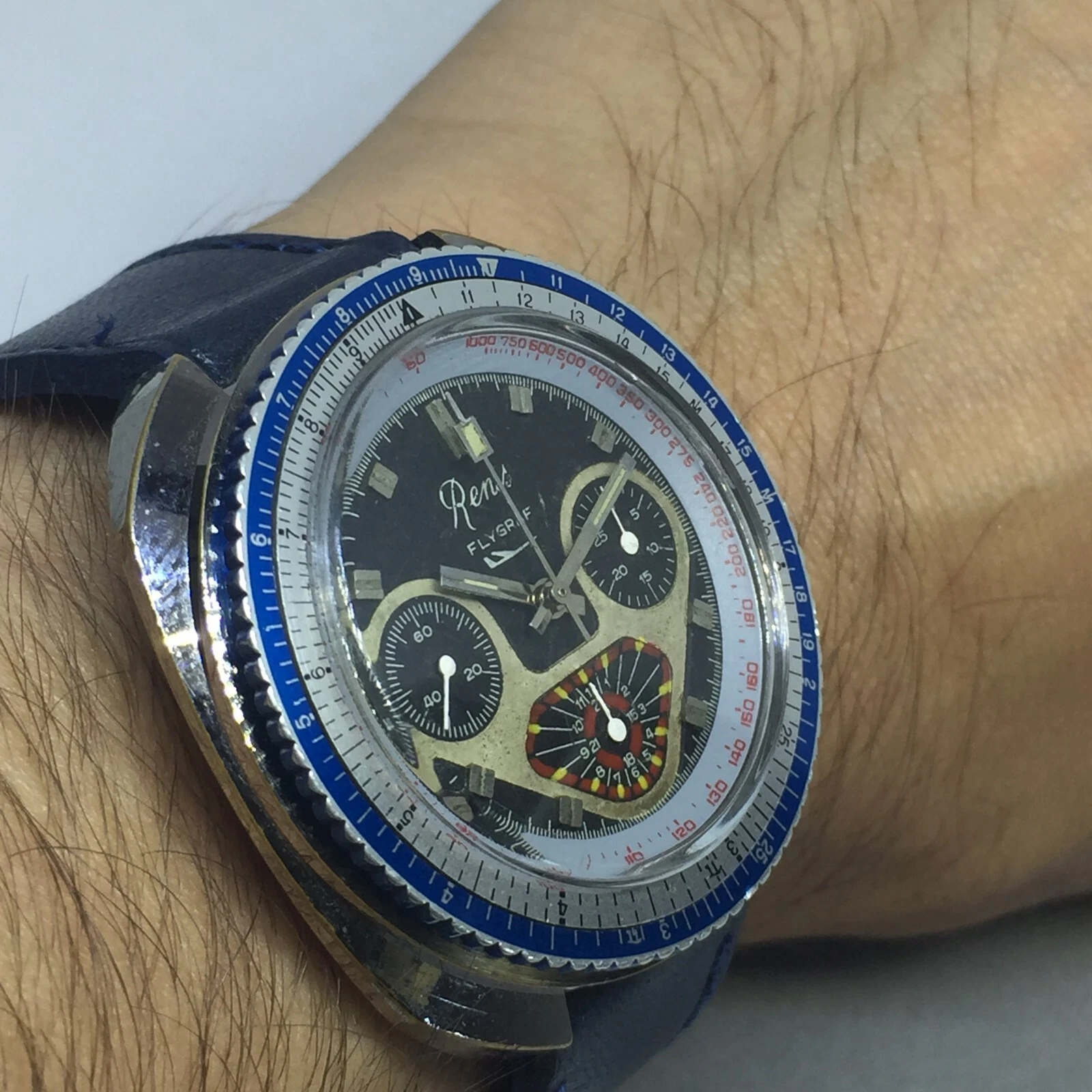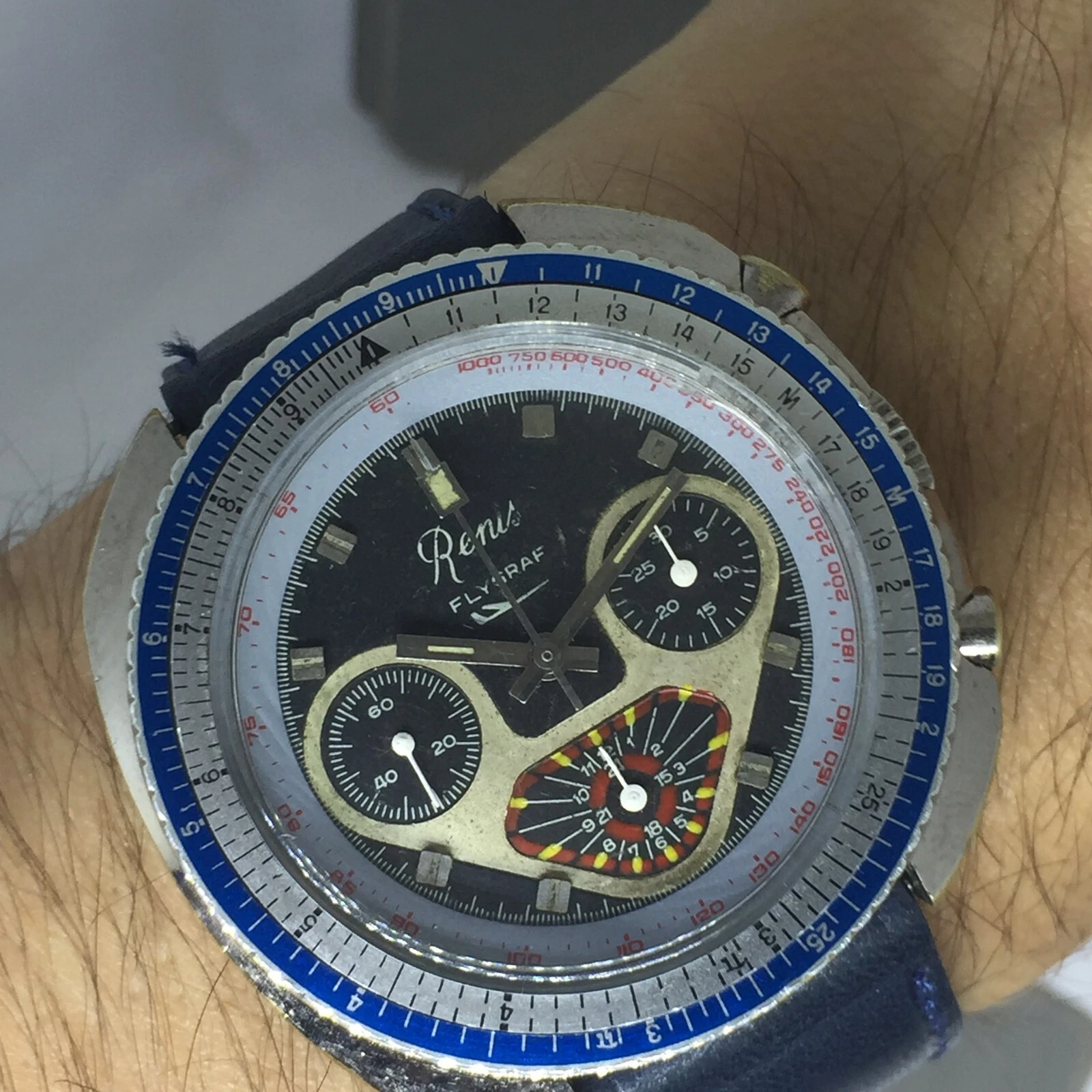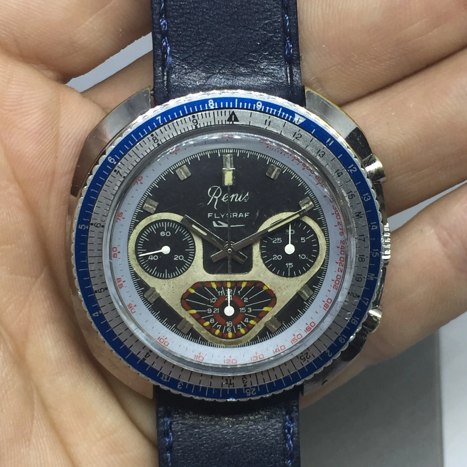RARE VINTAGE RENIS FLYGRAF CHRONOGRAPH VALJOUX 7736 MANUAL WIND MOVEMENT