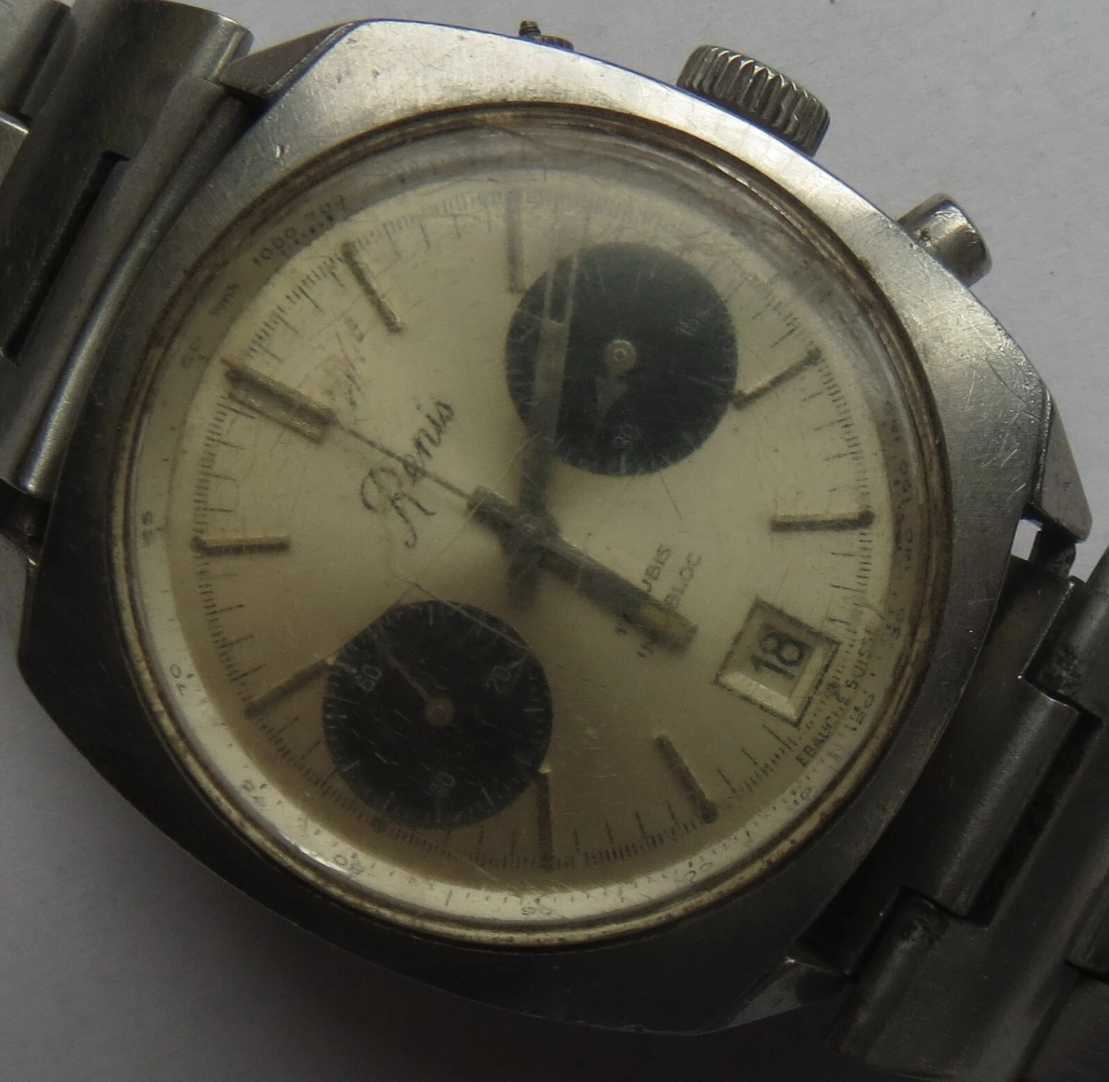 Valjoux 7734 "Renis" Chronograph mens steel case load manual 38 mm. in diameter