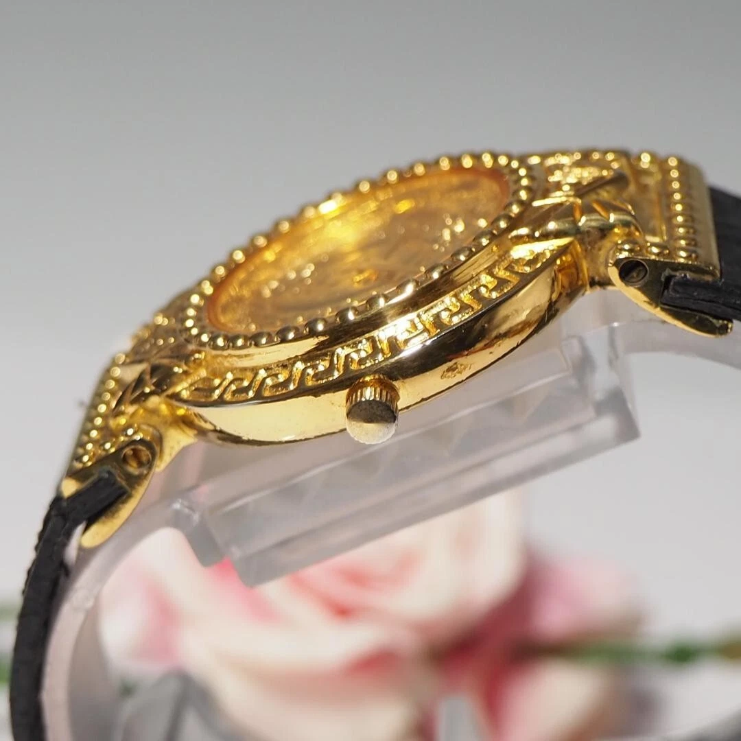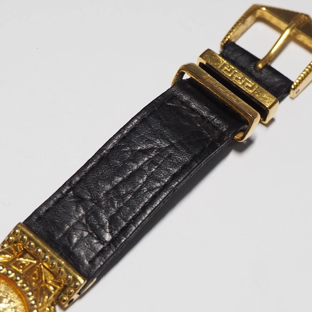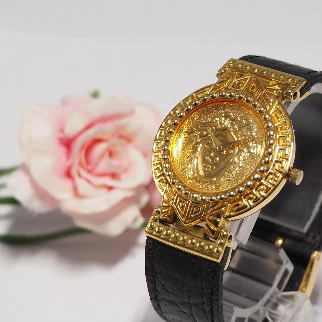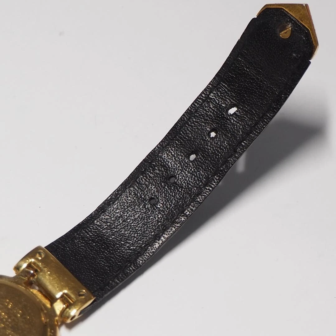 Authentic Gianni Versace Vintage Womens Wristwatch Quartz Gold Stainless Leather