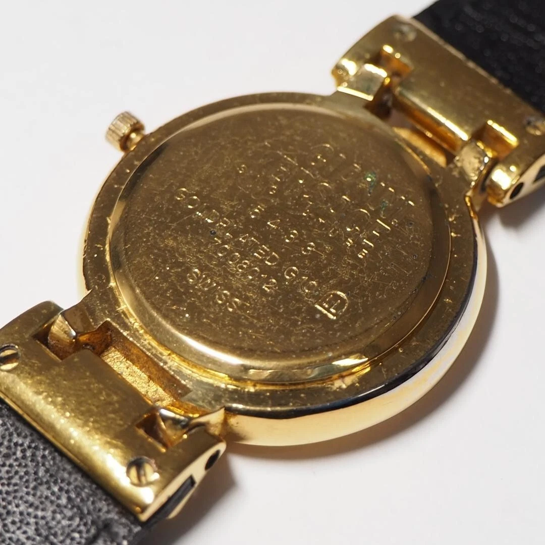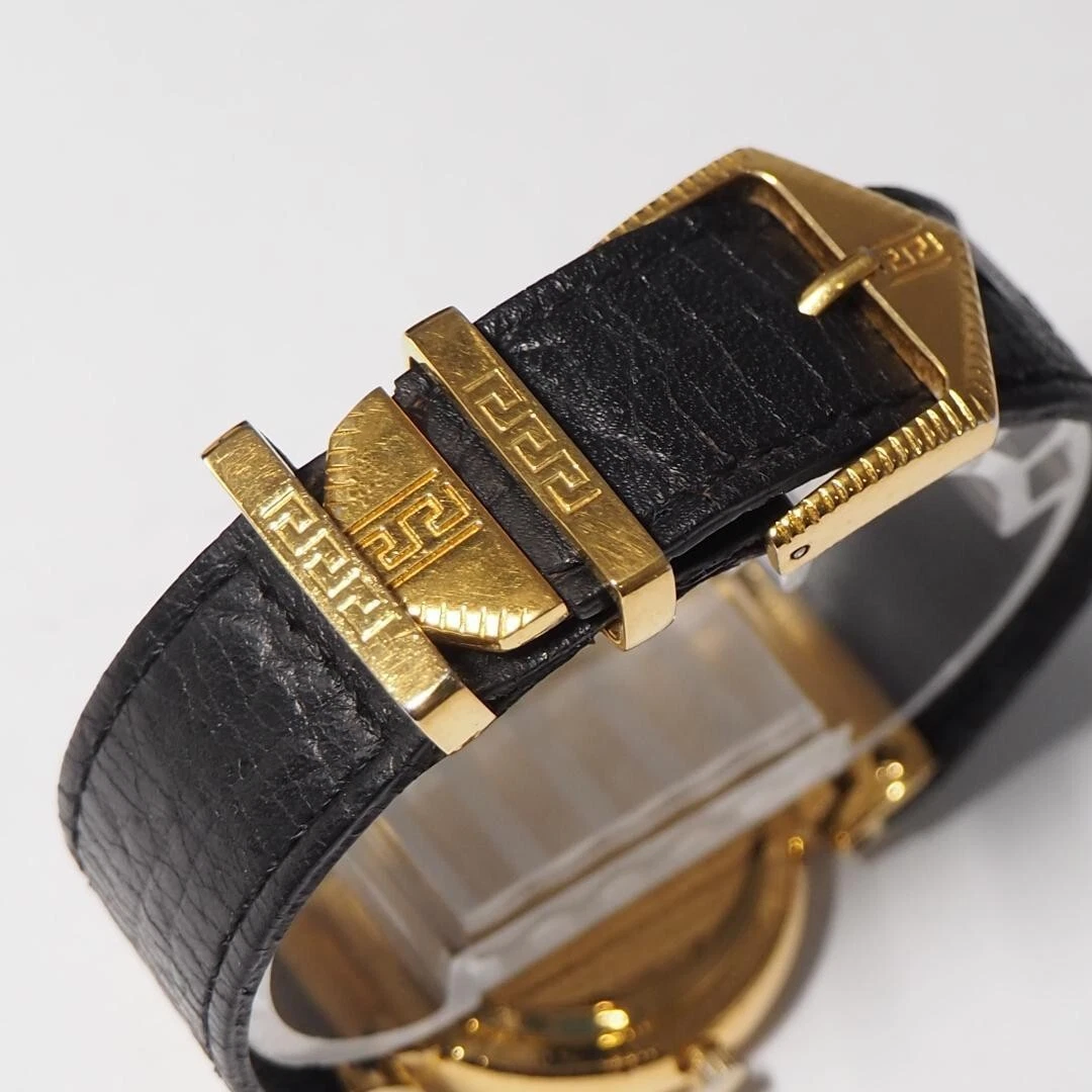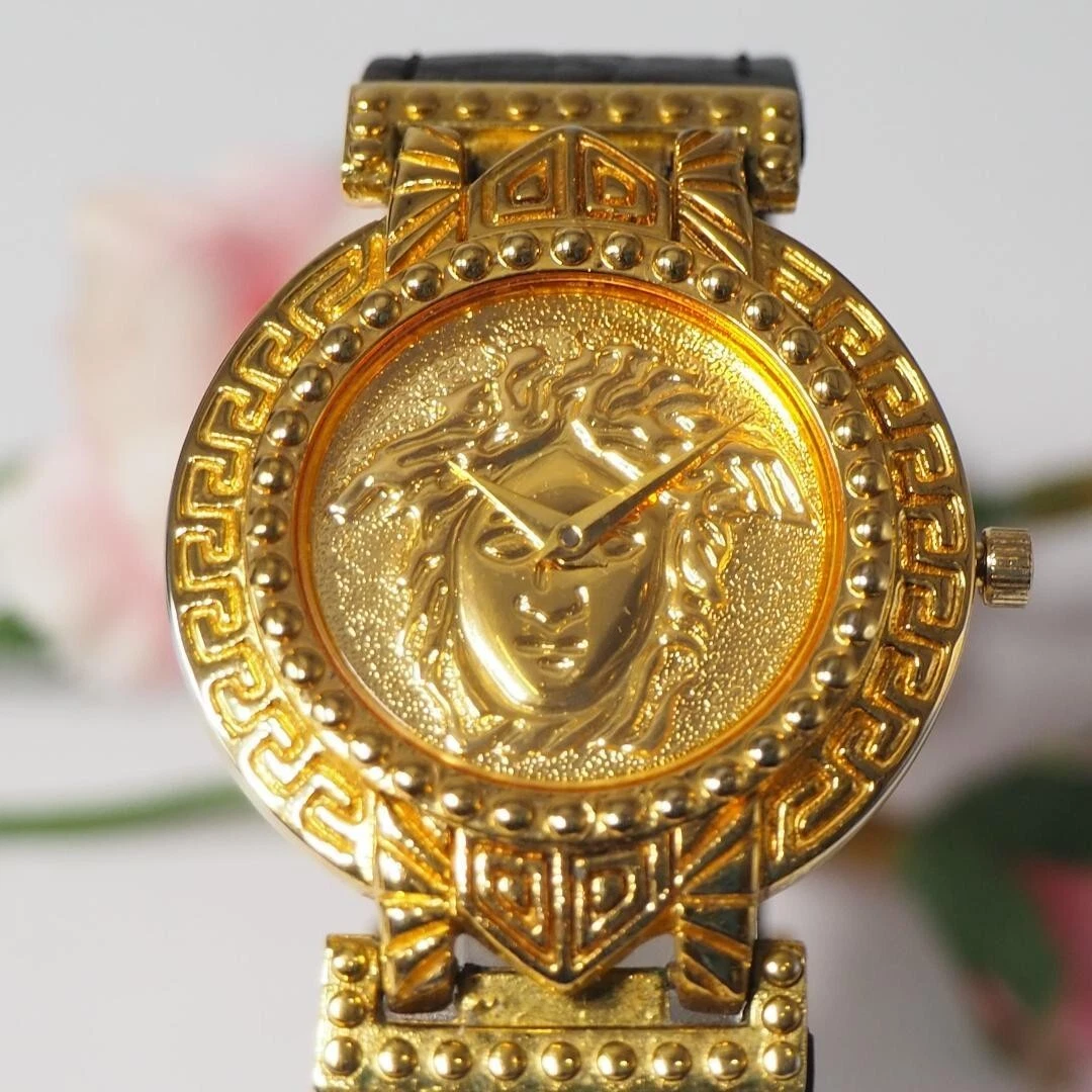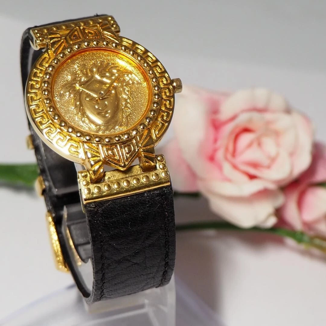Authentic Gianni Versace Vintage Womens Wristwatch Quartz Gold Stainless Leather