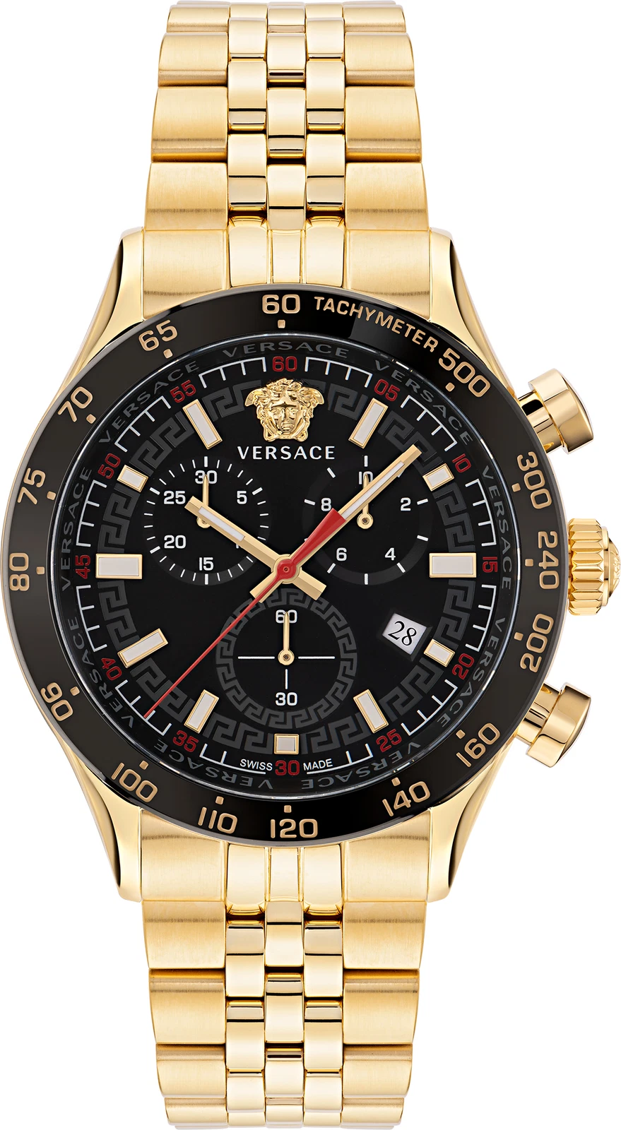 Versace Hellenyium Watch VE2U00622 Chrono Black Sunray Dial Gold Bracelet 44 mm