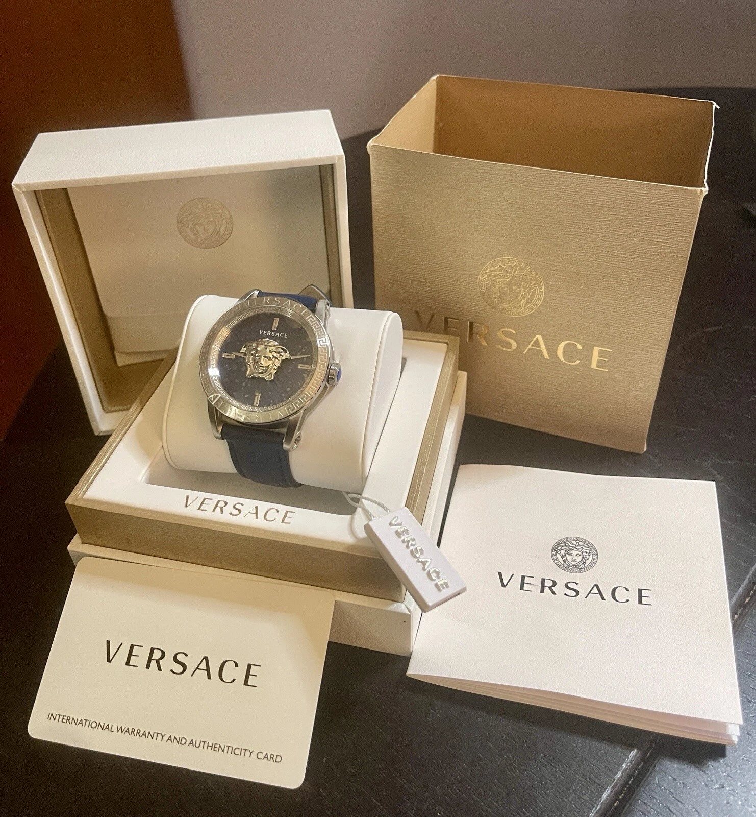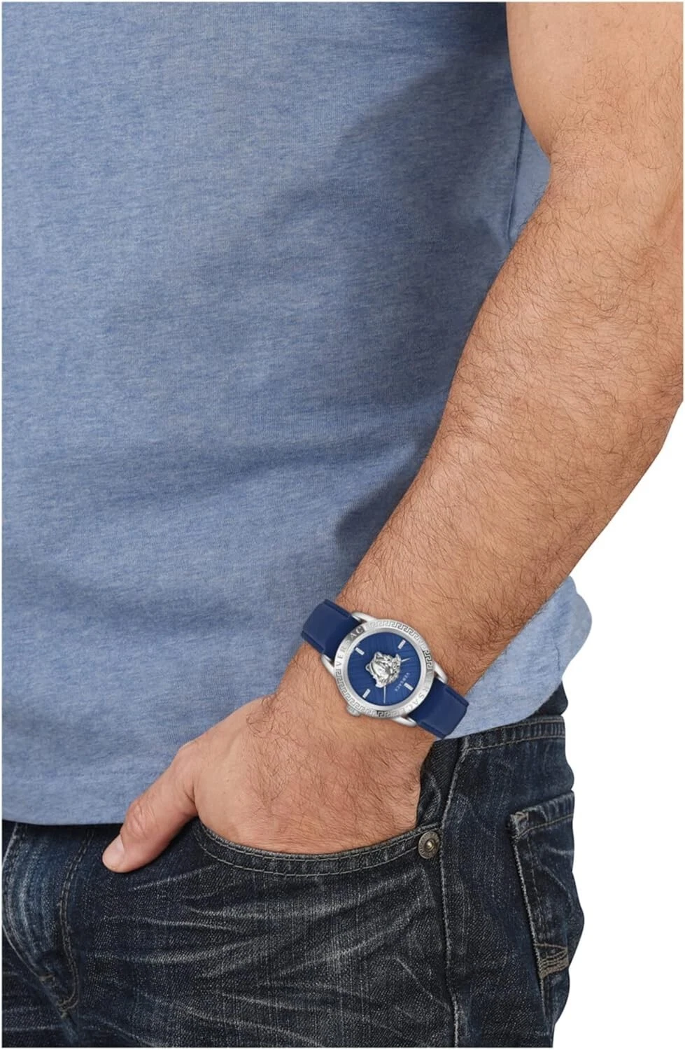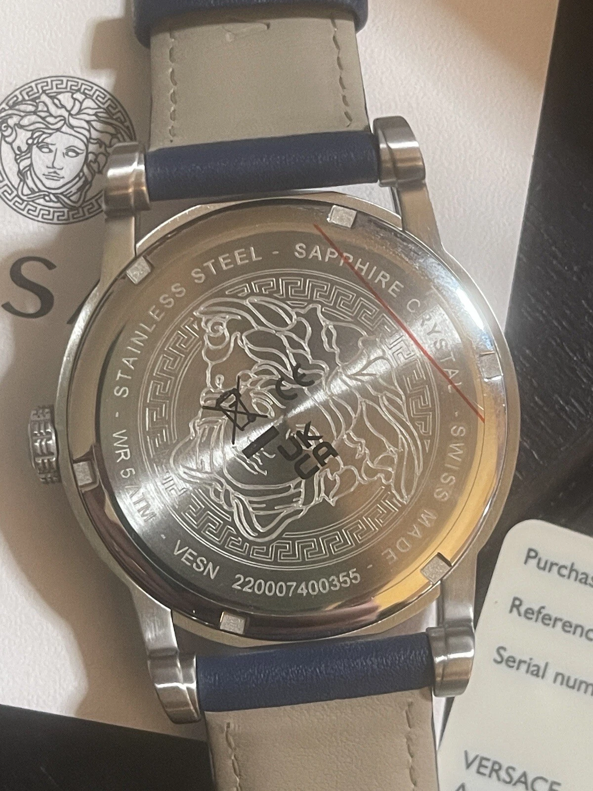 Versace VESN00122 V-Code Palazzo silver blue Leather Men's Watch