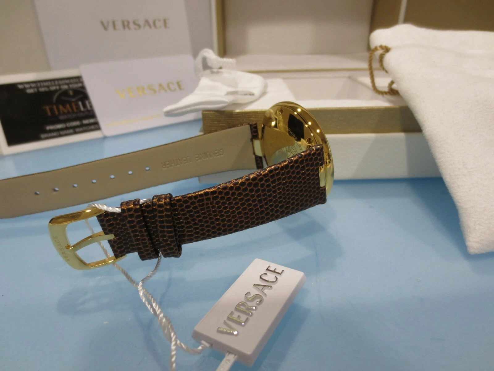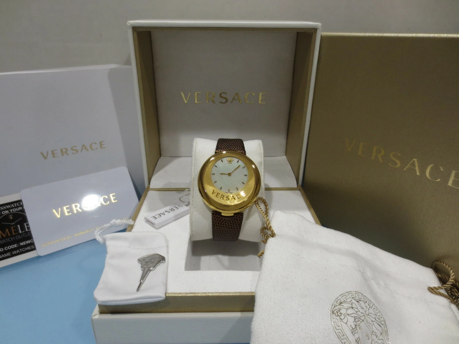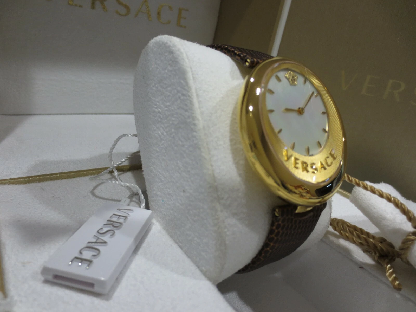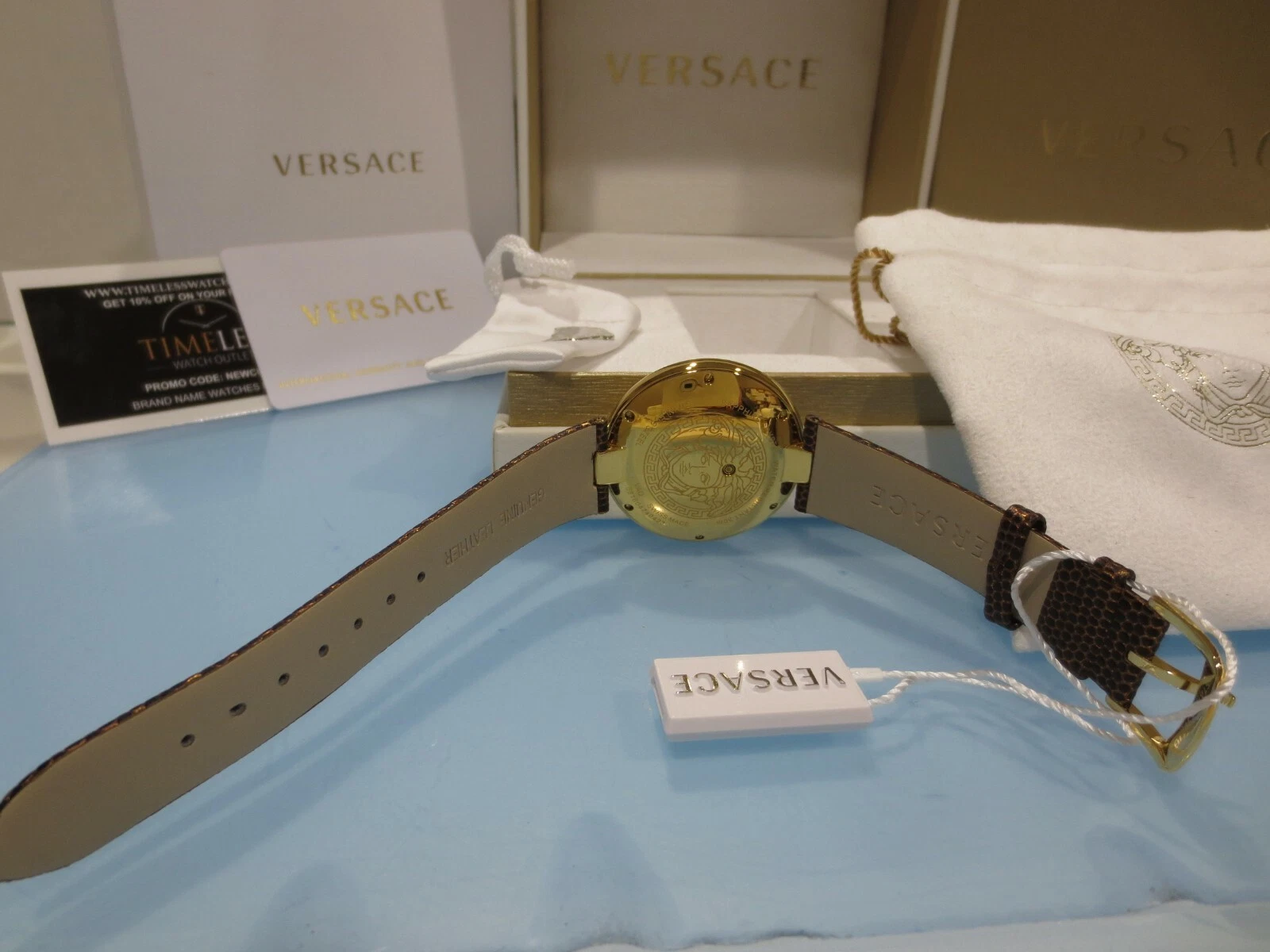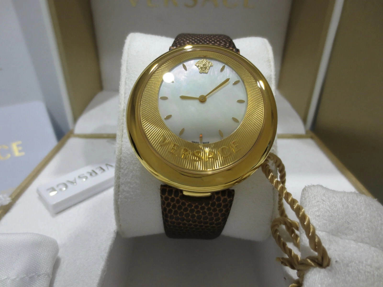 Versace Women's VAQ030016 'PERPETUELLE' Stainless Steel Gold Brown Leather Watch