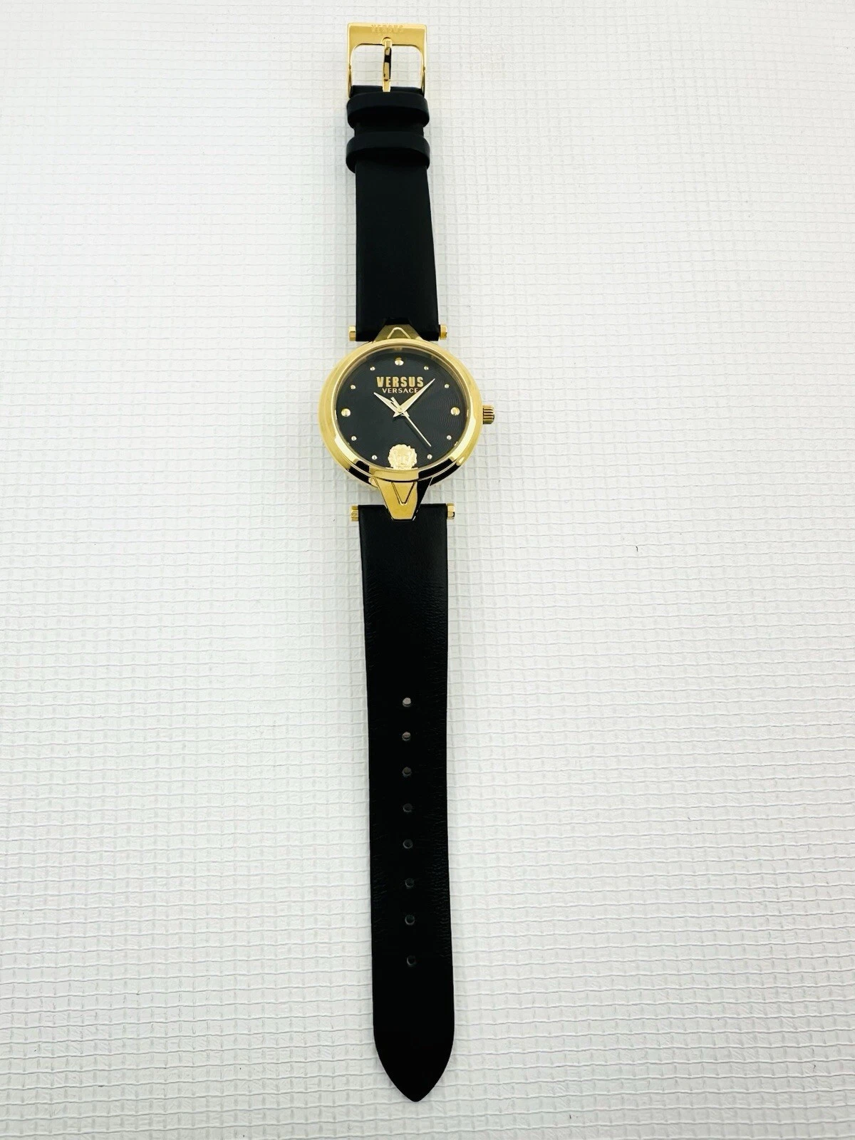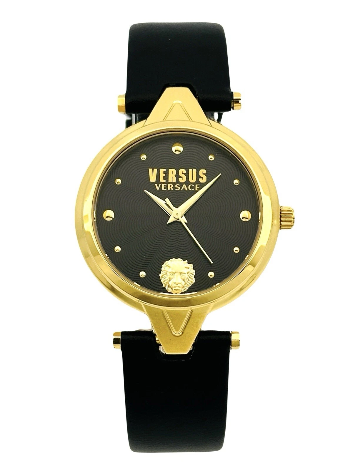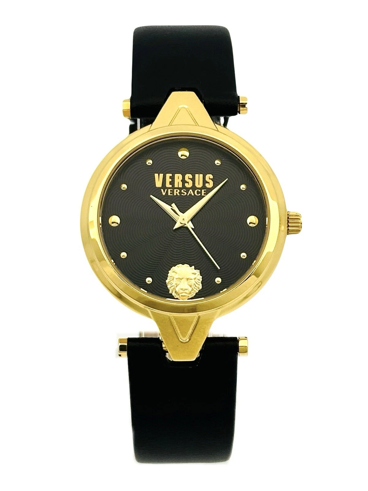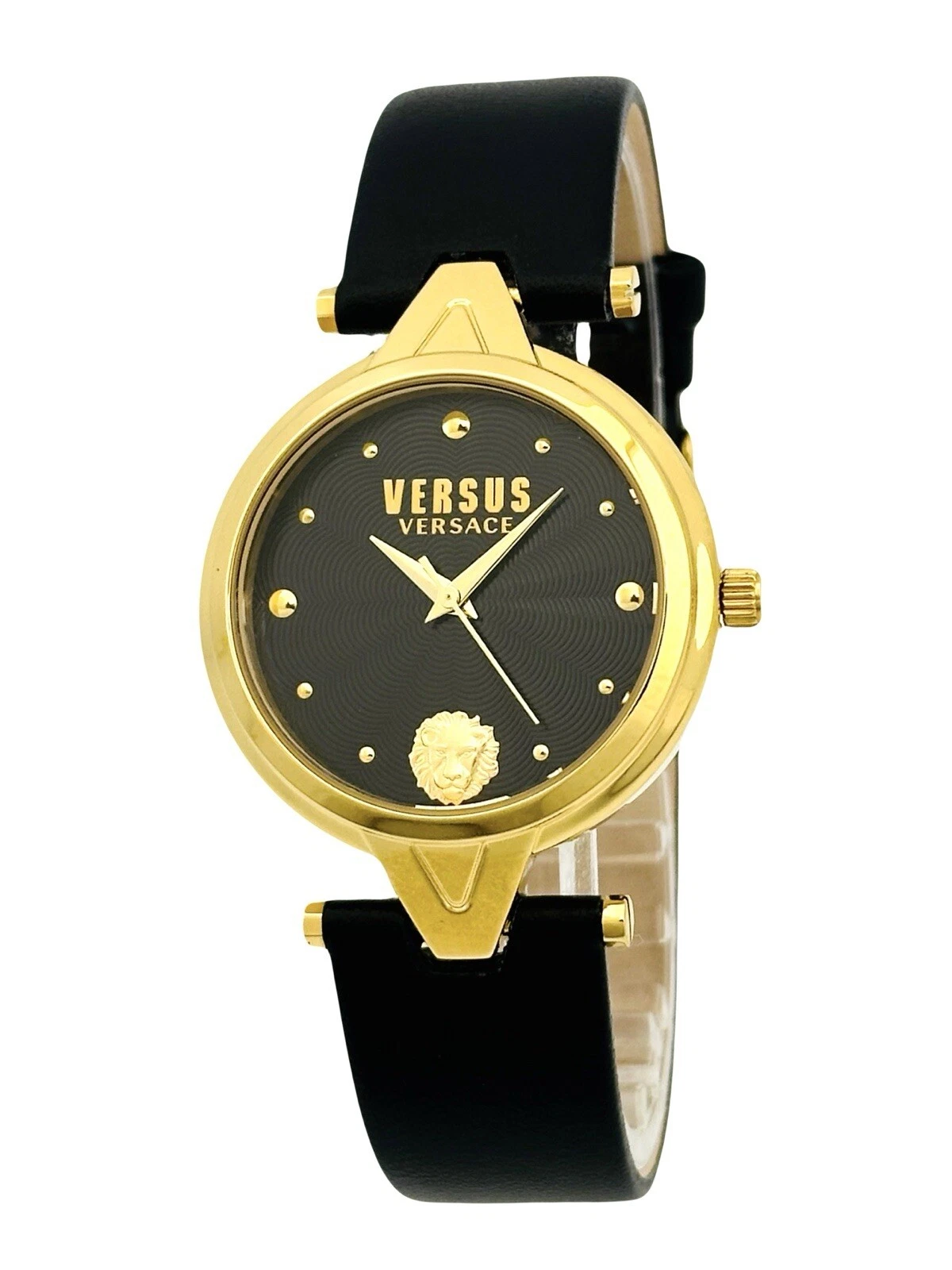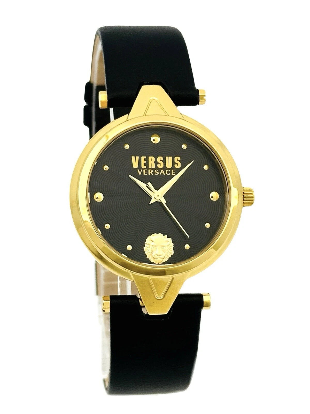 Versus by Versace SCI110016 Black Textured Dial Gold Black Leather Strap Watch