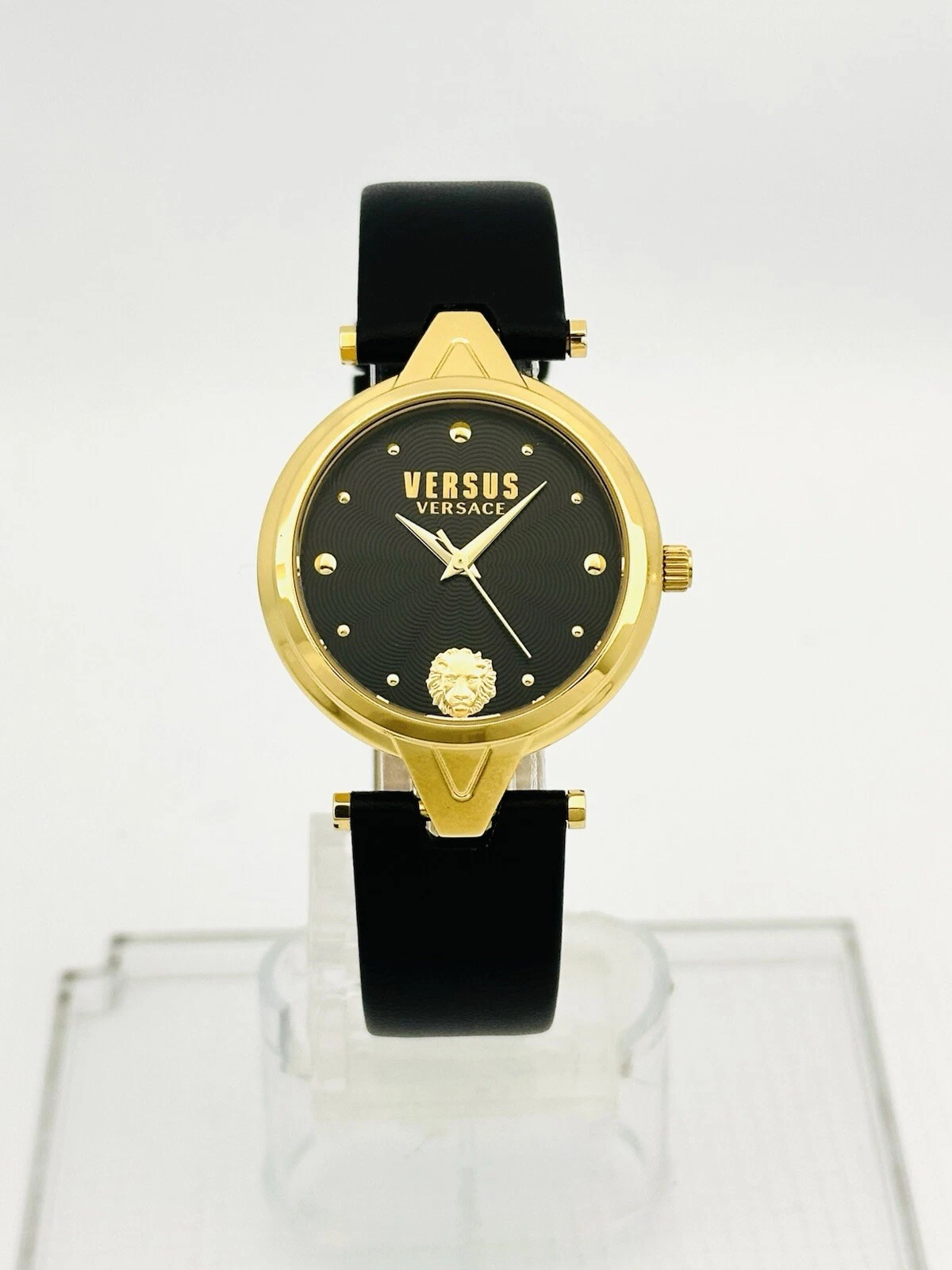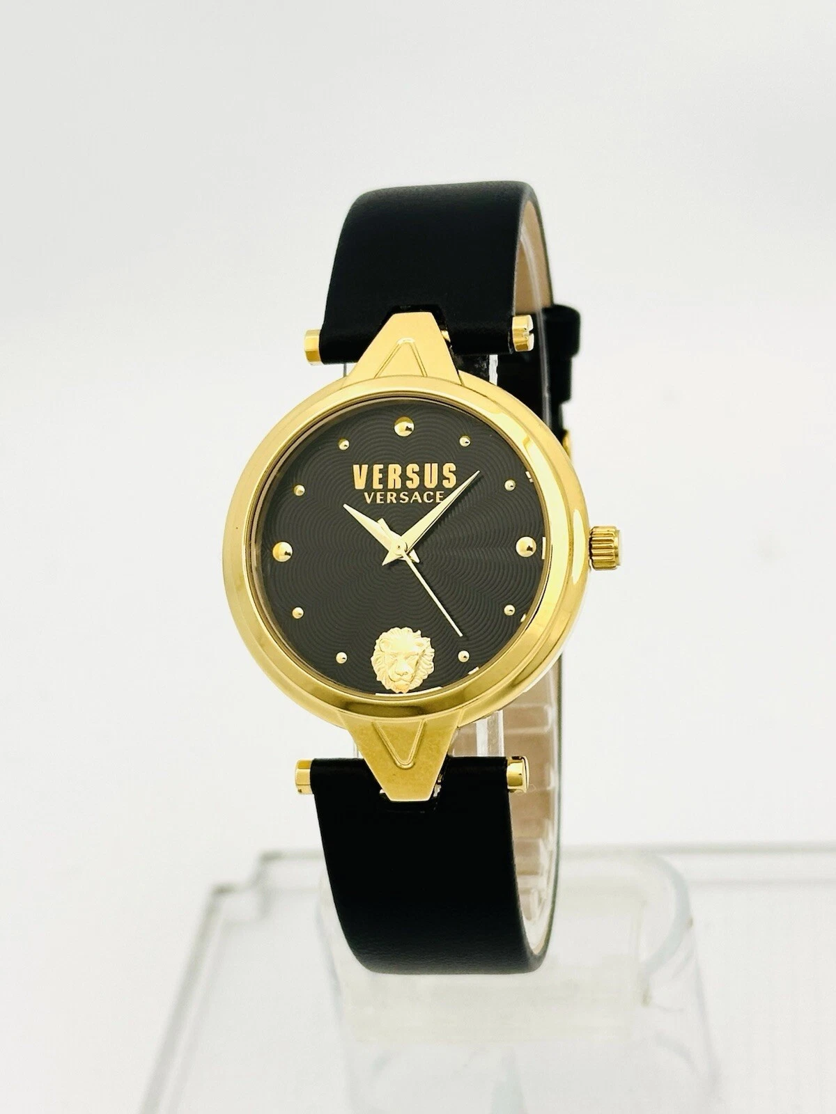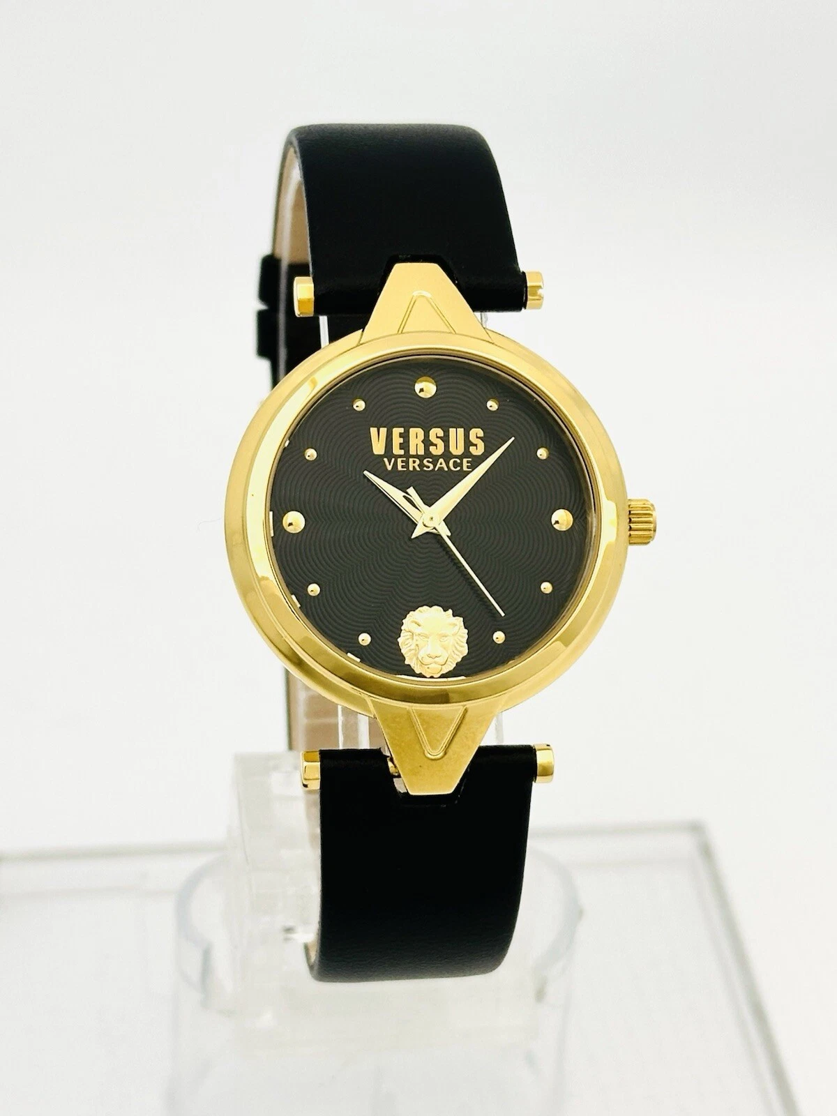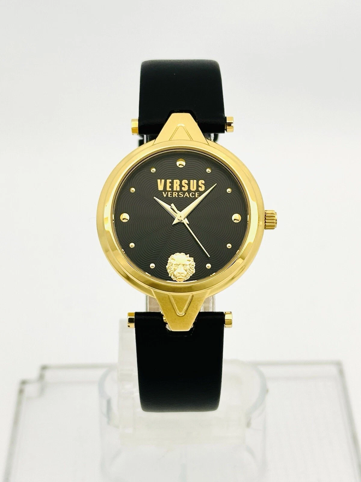 Versus by Versace SCI110016 Black Textured Dial Gold Black Leather Strap Watch