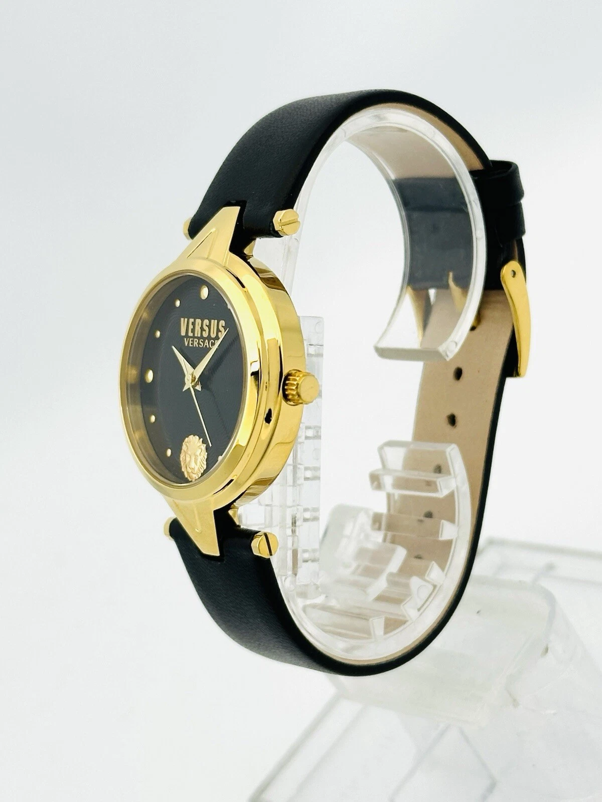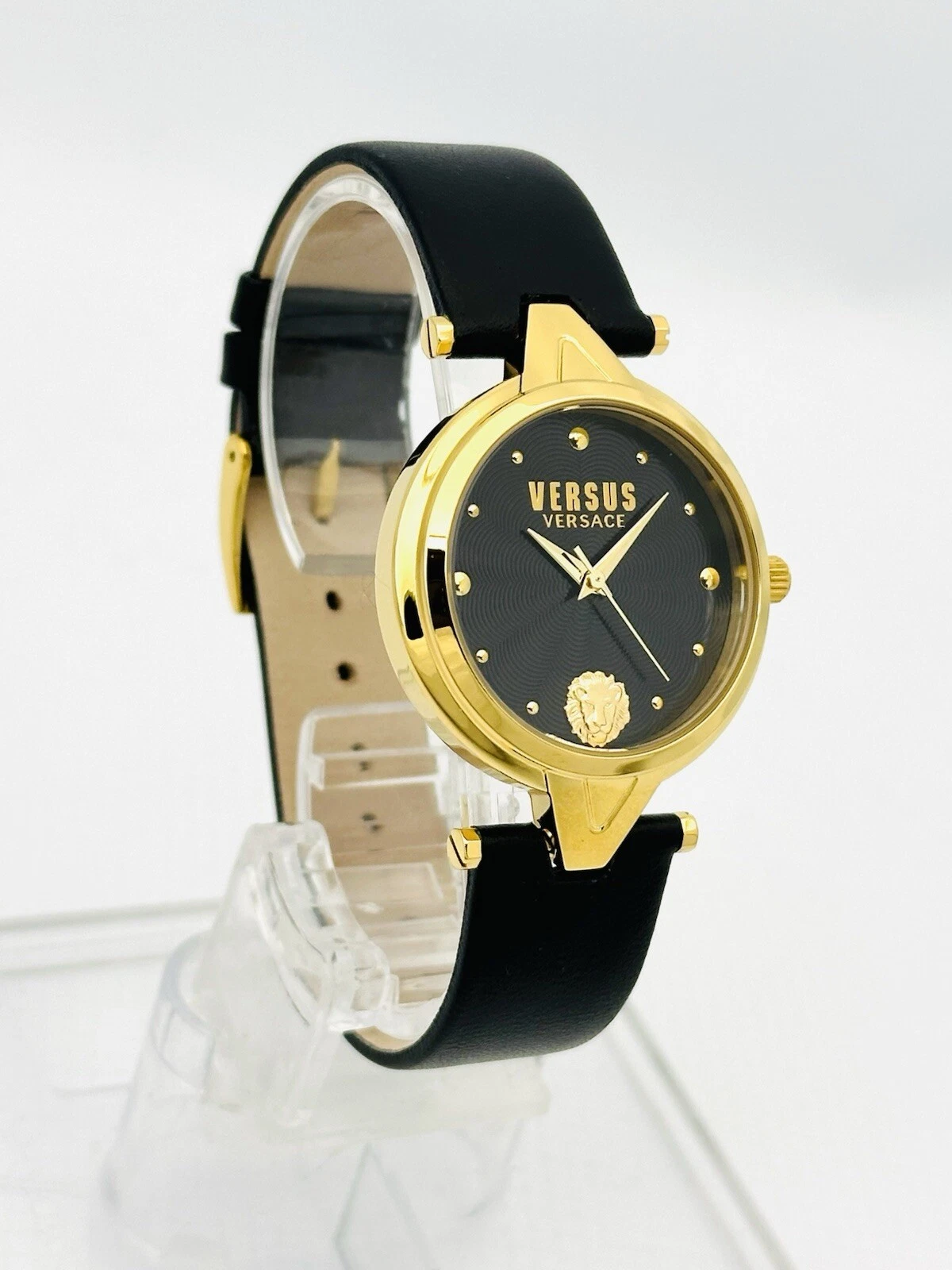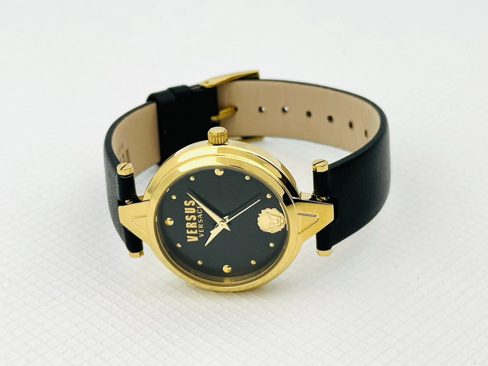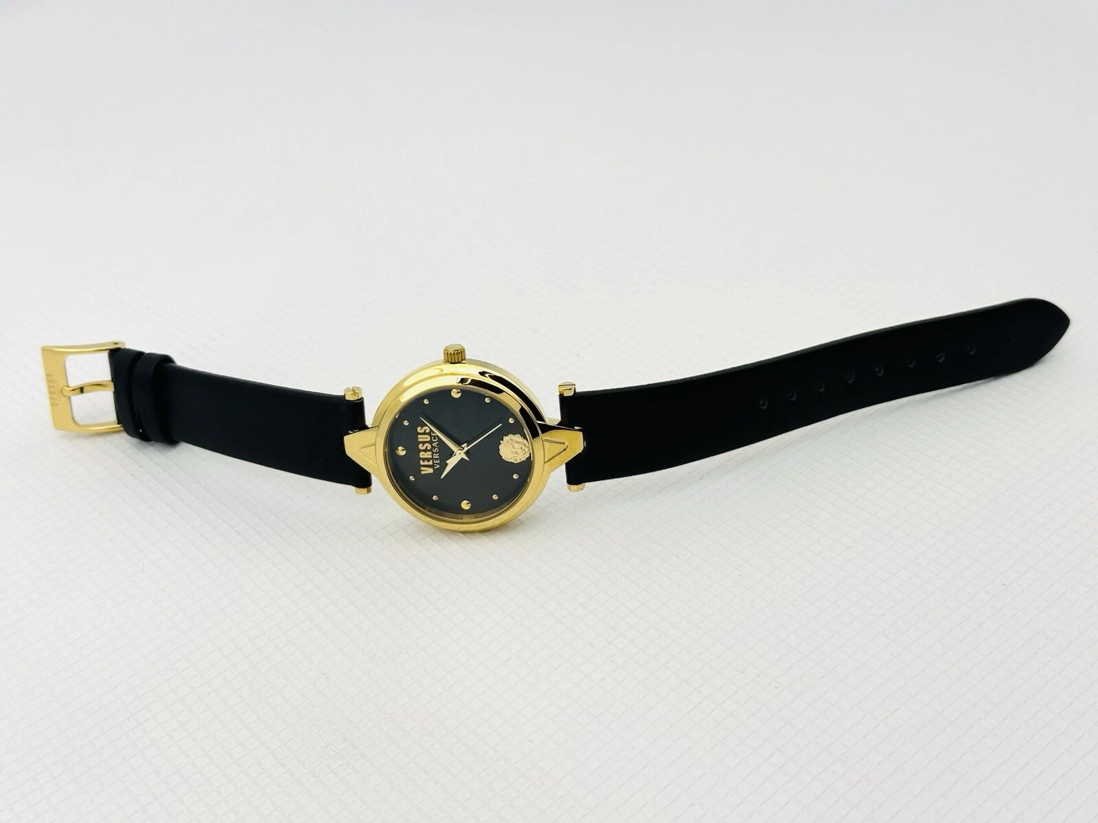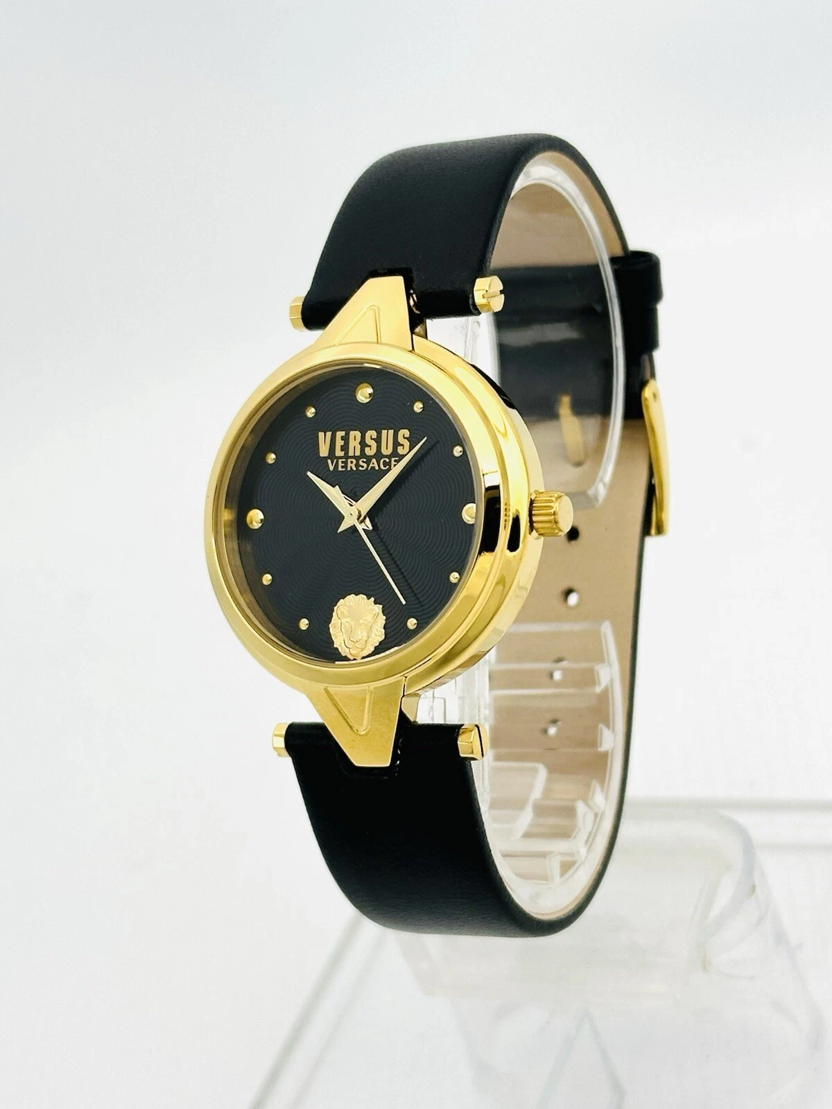 Versus by Versace SCI110016 Black Textured Dial Gold Black Leather Strap Watch