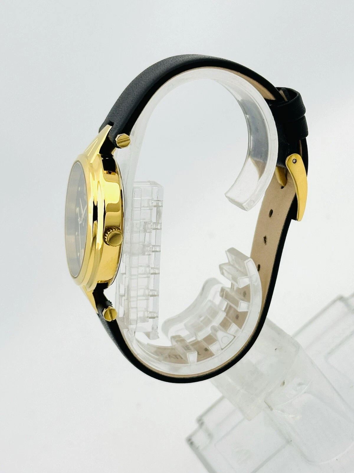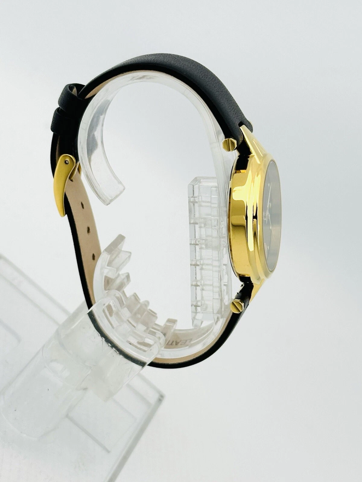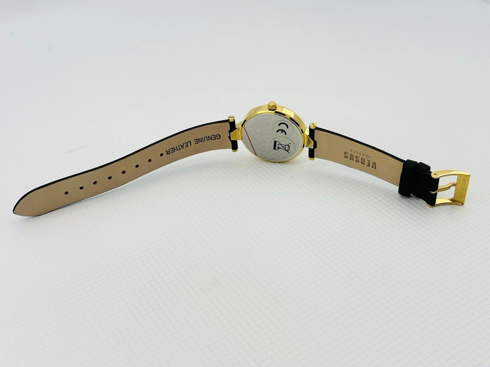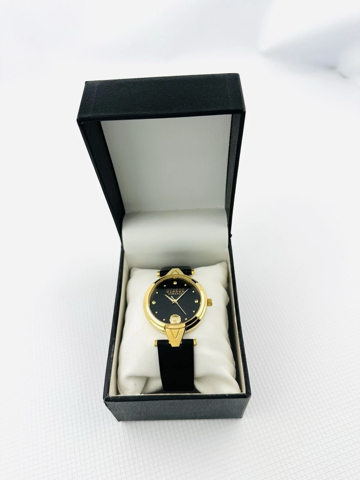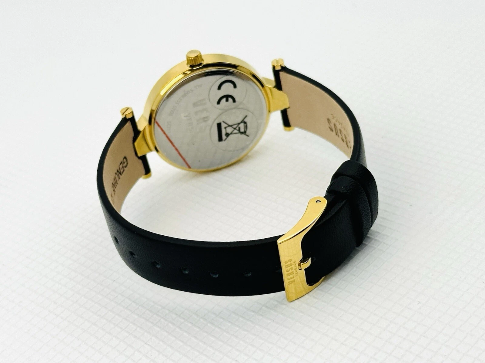 Versus by Versace SCI110016 Black Textured Dial Gold Black Leather Strap Watch